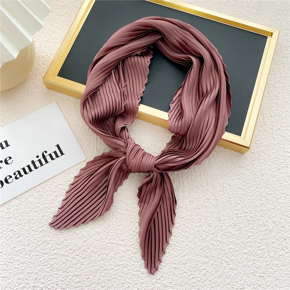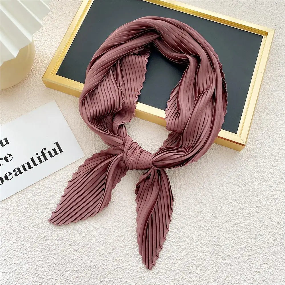 Decorative Headscarf 70cm Small Scarves Silk Pleated Scarf Solid Color Satin Neckerchief Crinkled Hair Scarf Square Scarf