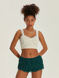 Solid Color Breathable Ruffles Underwear Elastic Boxer Briefs with Bow Women Summer Sexy Shorts Panties