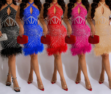 Sparkly Diamonds Elegant Dress Women For Wedding Party Cocktail Prom Dress Rhinestone Sheer Mesh Sexy Formal Evening Dresses