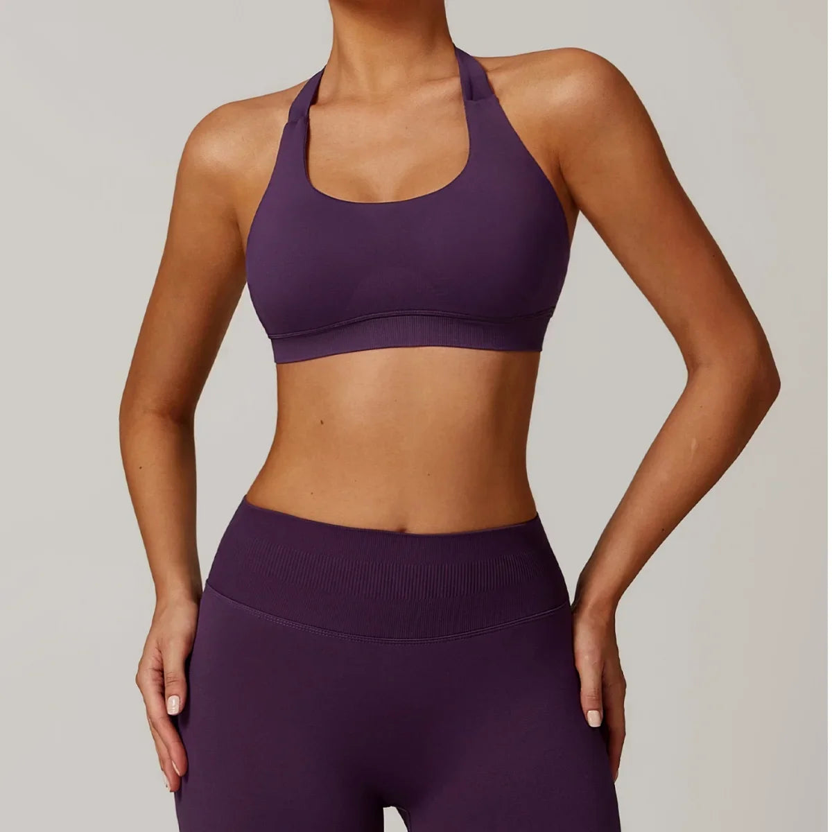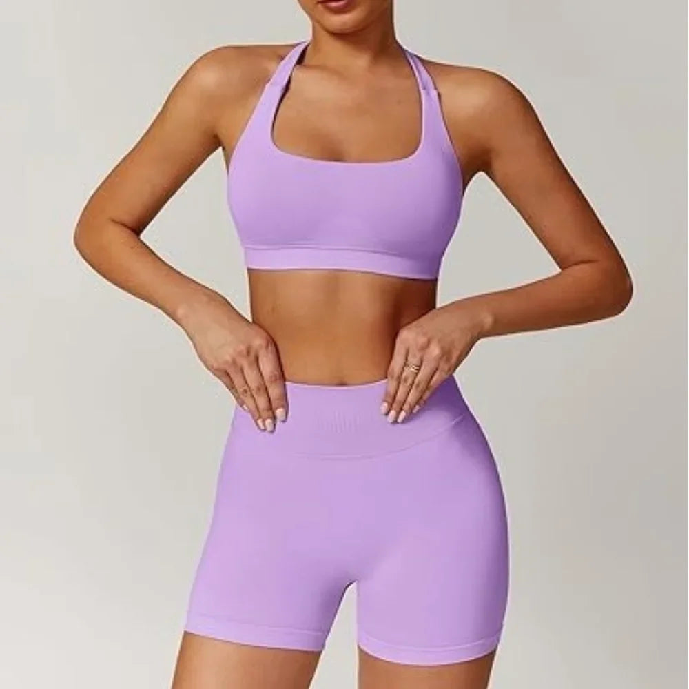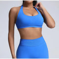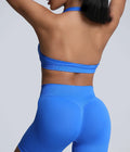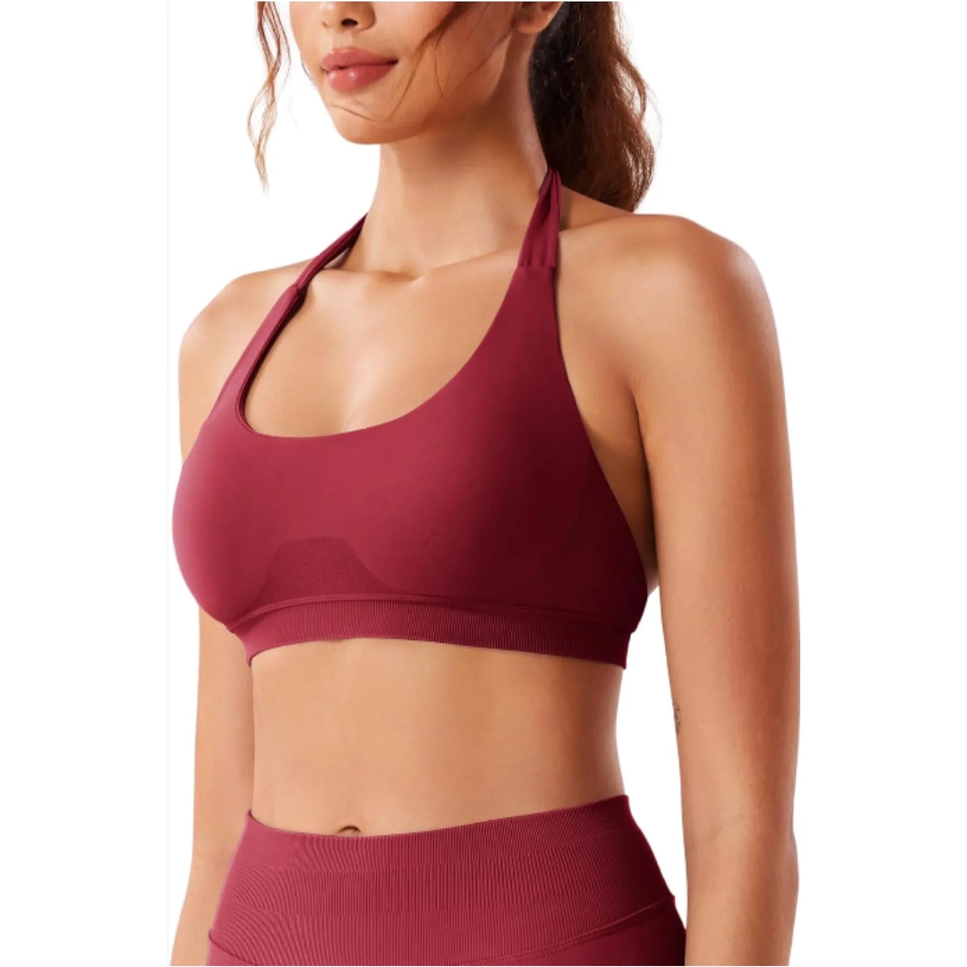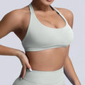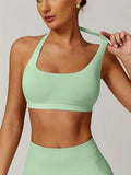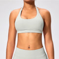 Sports Bra Women Seamless Halter Neck Strap Padded Open Back Yoga Top Bra Medium Support Gym Crop Top