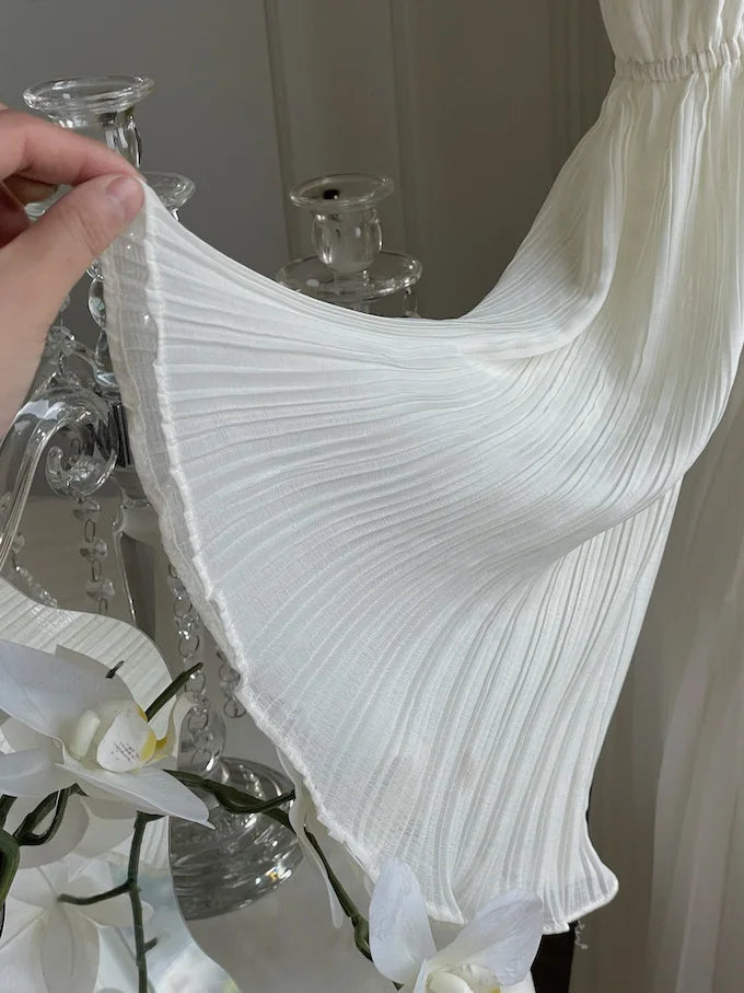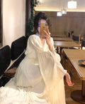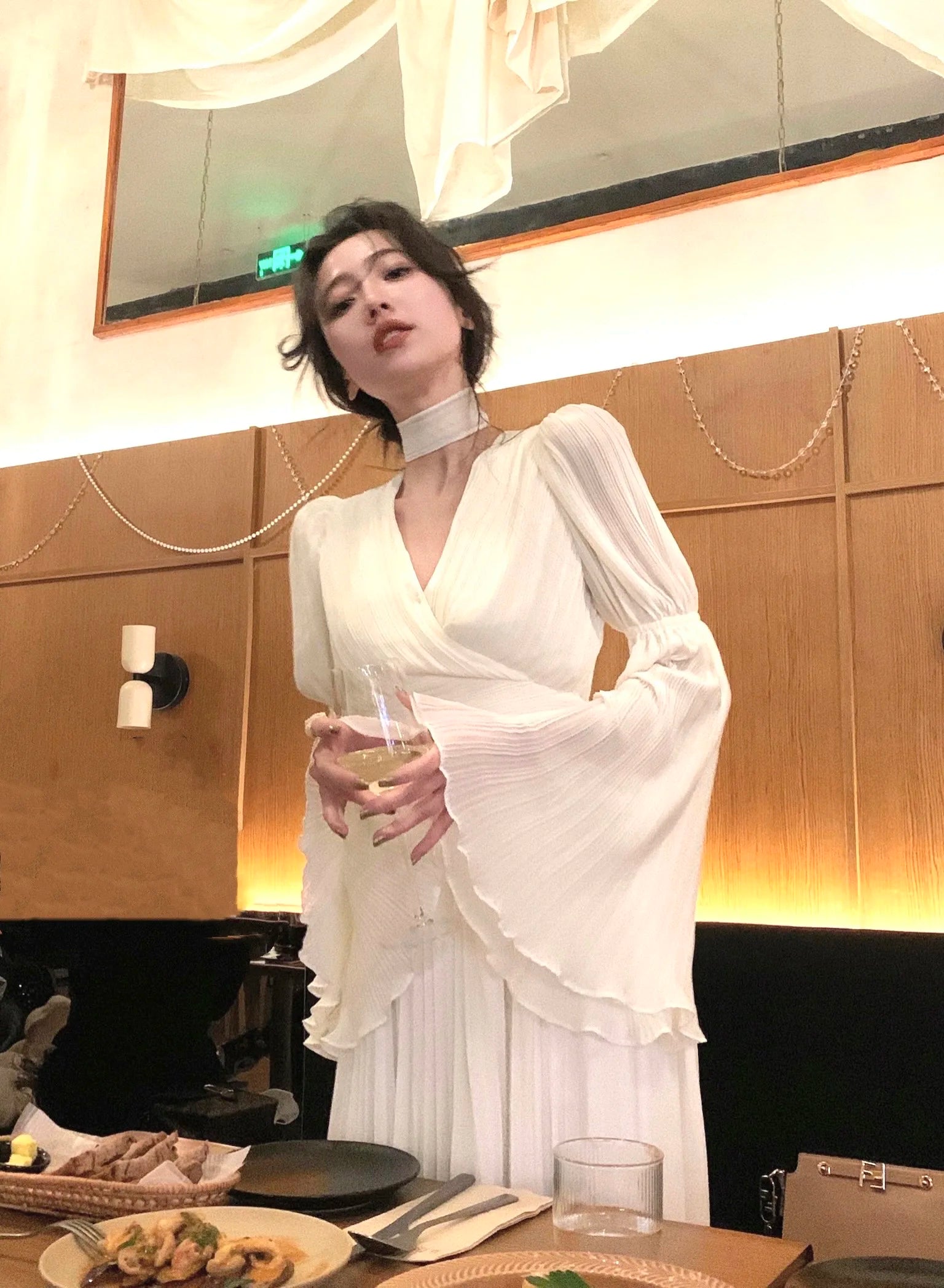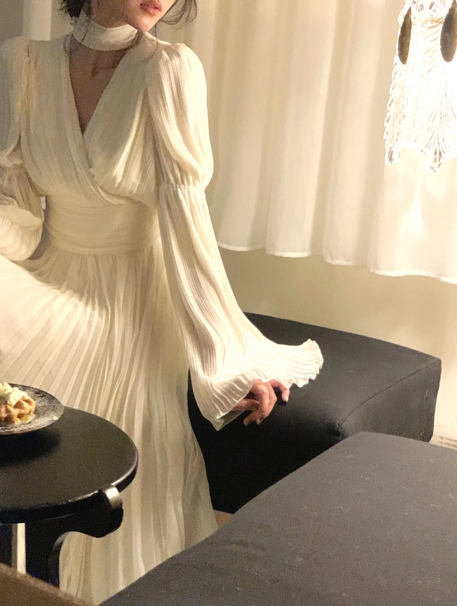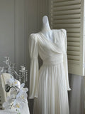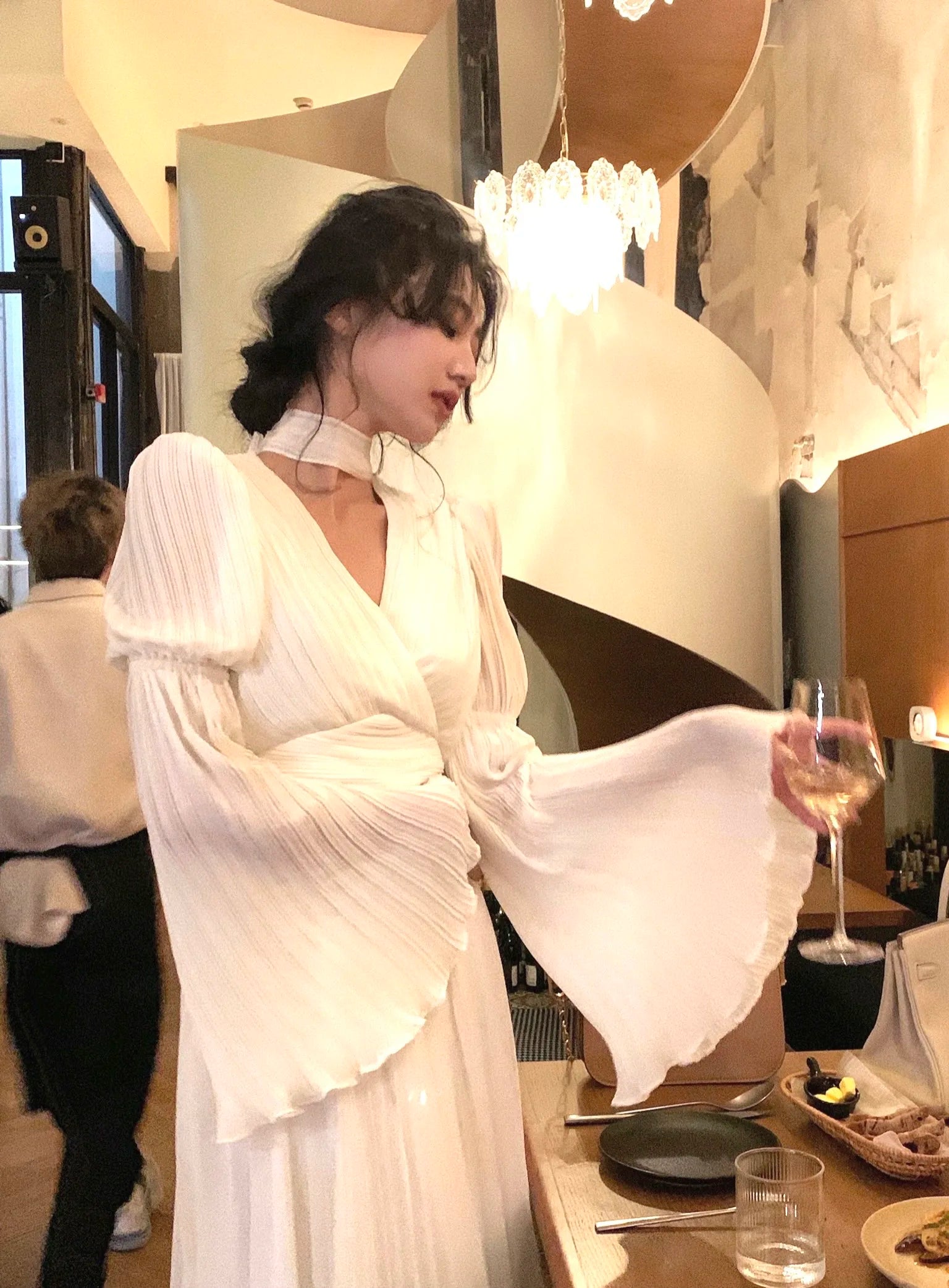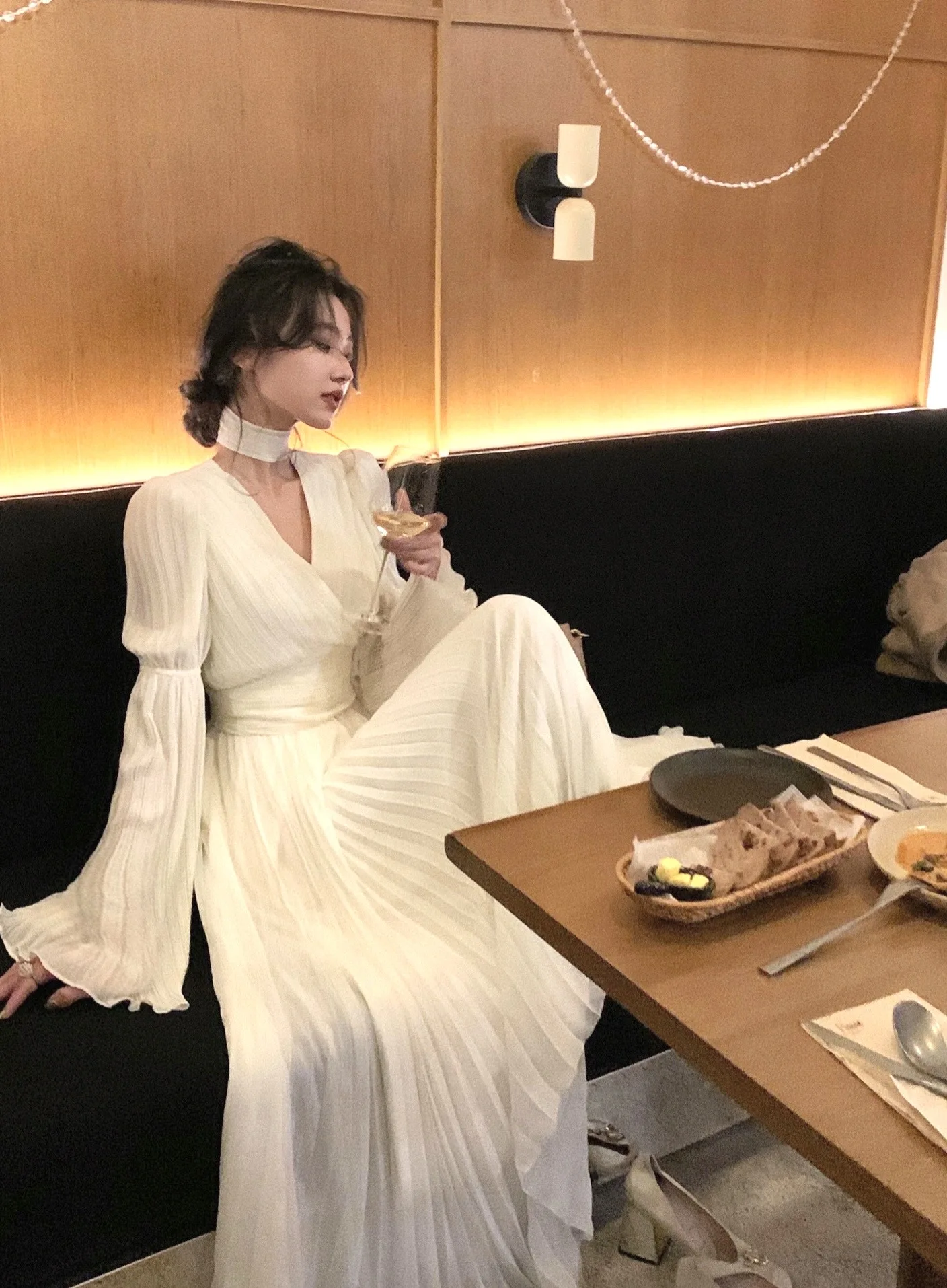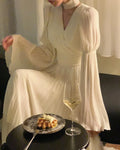 Spring and Autumn Long sleeved V-neck Sparkling Sleeve White Dress Fashion French Style Women's Dress Prom Dress Office Dress