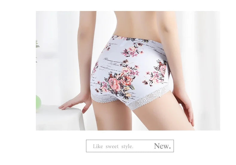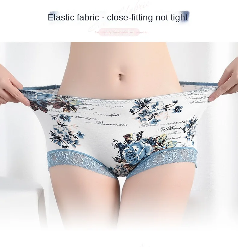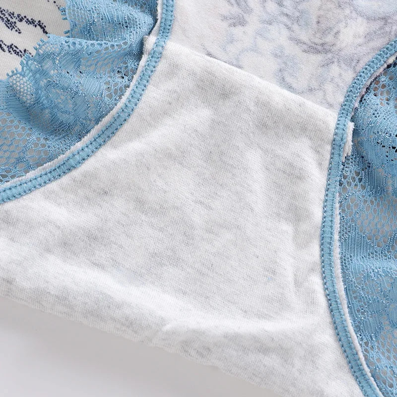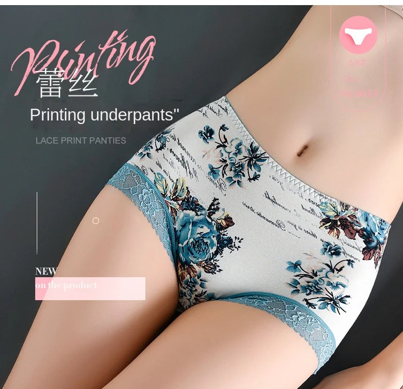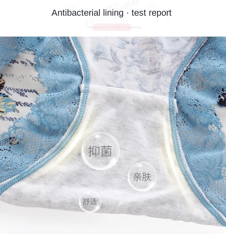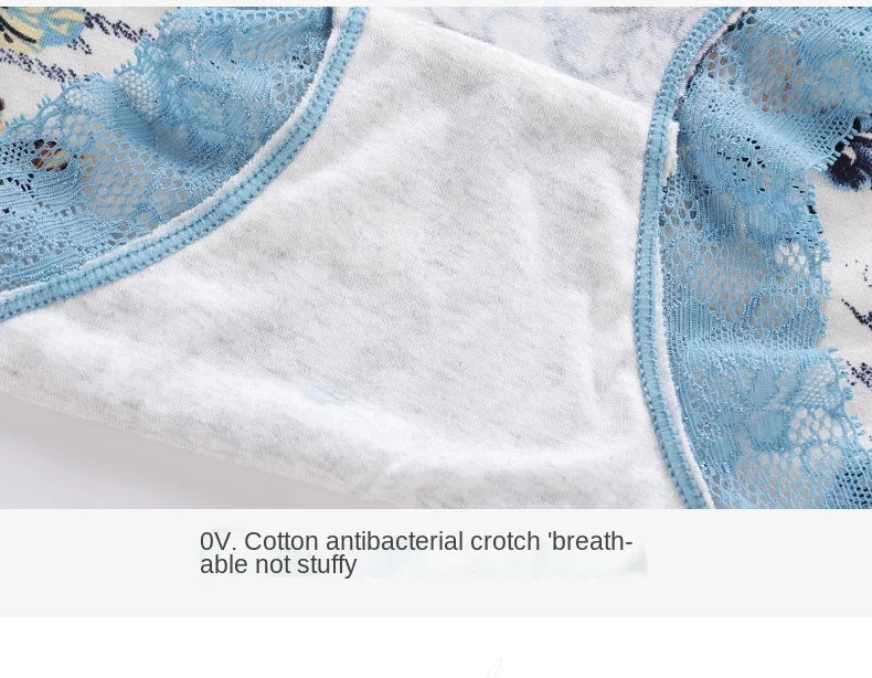 Spring Large Size Lace Pure Cotton Underwear Women's Seamless Antibacterial Ladies Underwear Sexy Printed Briefscomfortablesexy