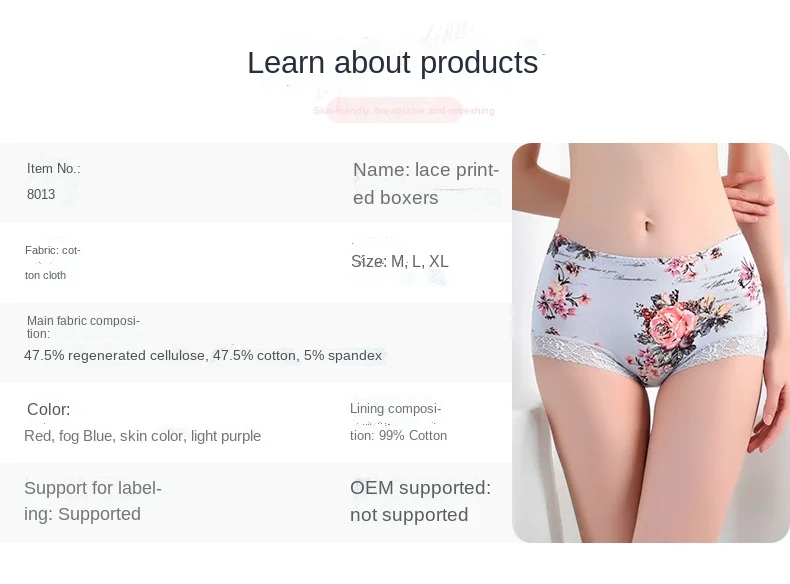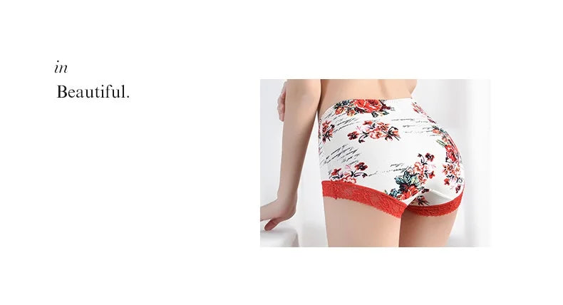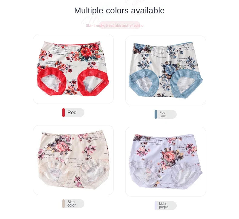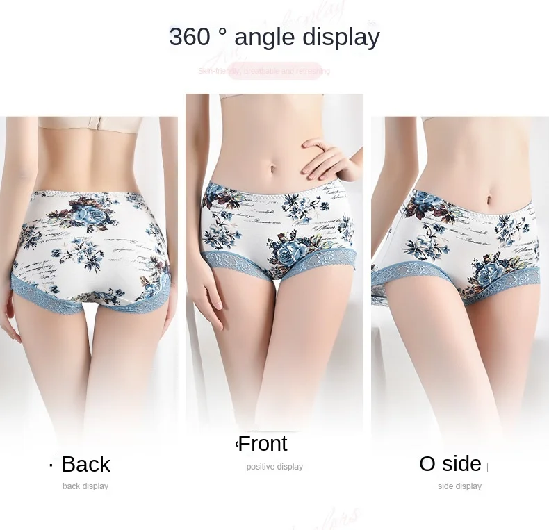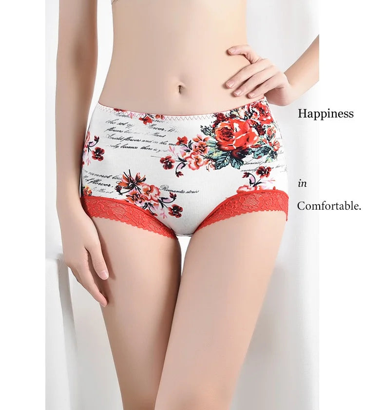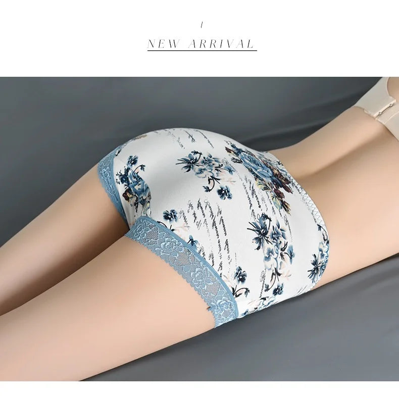 Spring Large Size Lace Pure Cotton Underwear Women's Seamless Antibacterial Ladies Underwear Sexy Printed Briefscomfortablesexy