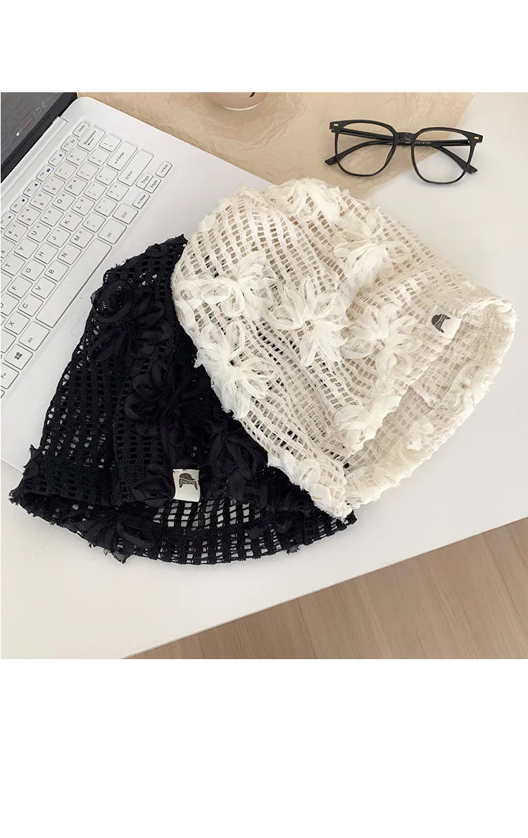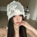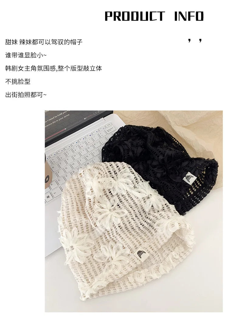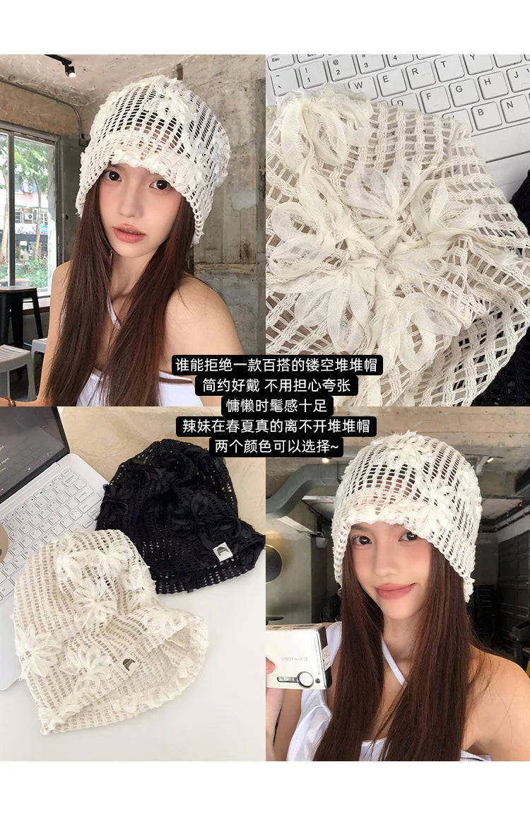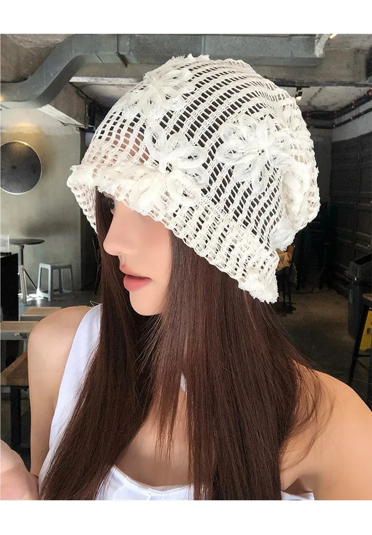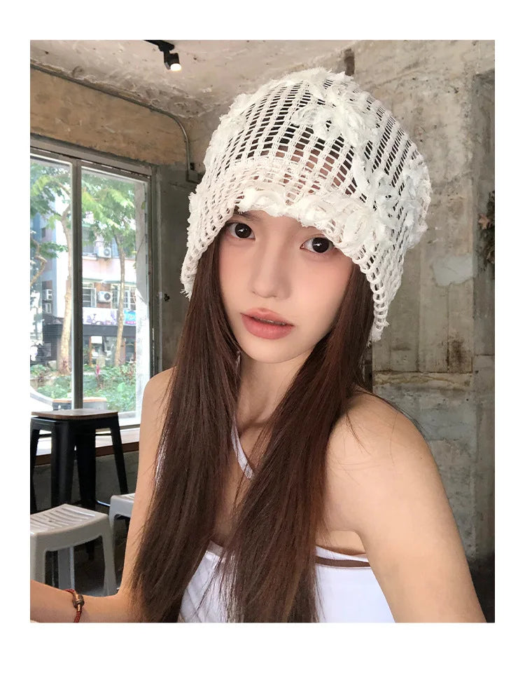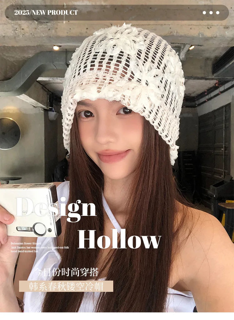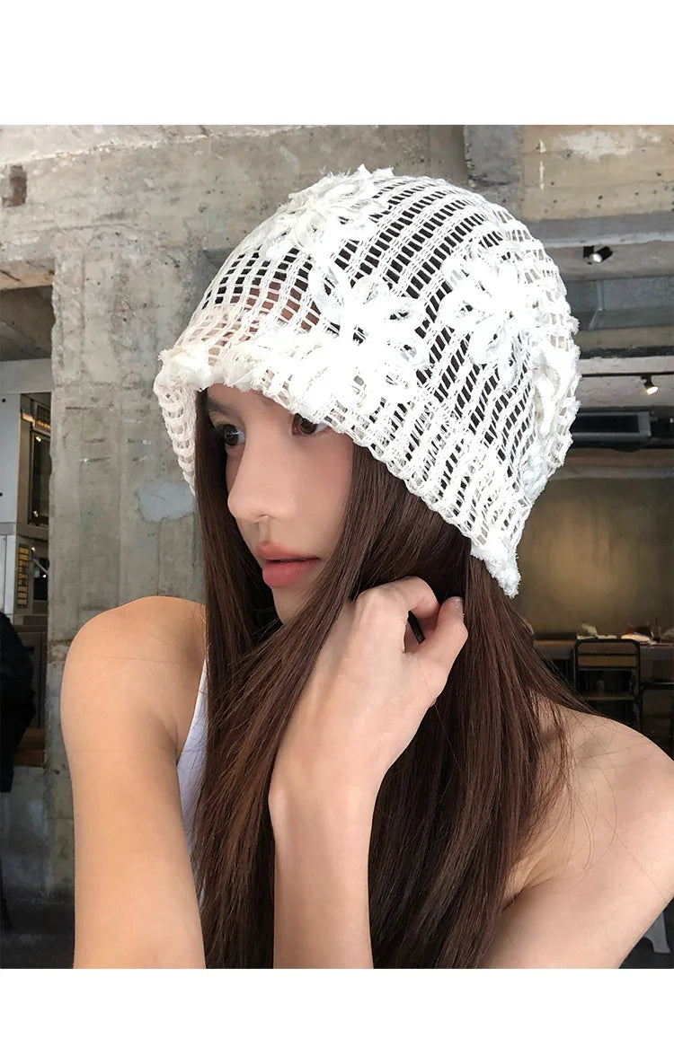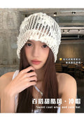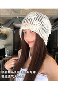 Spring Summer New Korean Crochet Pullover Hats Women Outdoor Travel Fashionable Versatile Sweet Hollow Breathable Beanies Cap