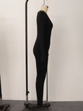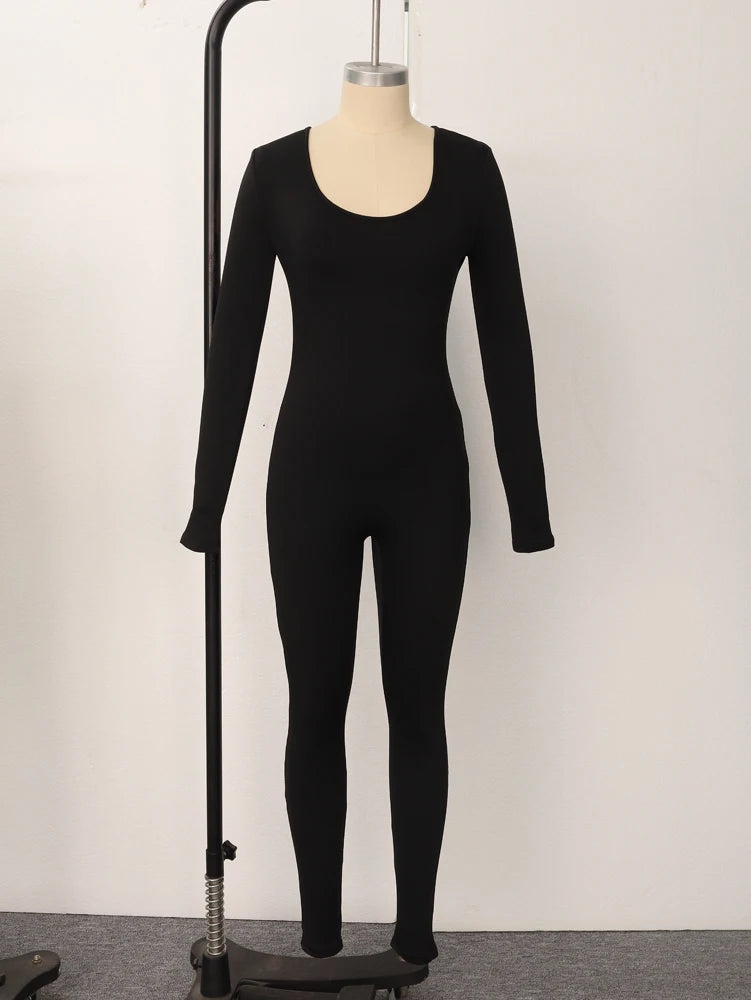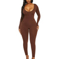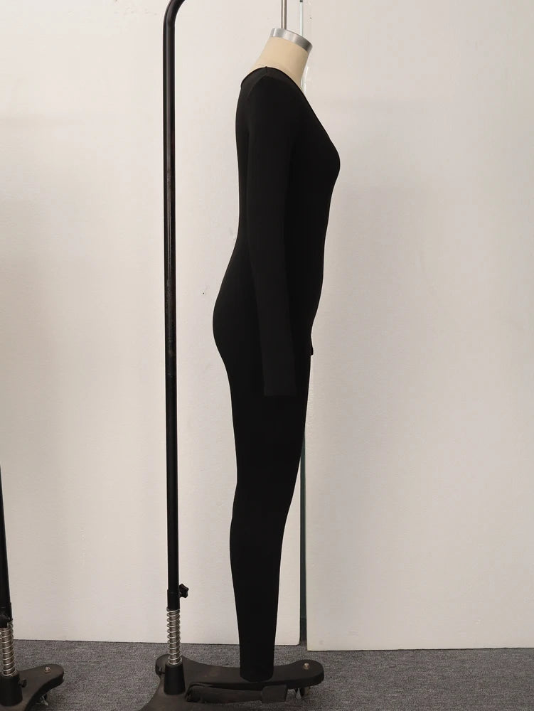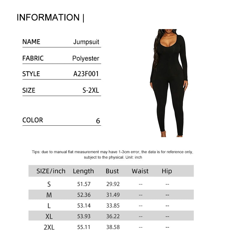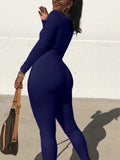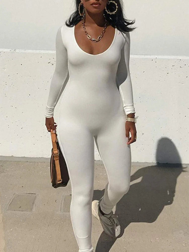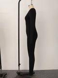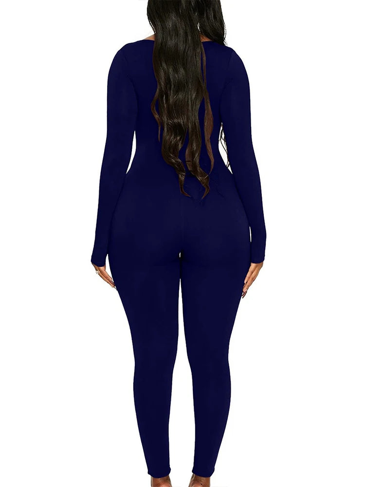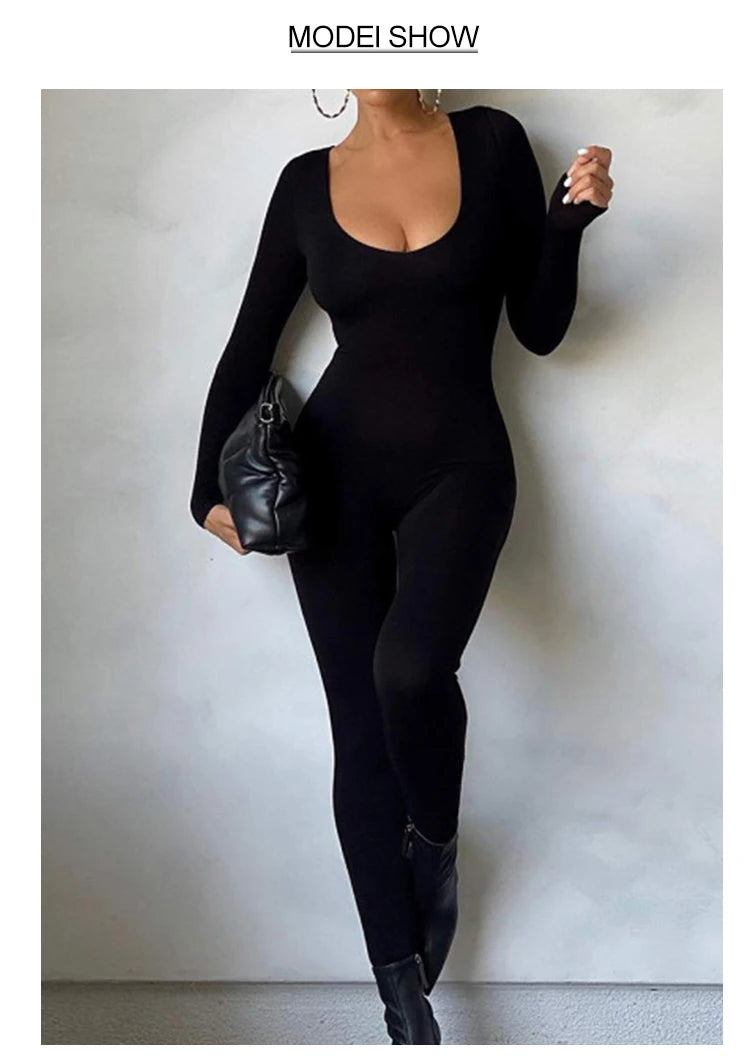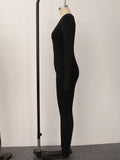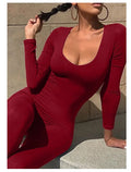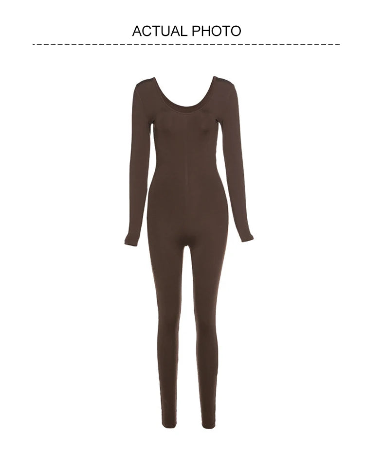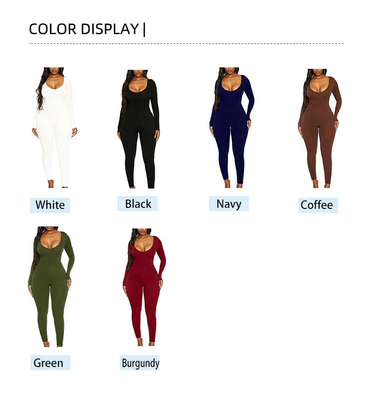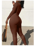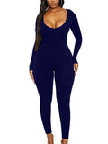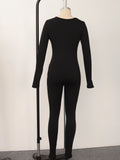 Spring Summer New Women's Long Sleeve Solid Color Skinny Jumpsuit Fashion Sports Fitness Pullover Casual Wear