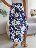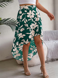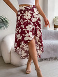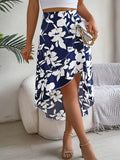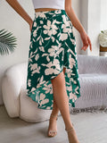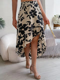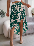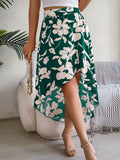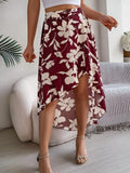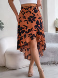 Spring Summer Skirts for Women Casual Floral Print Asymmetric Ruffle Edge Skirt