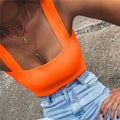 Square Neck Sleeveless Summer Crop Top White Women Black Casual Basic T Shirt Off Shoulder Cami Sexy Backless Tank Top