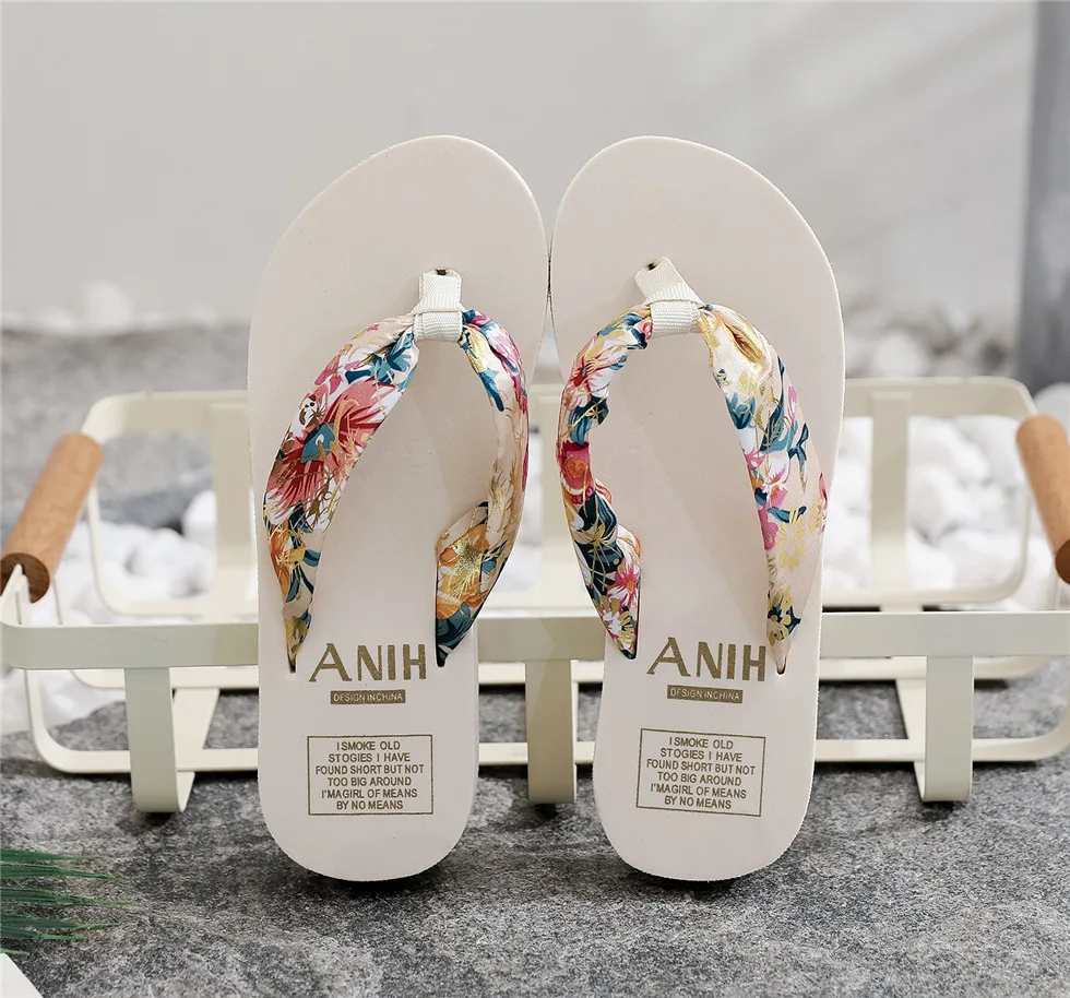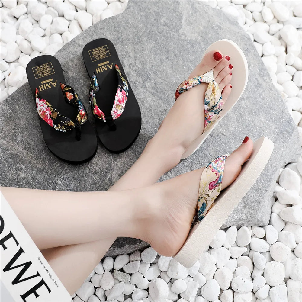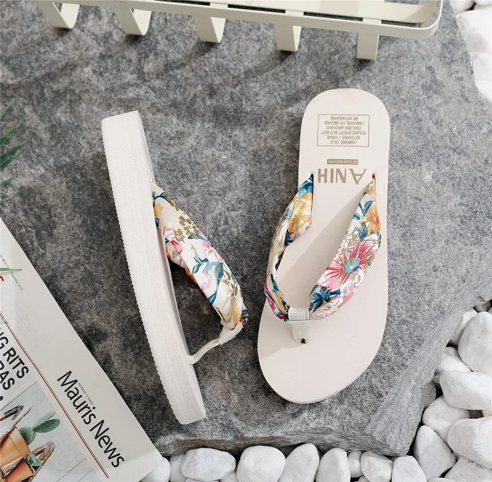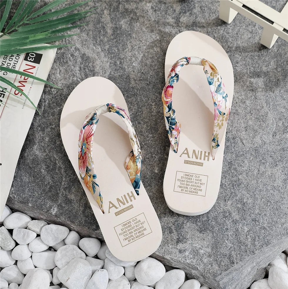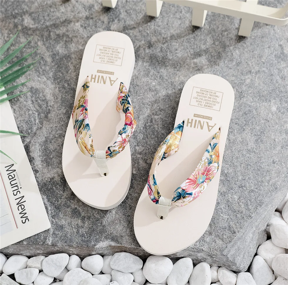 Summer flip flops for women, bohemian silk and satin strap, casual lame heel, beach women's slippers, ethnic style slippers