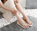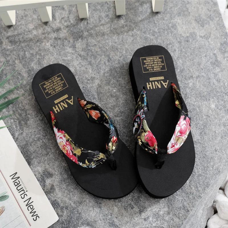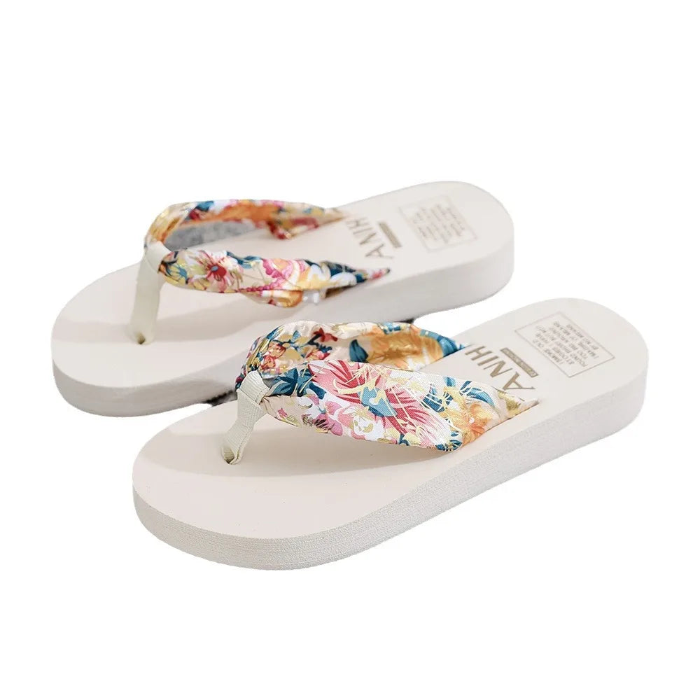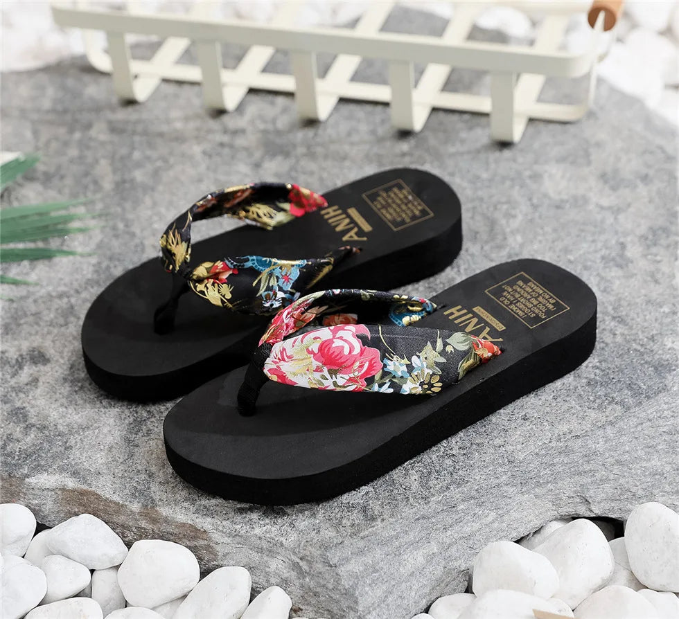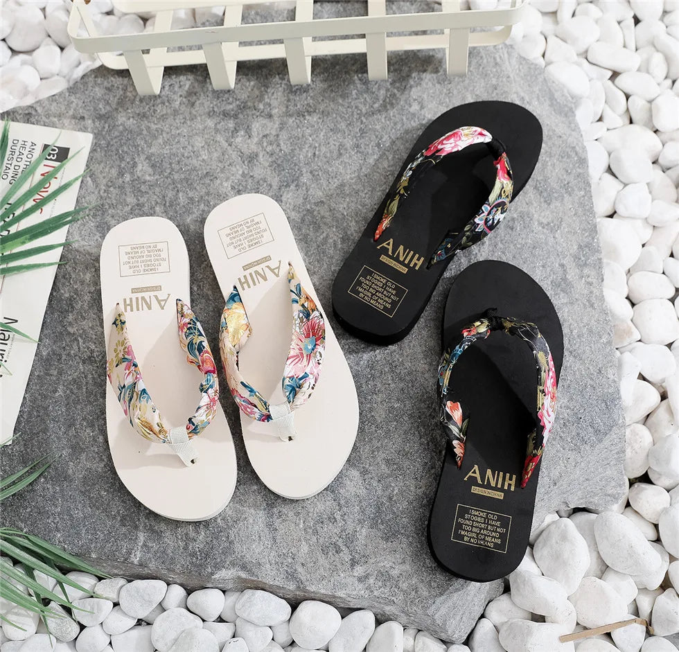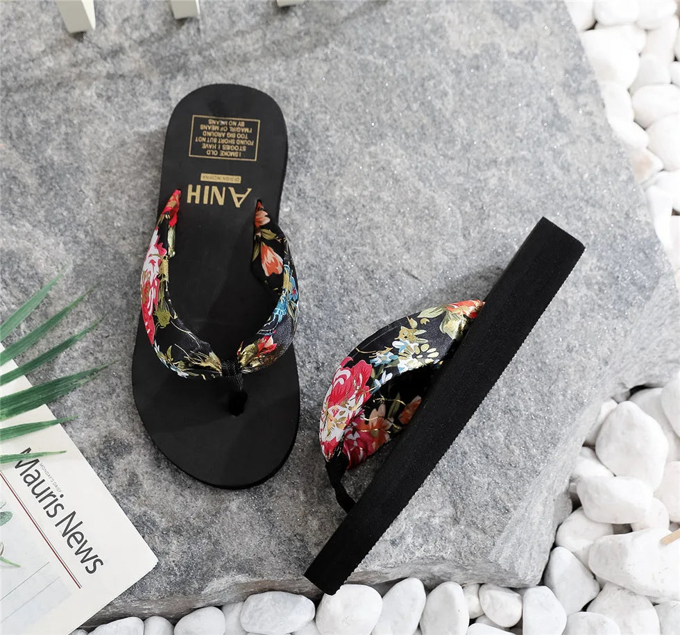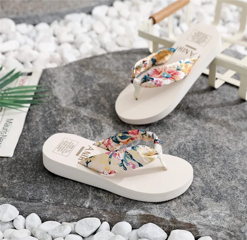 Summer flip flops for women, bohemian silk and satin strap, casual lame heel, beach women's slippers, ethnic style slippers