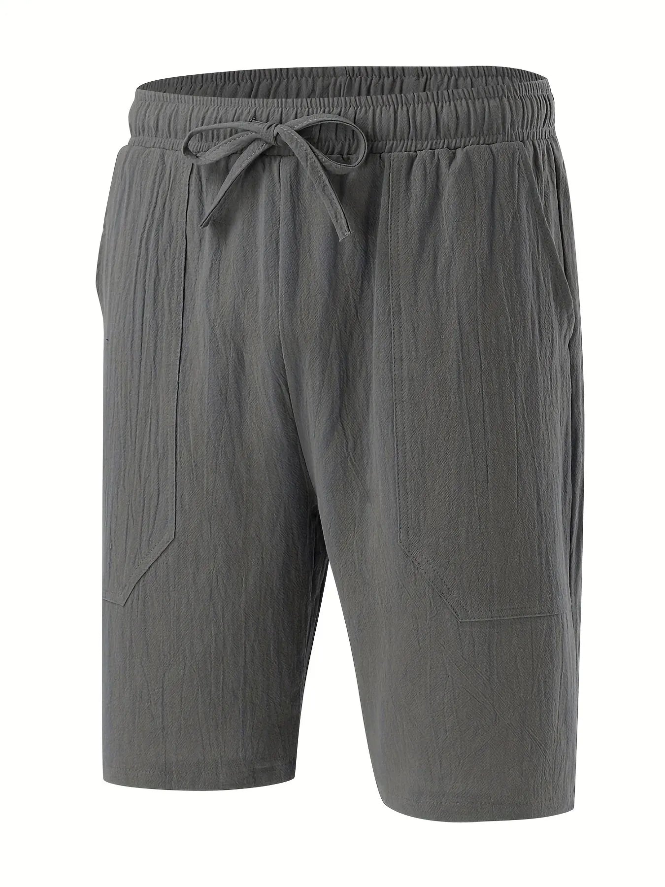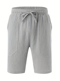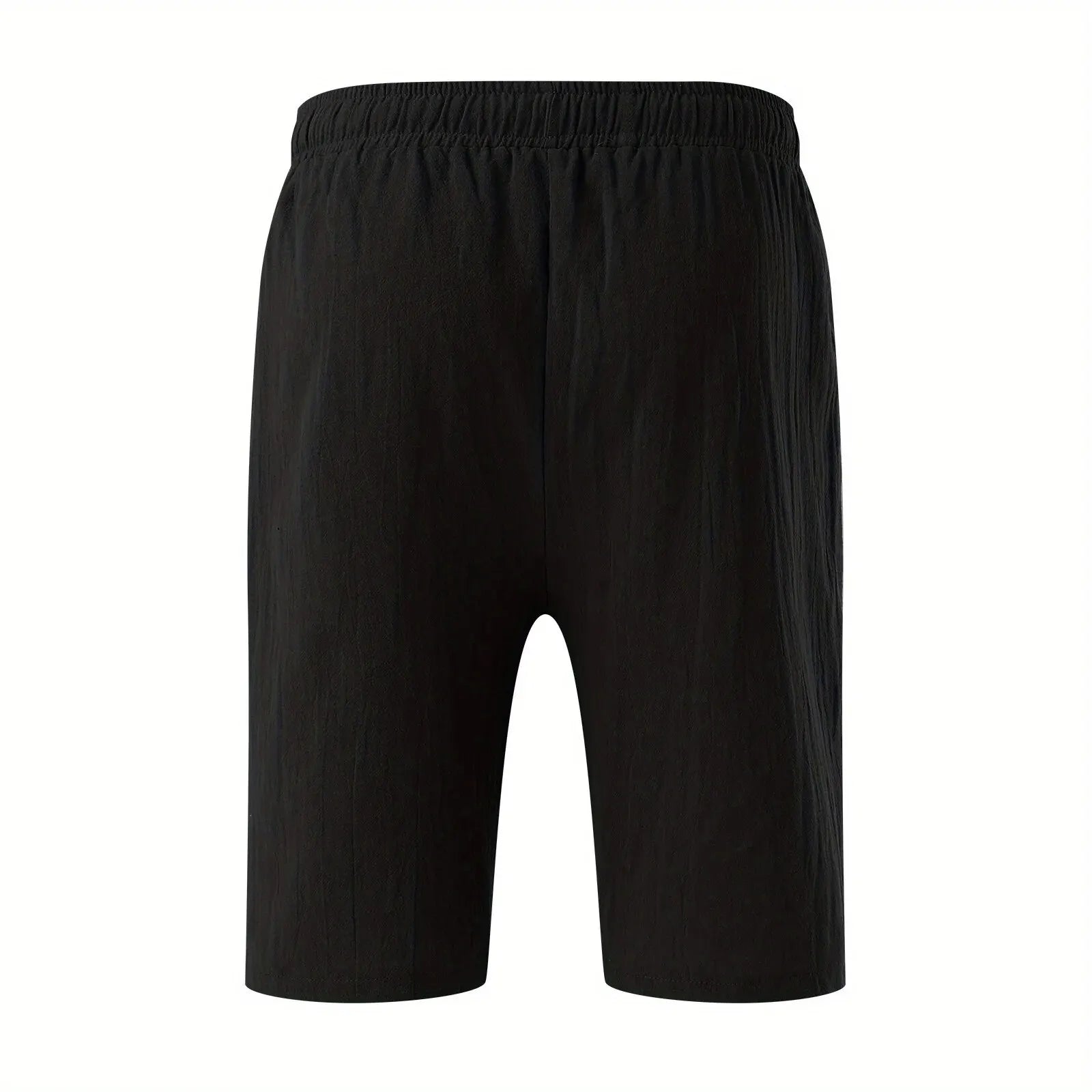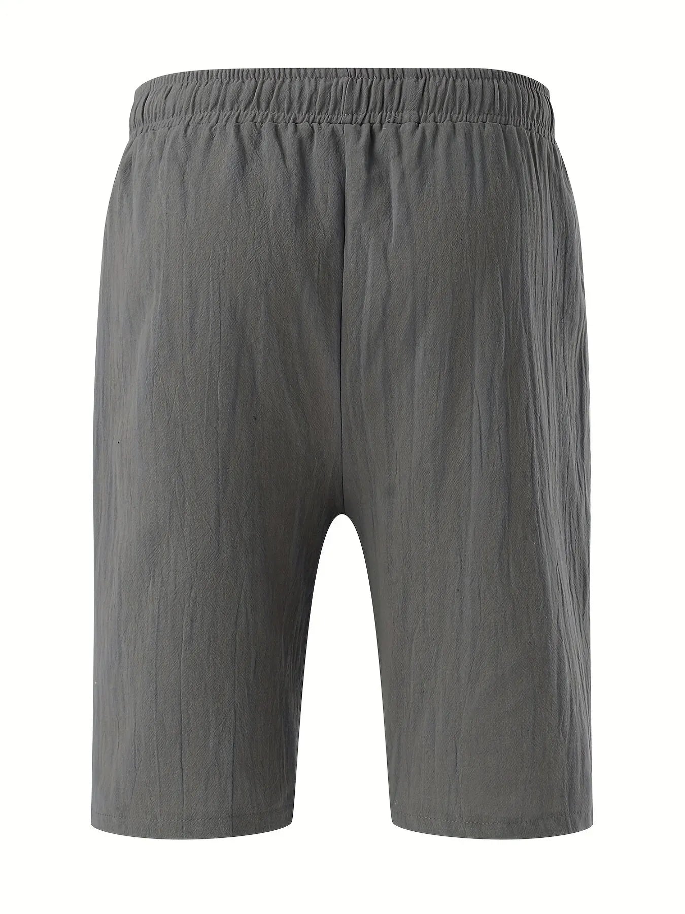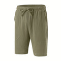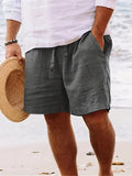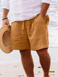 Summer MEN'S Cotton and Linen Shorts Drawstring Elastic Waist Straight Leg Solid Color Breathable Daily Beach Five Casual Pants