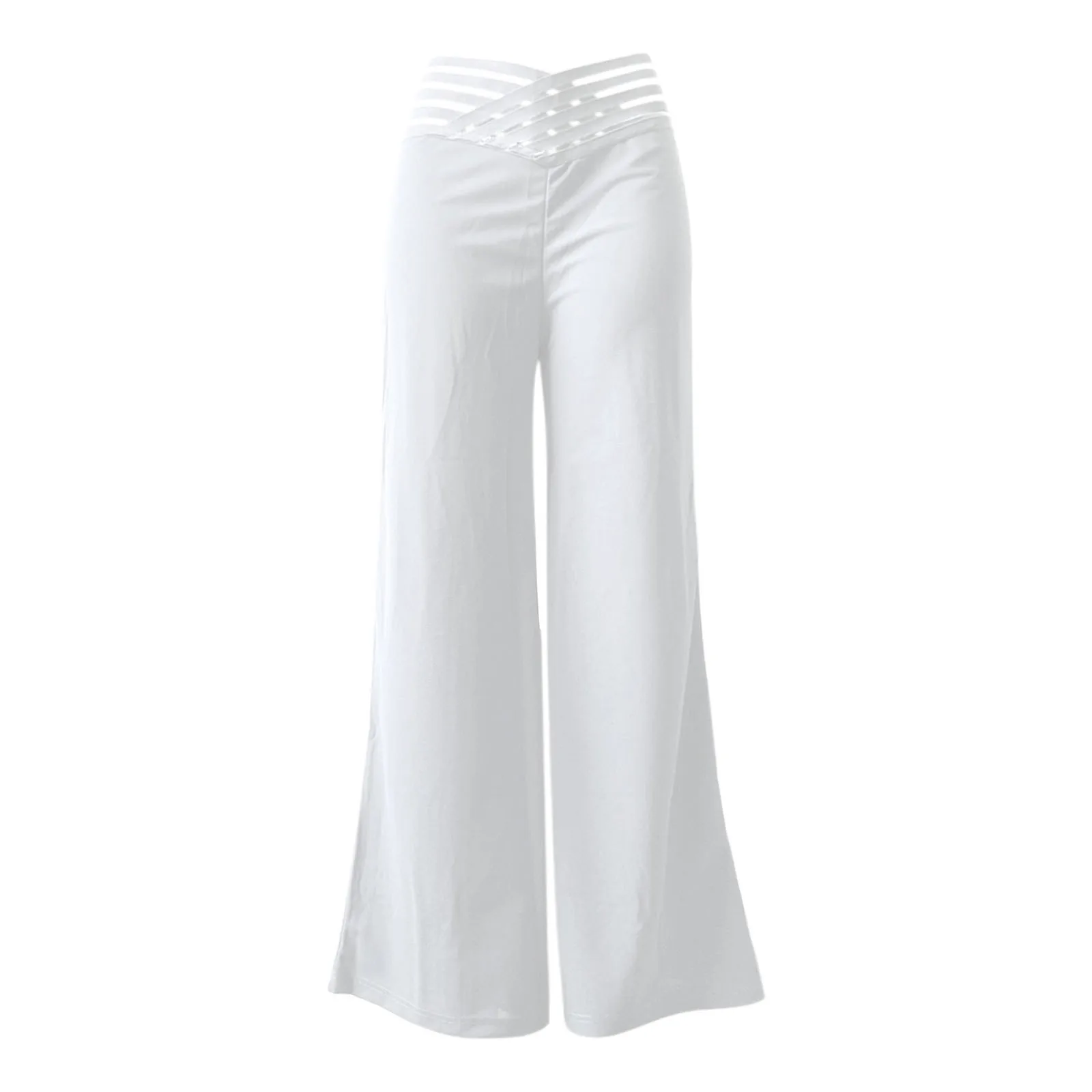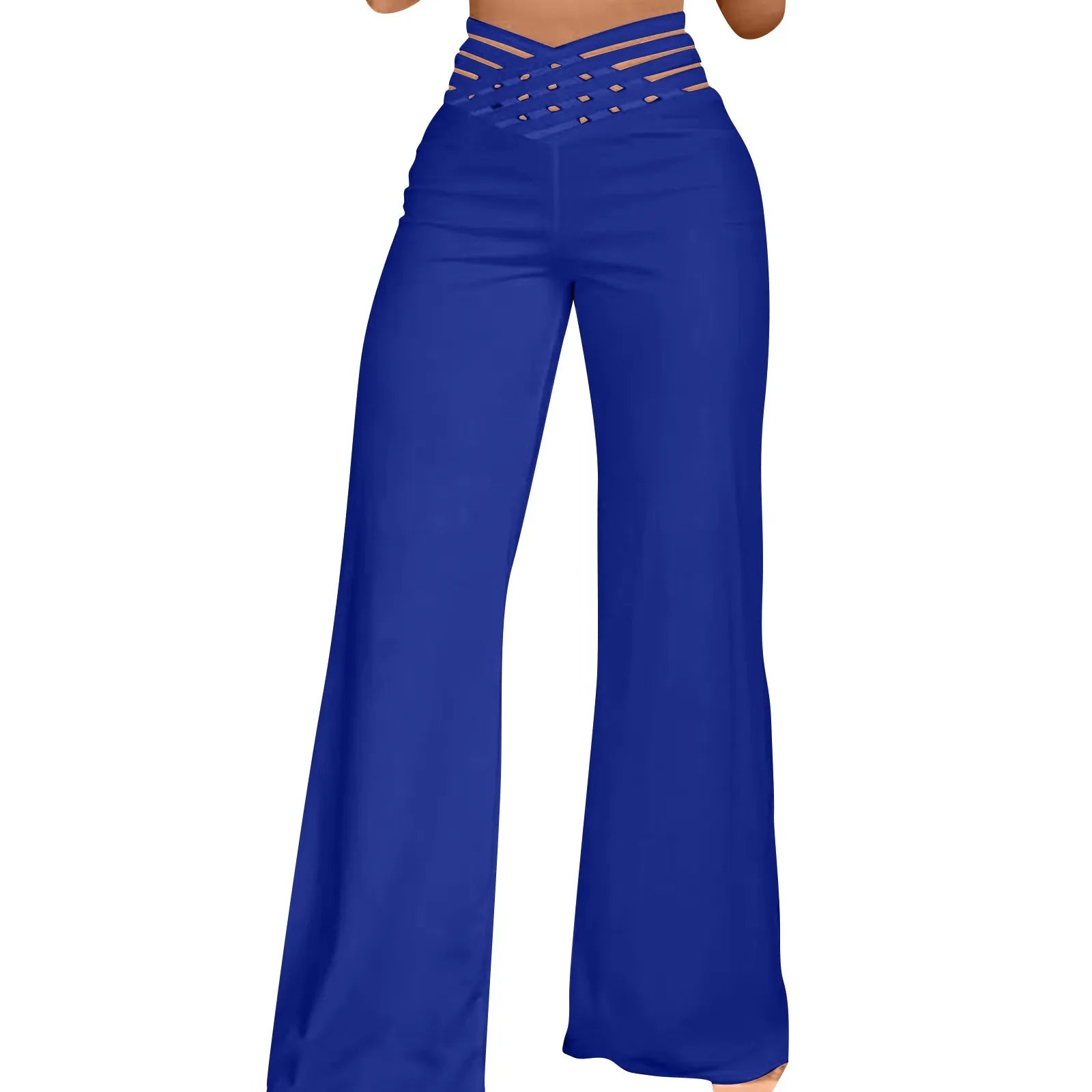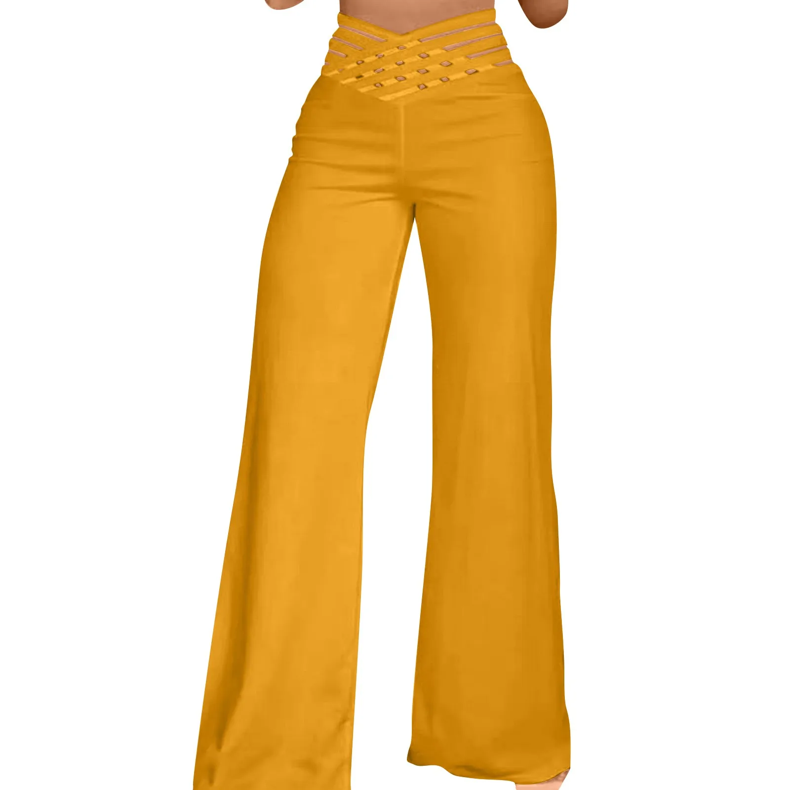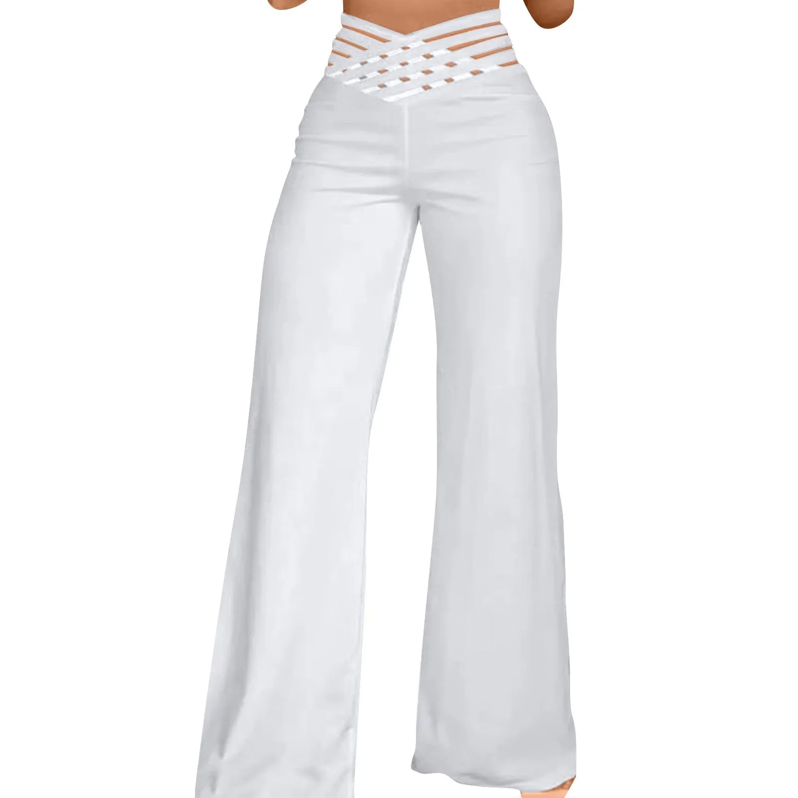 Women's Hollow Belt Trousers Temperament Flared Trousers High Waist Casual Wide Leg Pants