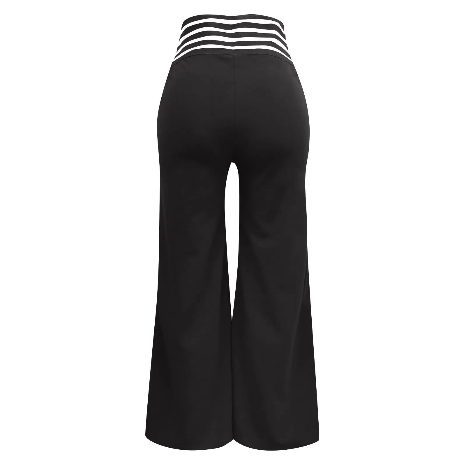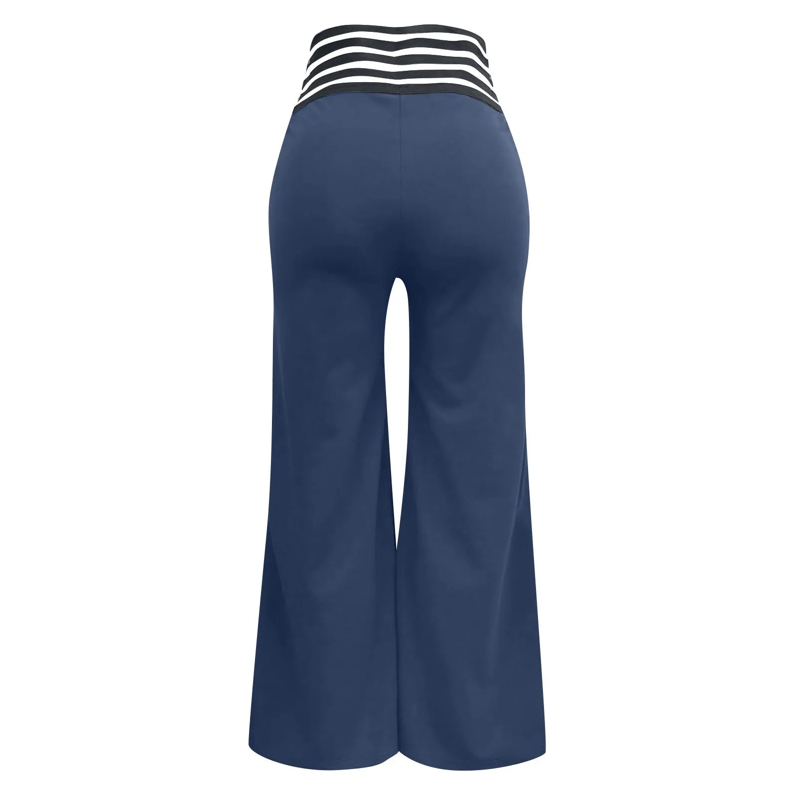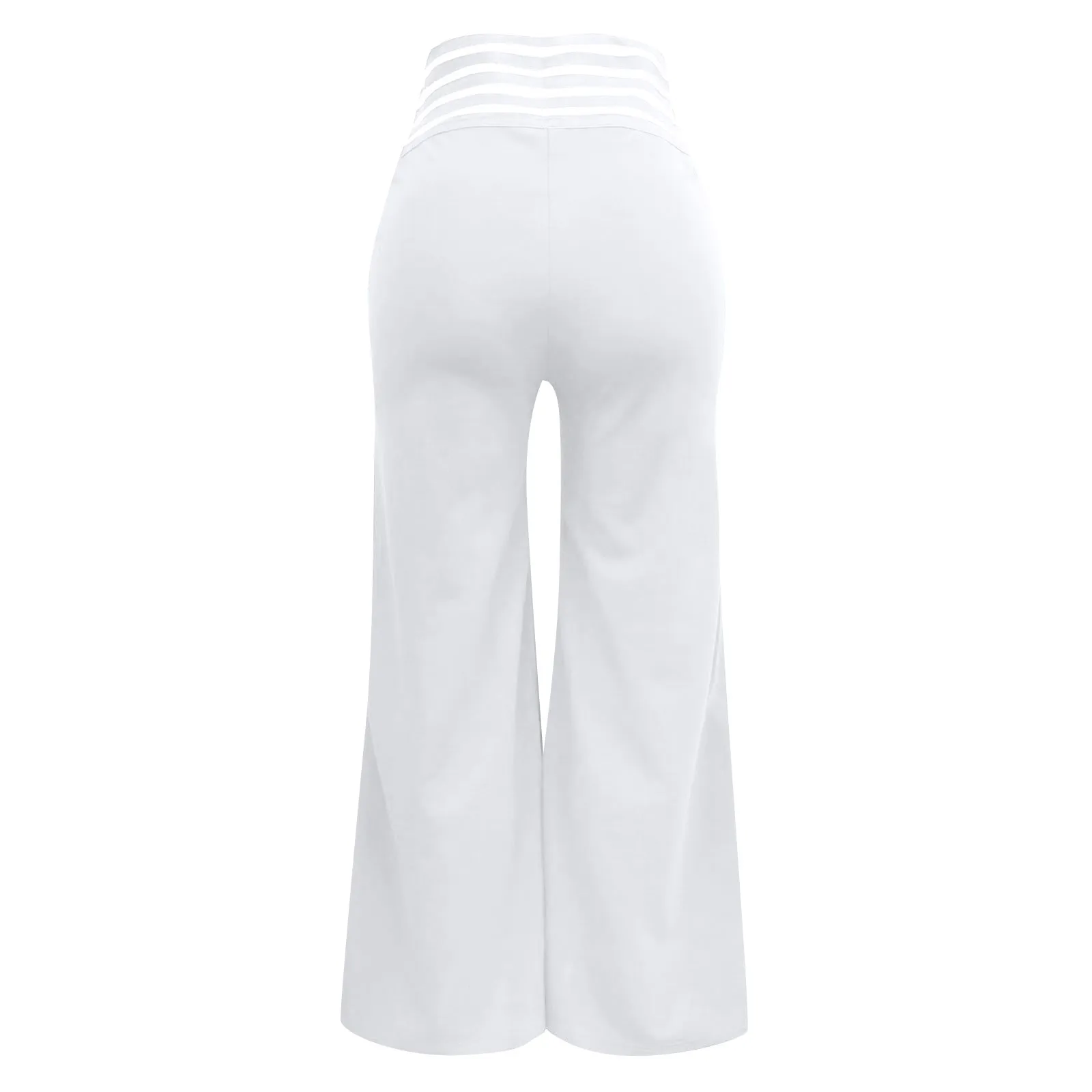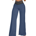 Women's Hollow Belt Trousers Temperament Flared Trousers High Waist Casual Wide Leg Pants