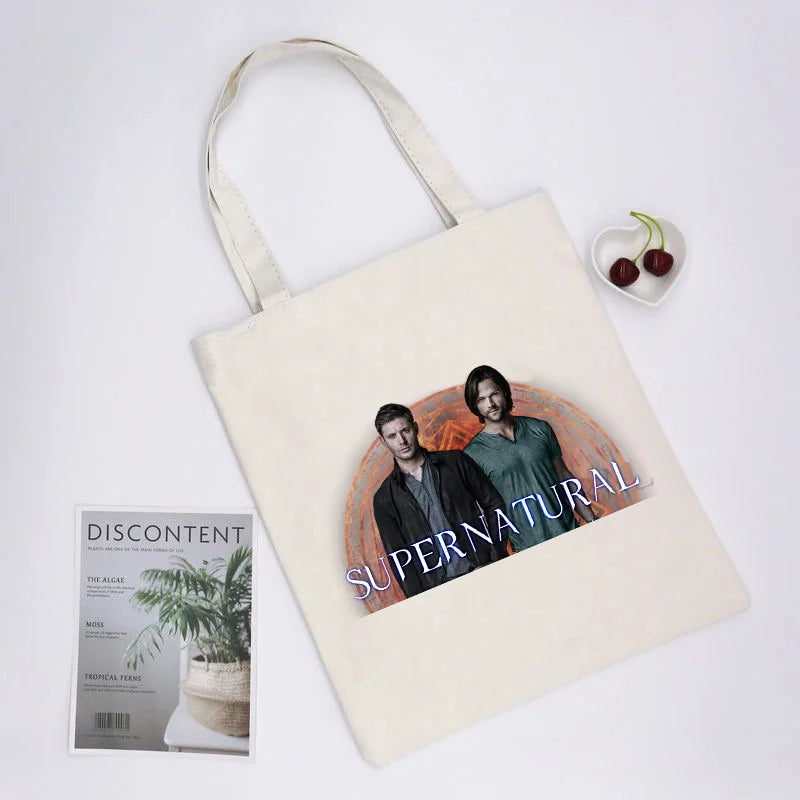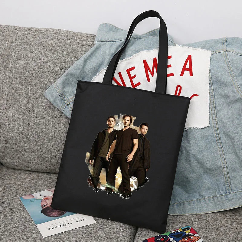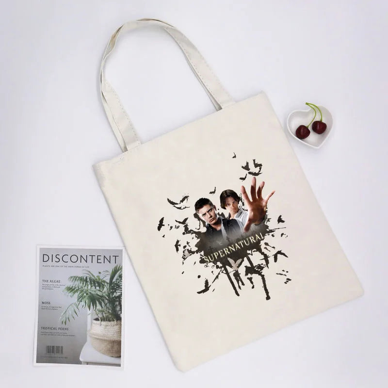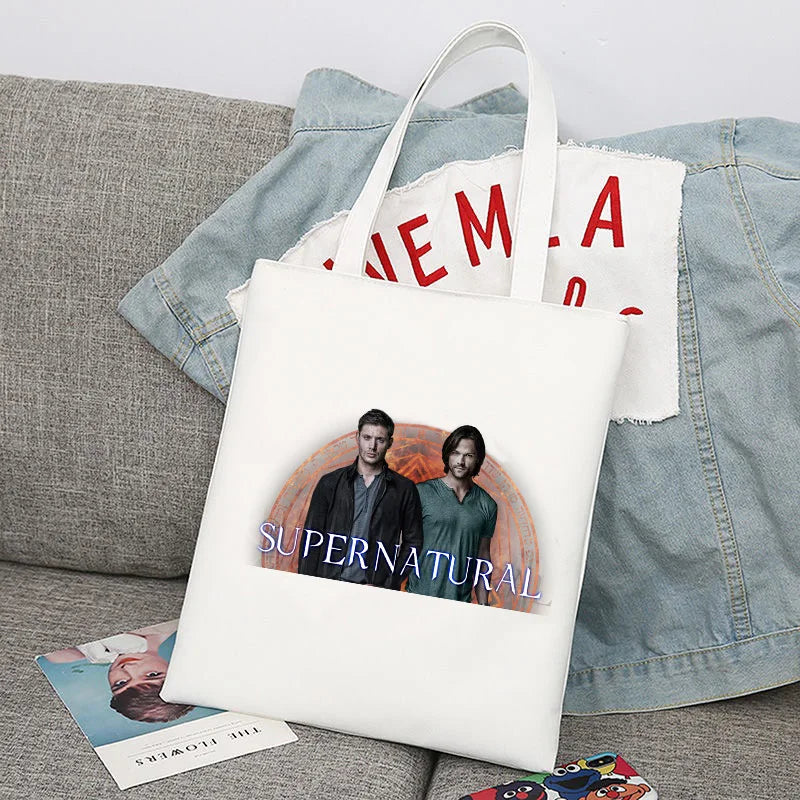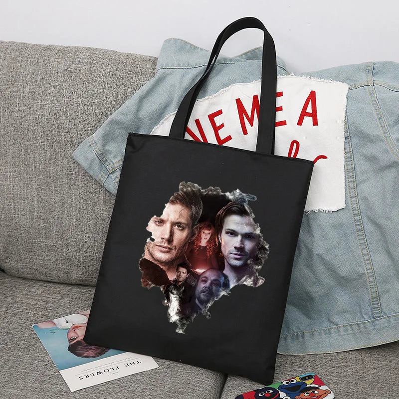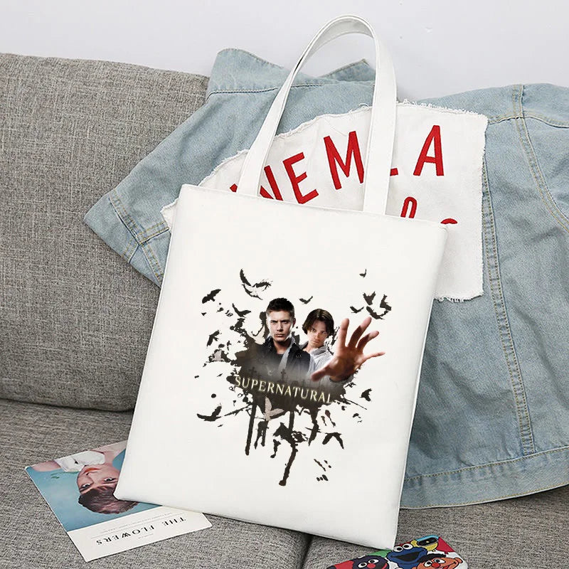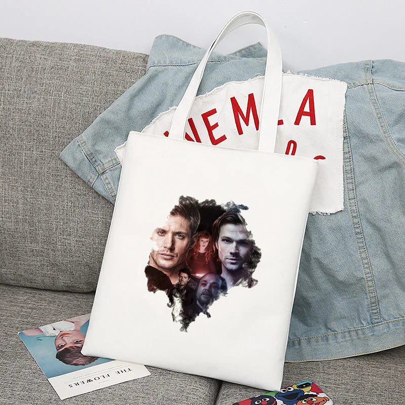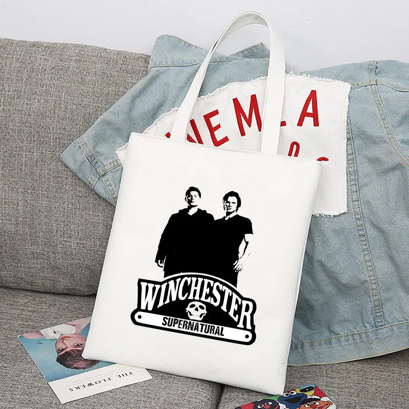 Supernatural Winchester Bros Sam Dean Shopping Bag Handbag Foldable Reusable Cloth Shopper Harajuku Bag Student Canvas Tote Bag
