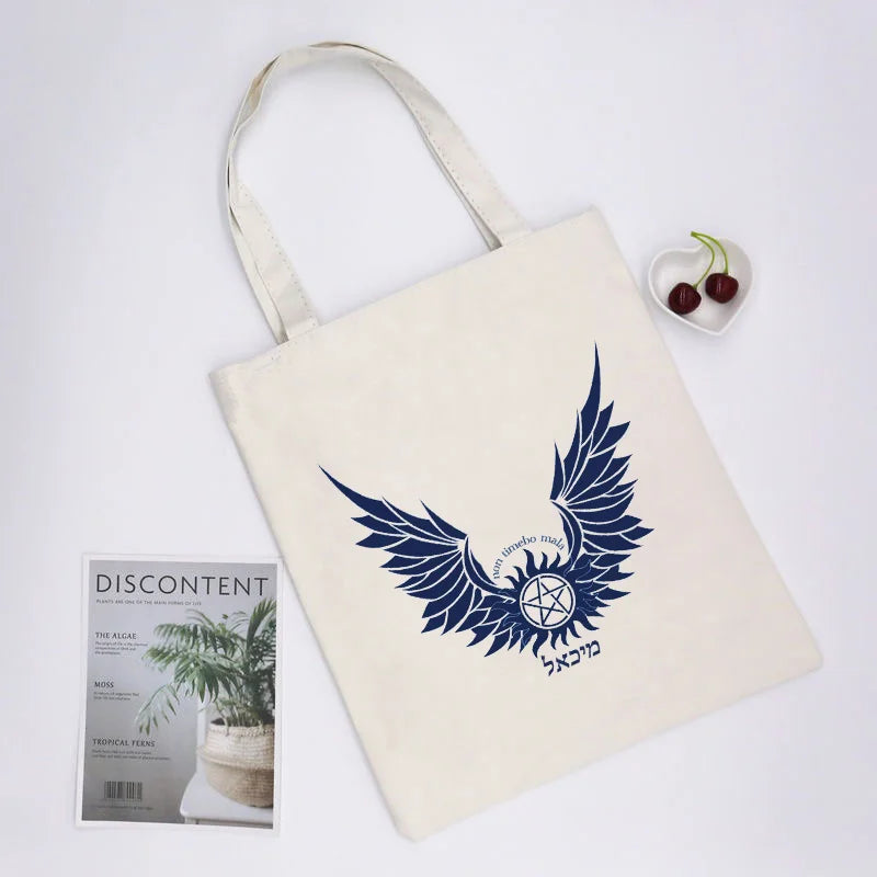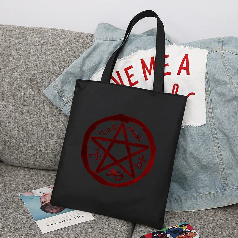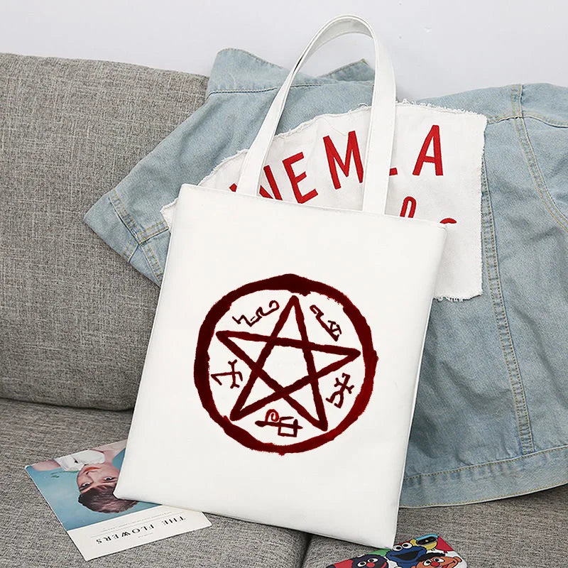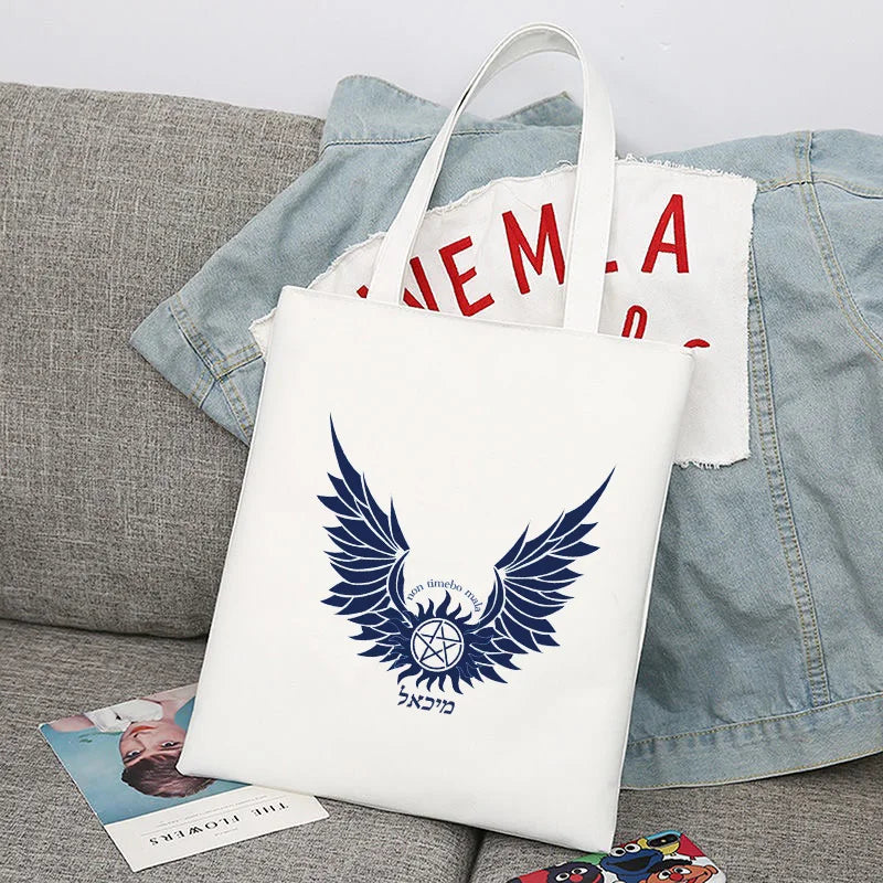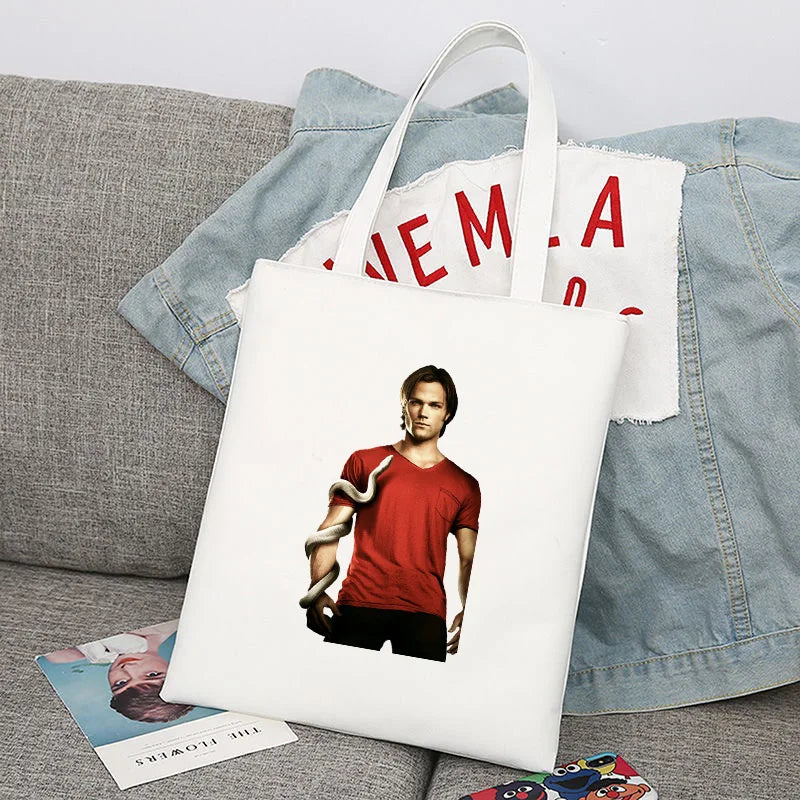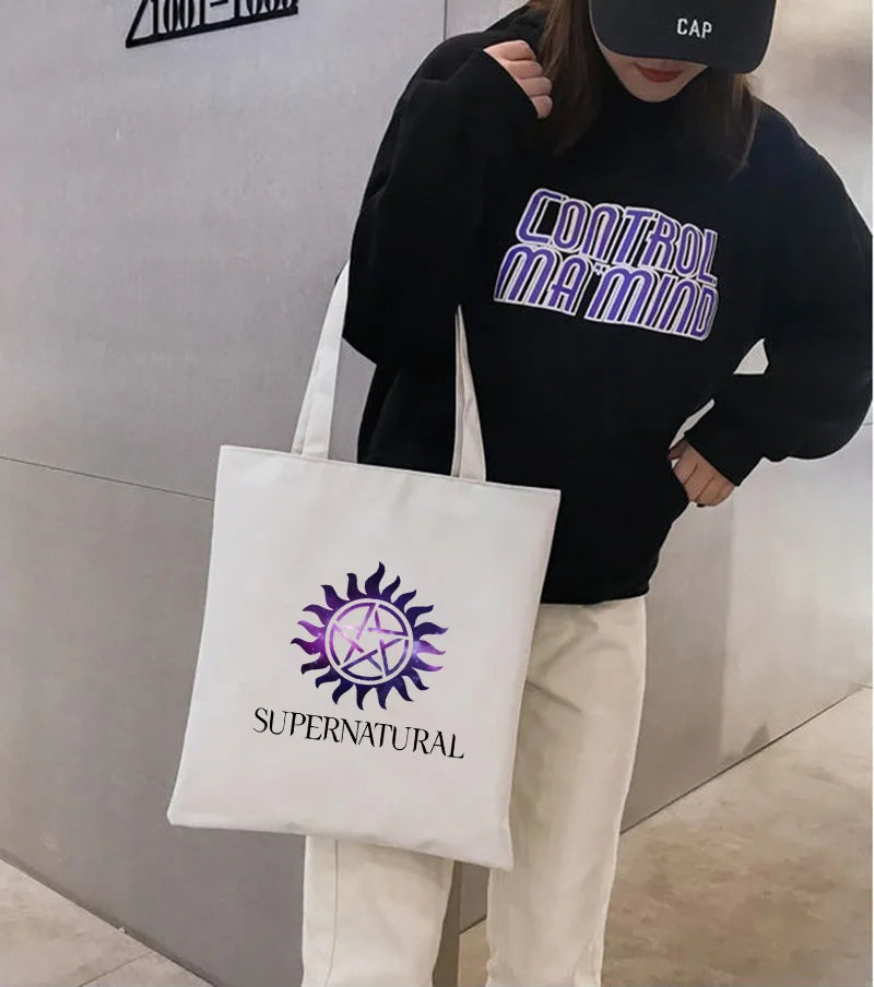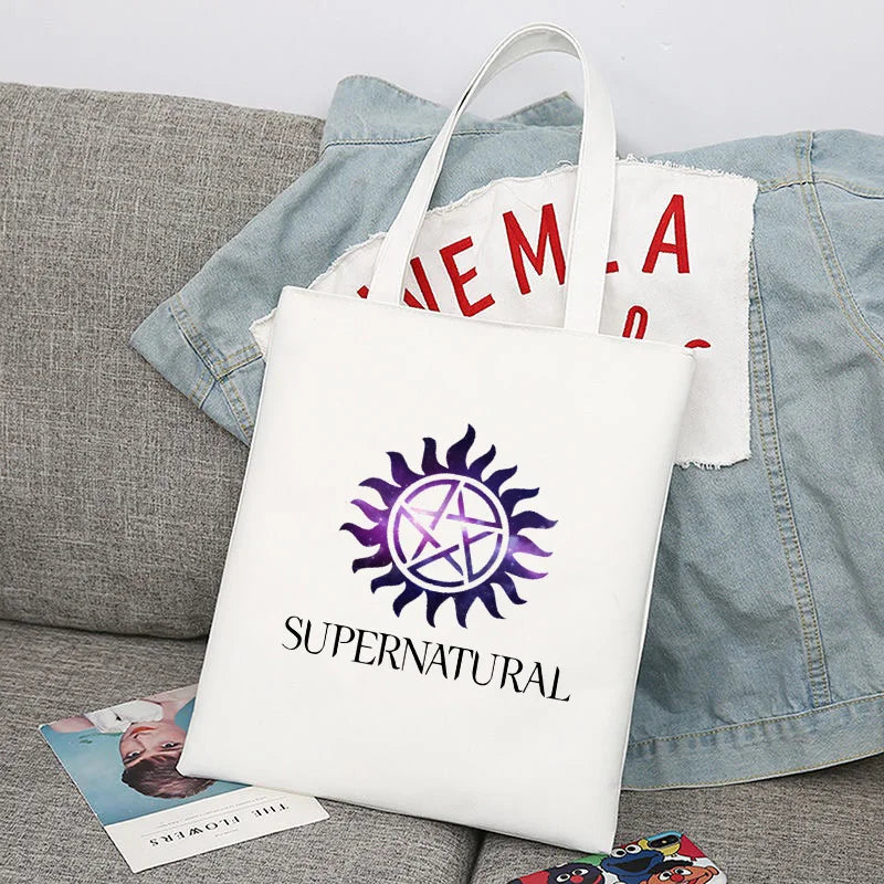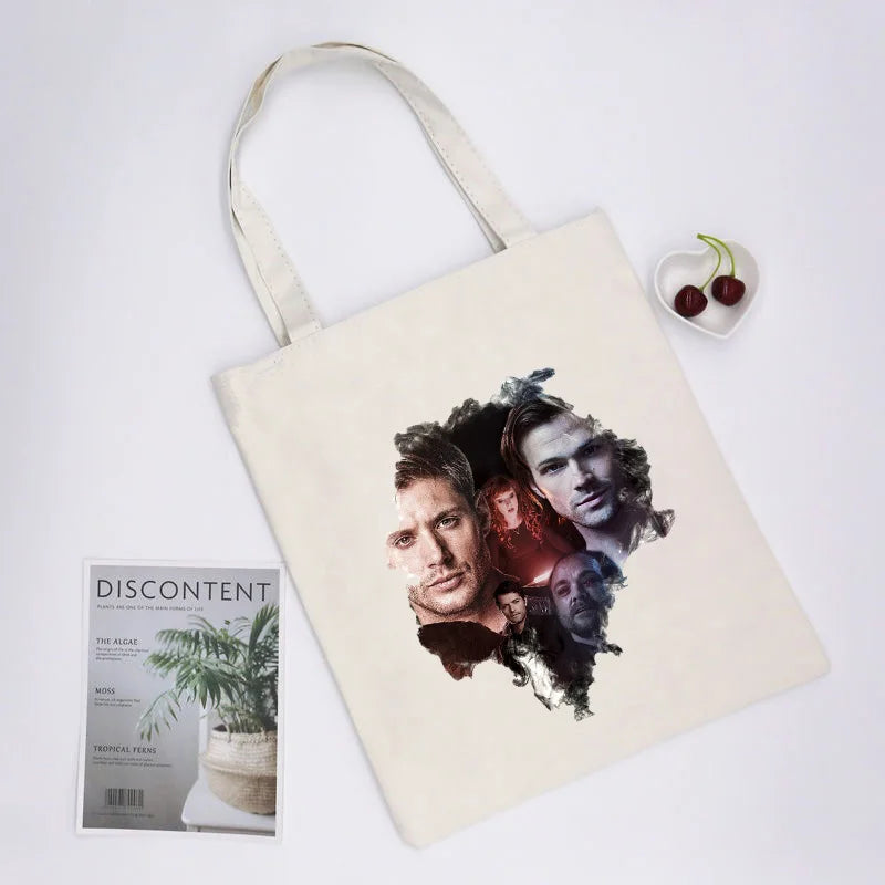 Supernatural Winchester Bros Sam Dean Shopping Bag Handbag Foldable Reusable Cloth Shopper Harajuku Bag Student Canvas Tote Bag
