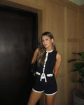 Talenza Women's Knit Pants Set 2025 Summer Sleeveless Knit Cardigan Vest Slim Shorts Set Casual Spring Vintage Female Pants Set