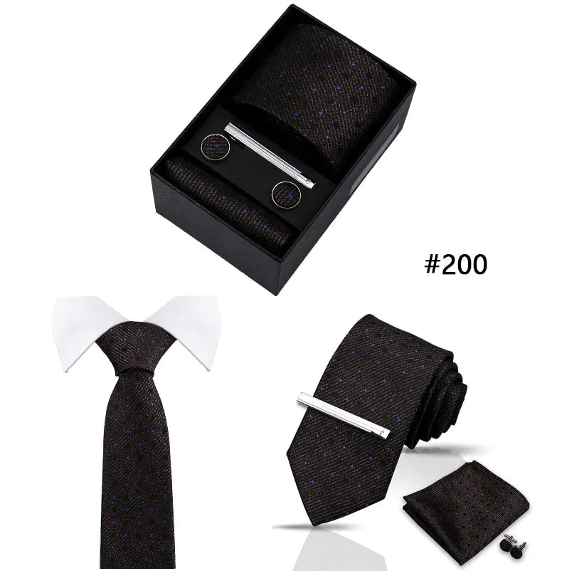 Tie Set Skinny Silk Tie For Men Wedding Blouses Dress Silk Necktie Cufflinks Box Pocket Square Clip Gift Box Business Gravetas
