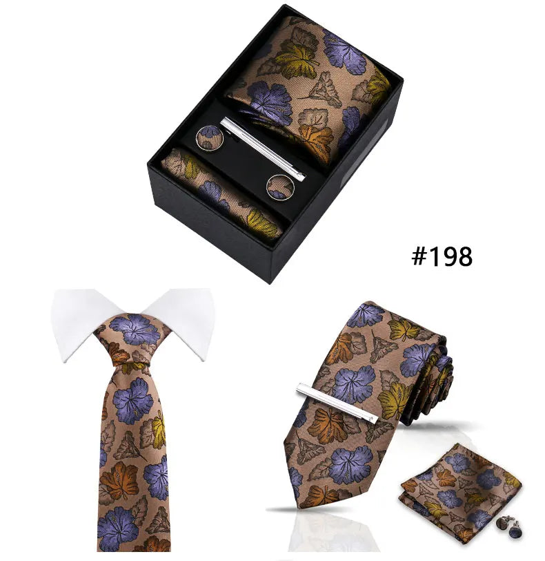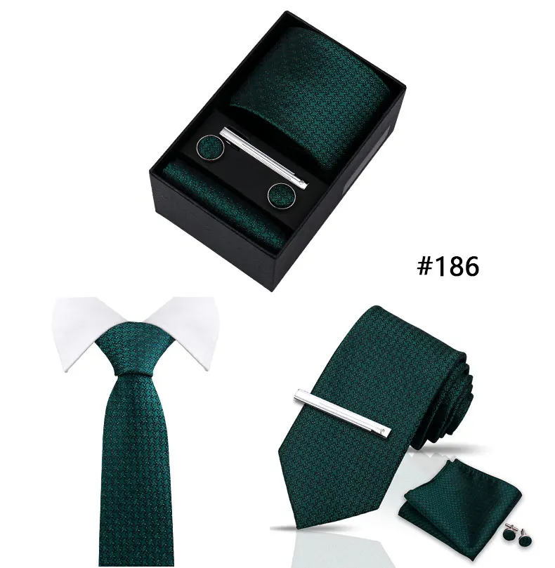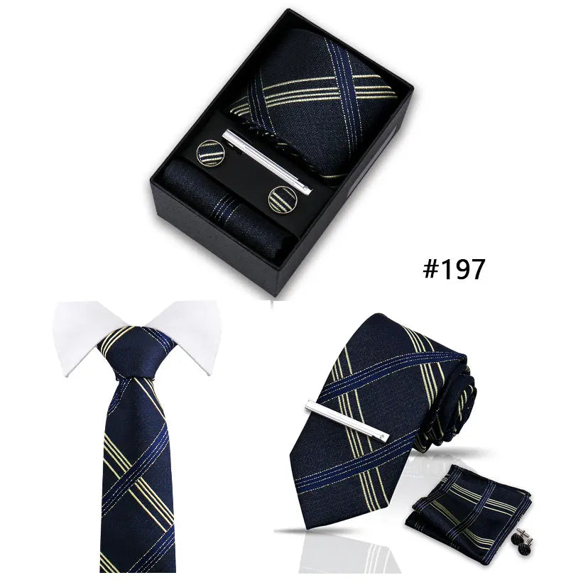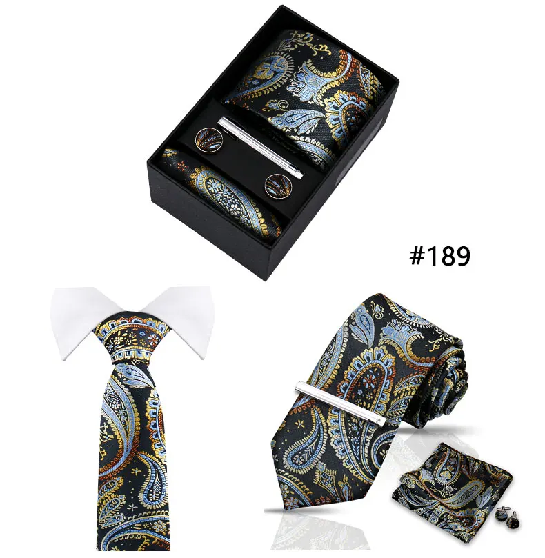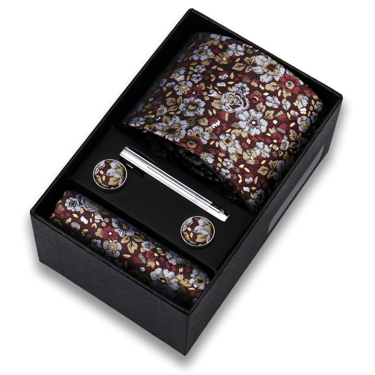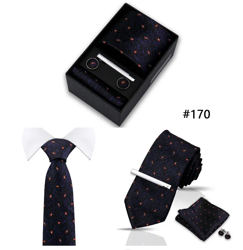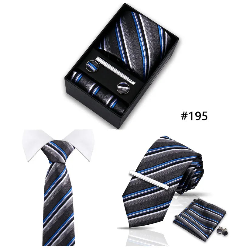 Tie Set For Men Necktie Fashion Wedding Cufflinks Box Gift Tie Clip Men Pocket Square Necktie Luxury Business Wholesale Gravatas