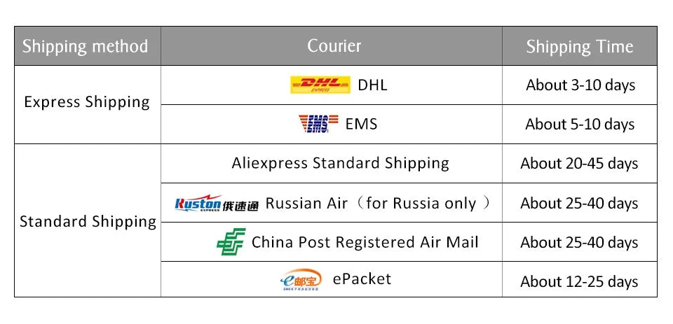 3.For faster and Safer delivery, we recommend you select shipping via China Post Registered Air Mail, ePacket, or AliExpress Standard Shipping