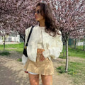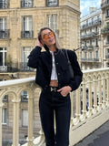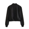 TRAF Woman Bomber Jacket Coat White Autumn Winter Button Baseball Aviator Cropped Jackets for Women Long Sleeve Crop Outerwear