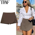 TRAF Women's Skort High Waist Brown Skirt Pants Stylish Summer Pink Black Mini Skirt Shorts Asymmetric Casual Off White Skort