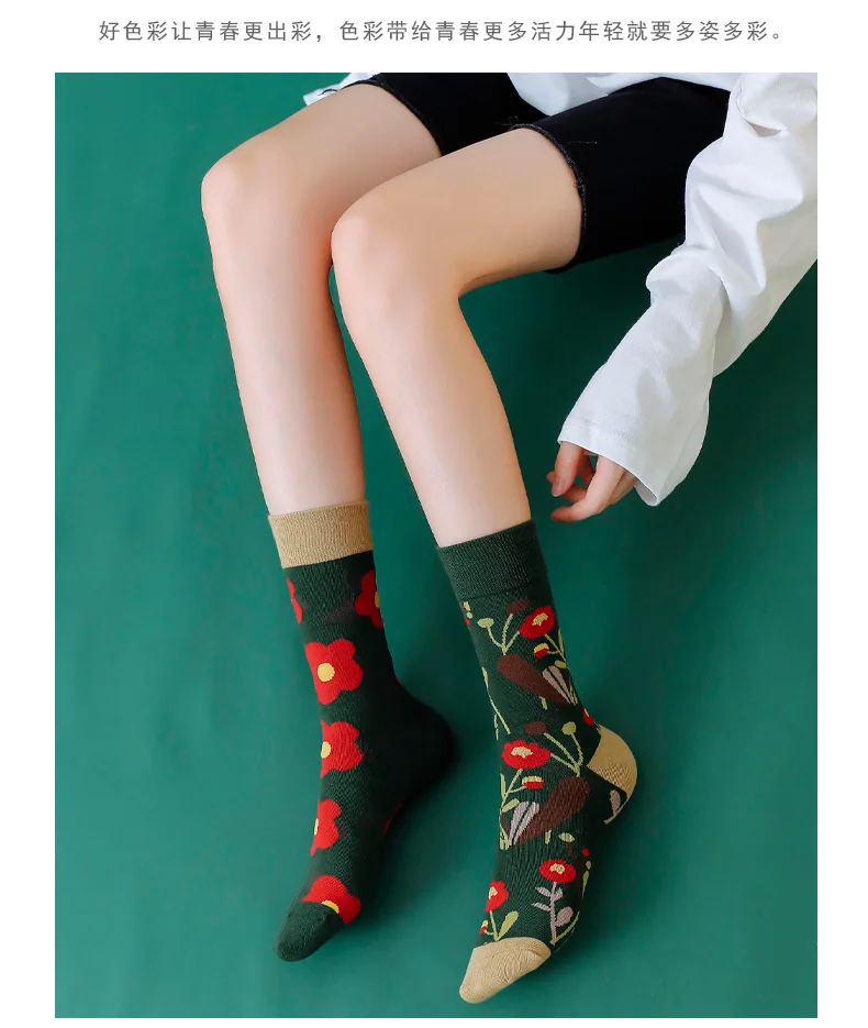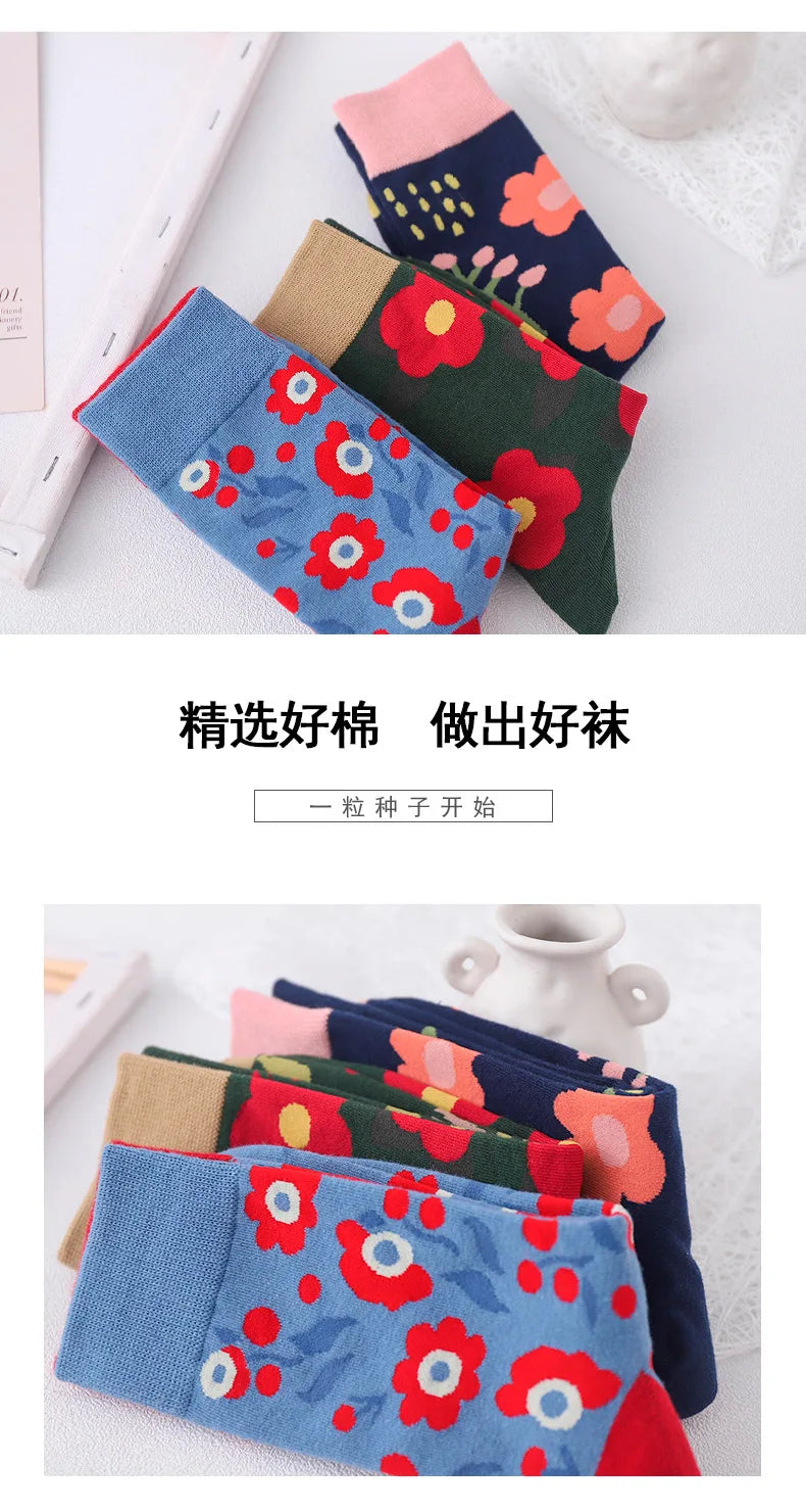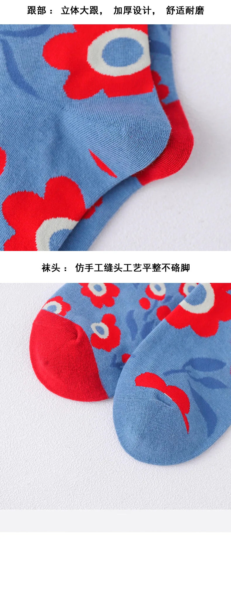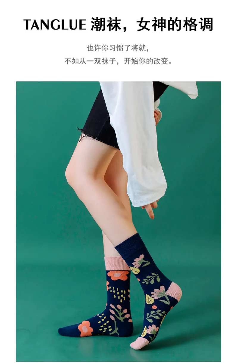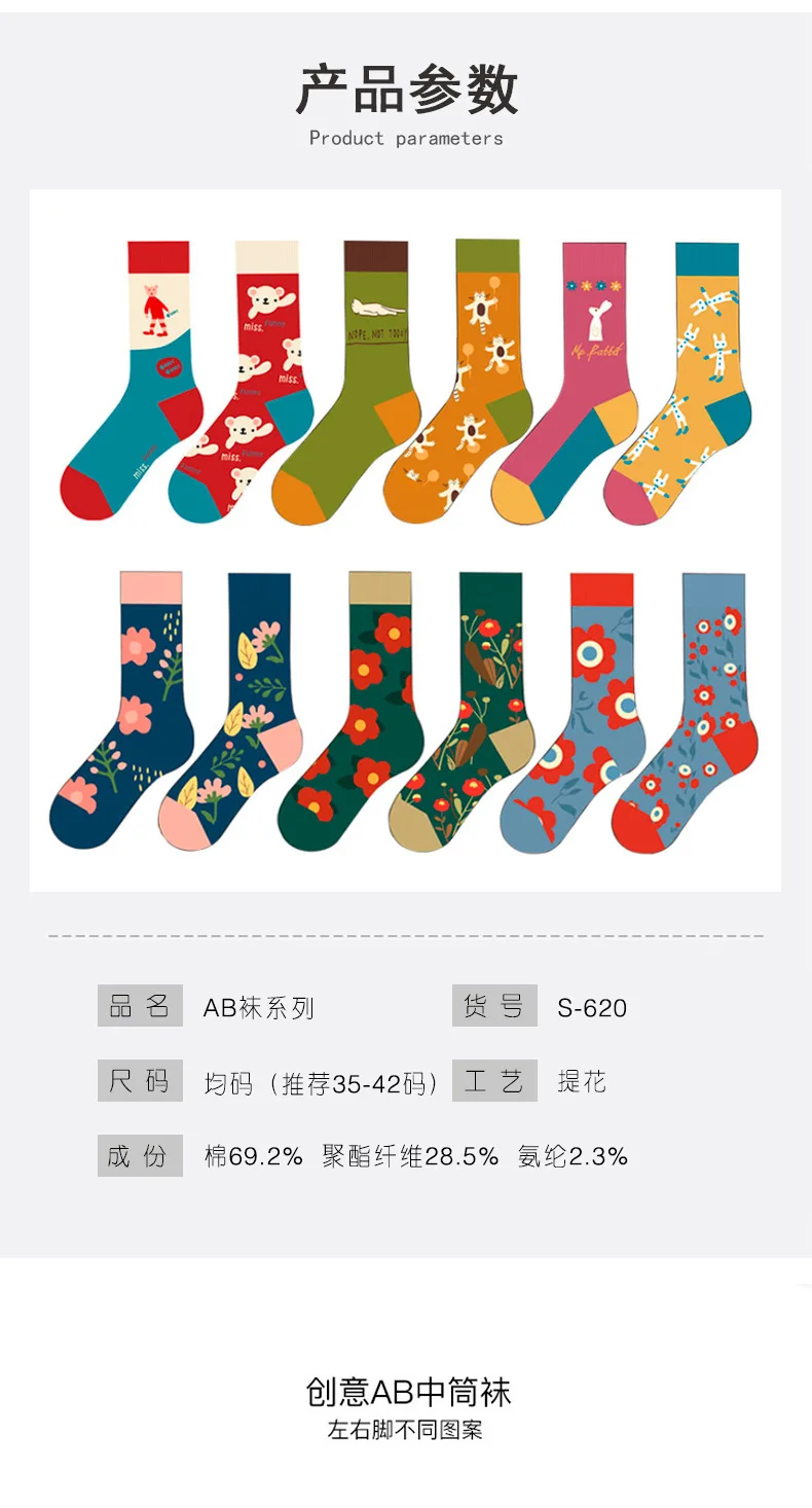 Trendy Socks Ab Paragraph Pure Cotton High Tube Socks Creative Cartoon Small Flowers New Autumn and Winter Stockings Female Sock