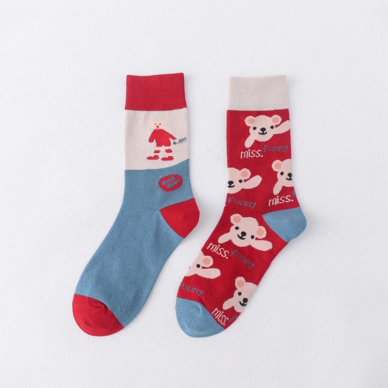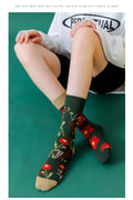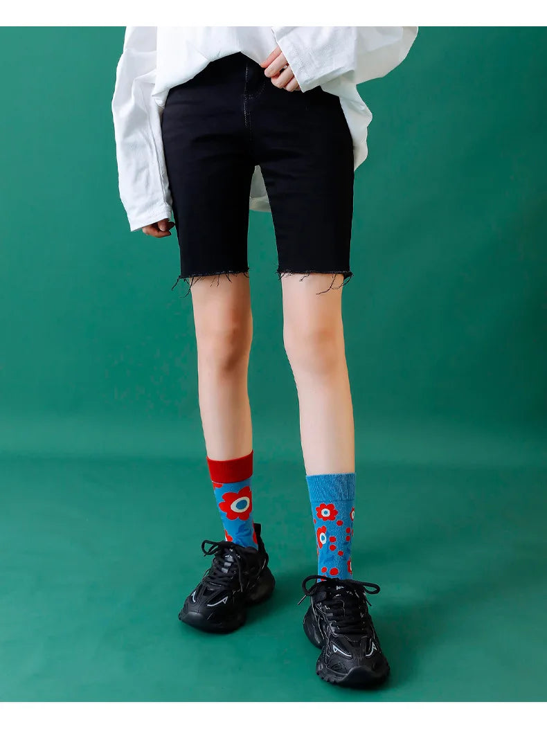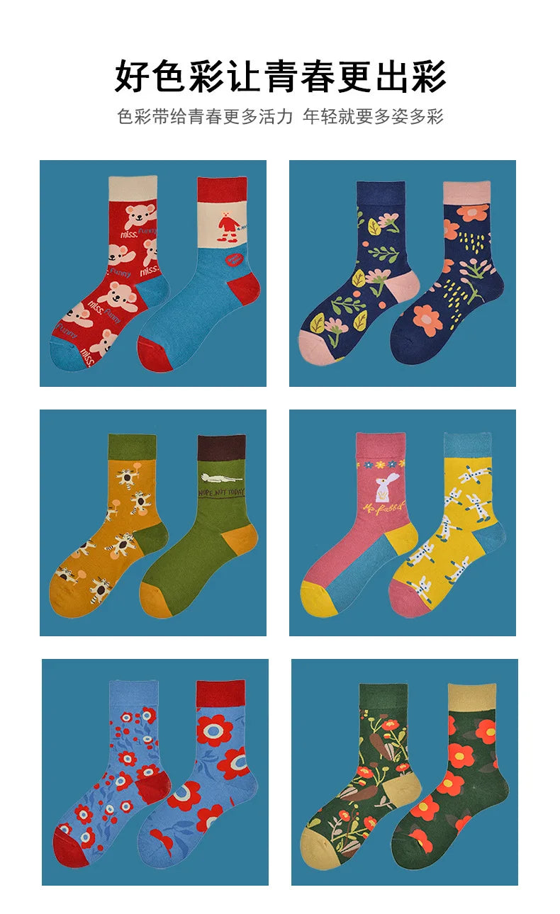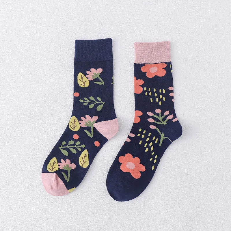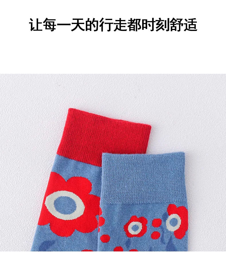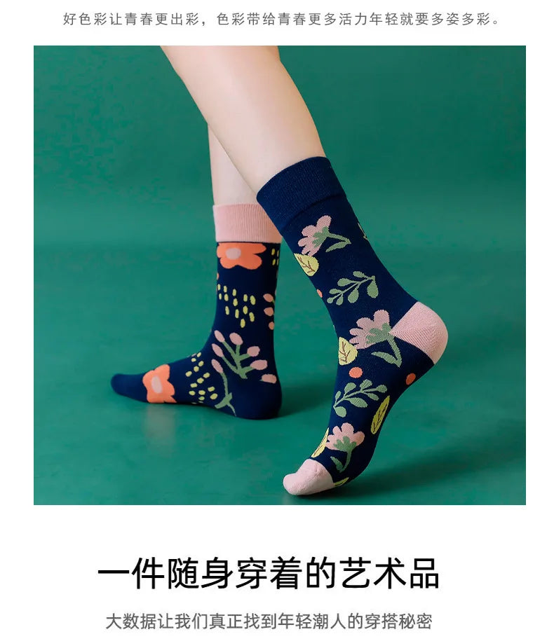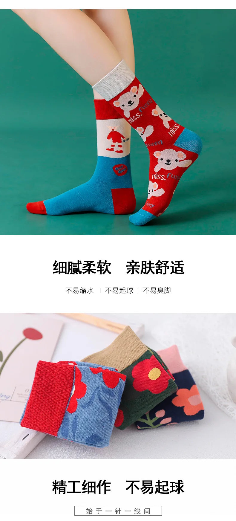 Trendy Socks Ab Paragraph Pure Cotton High Tube Socks Creative Cartoon Small Flowers New Autumn and Winter Stockings Female Sock