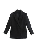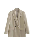 TRZA Women Fashion Double Breasted Loose Fitting Blazer Coat Vintage Long Sleeve Pockets Female Outerwear Chic Veste Femme