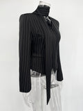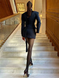 Tuularose 3 Piece Dress Set Women Elegant V-Neck Striped Ribbon Blazer Slim Short Dress Set Fashion Luxury Women Party Dress Set