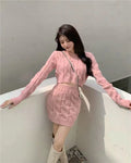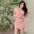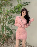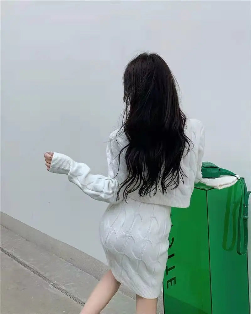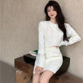 Two Piece OF Pullover Autumn/Winter Knitted Sweater Set Pure Desire Short Sweater Sexy Spicy Girl Arm Wrap Skirt Sweater Female