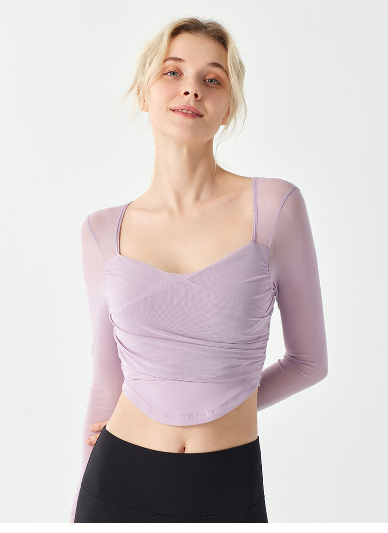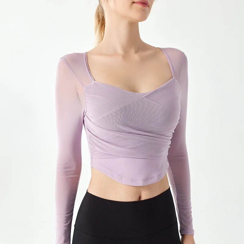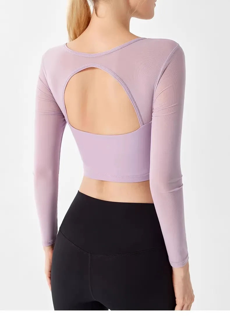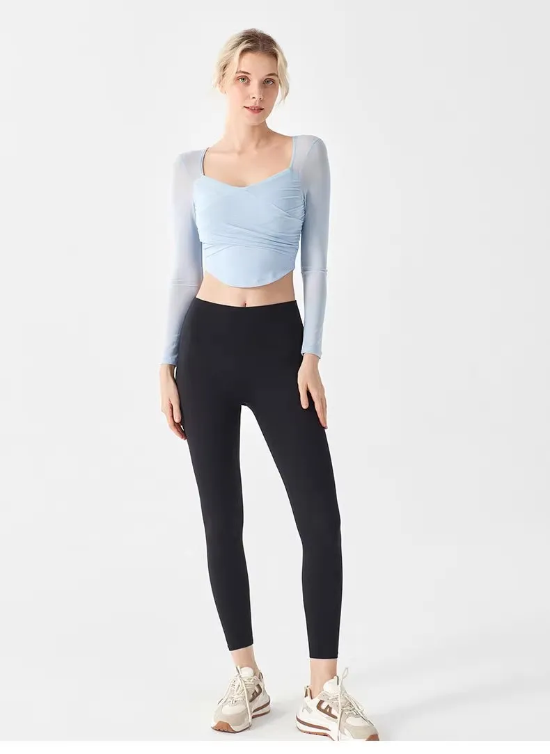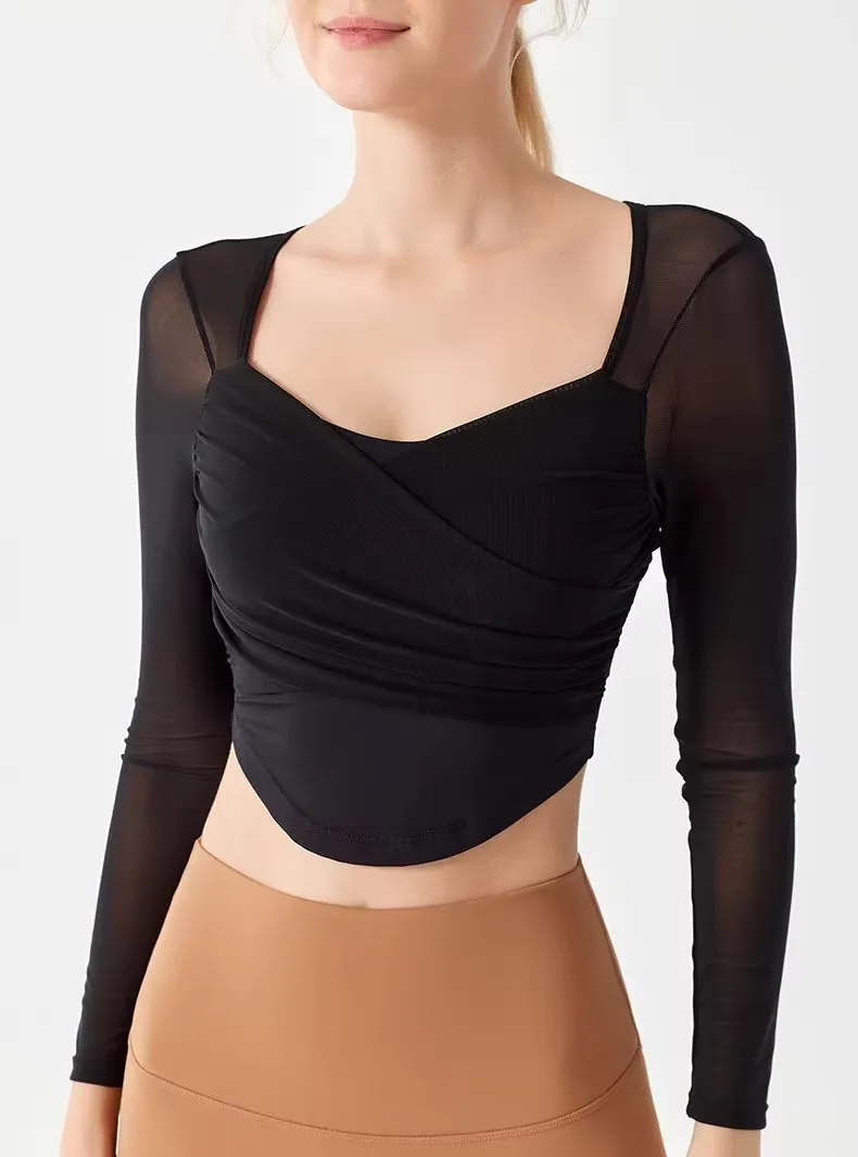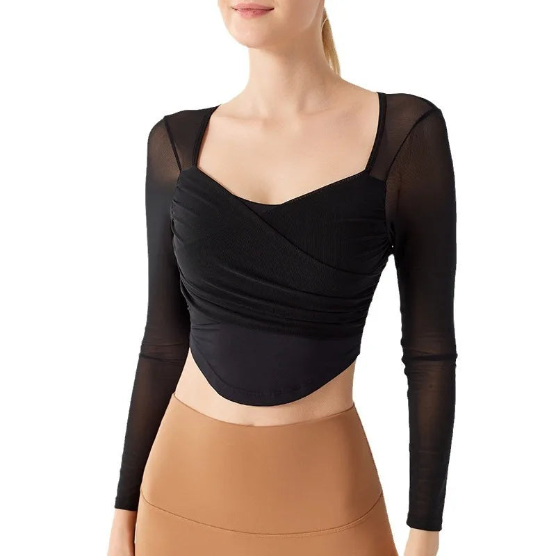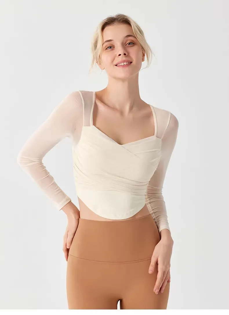 Underwear Yoga Suit for Women's New Long Sleeved Pilates Mesh Red Sports Quick Drying, Breathable and Slimming Fitness Suit