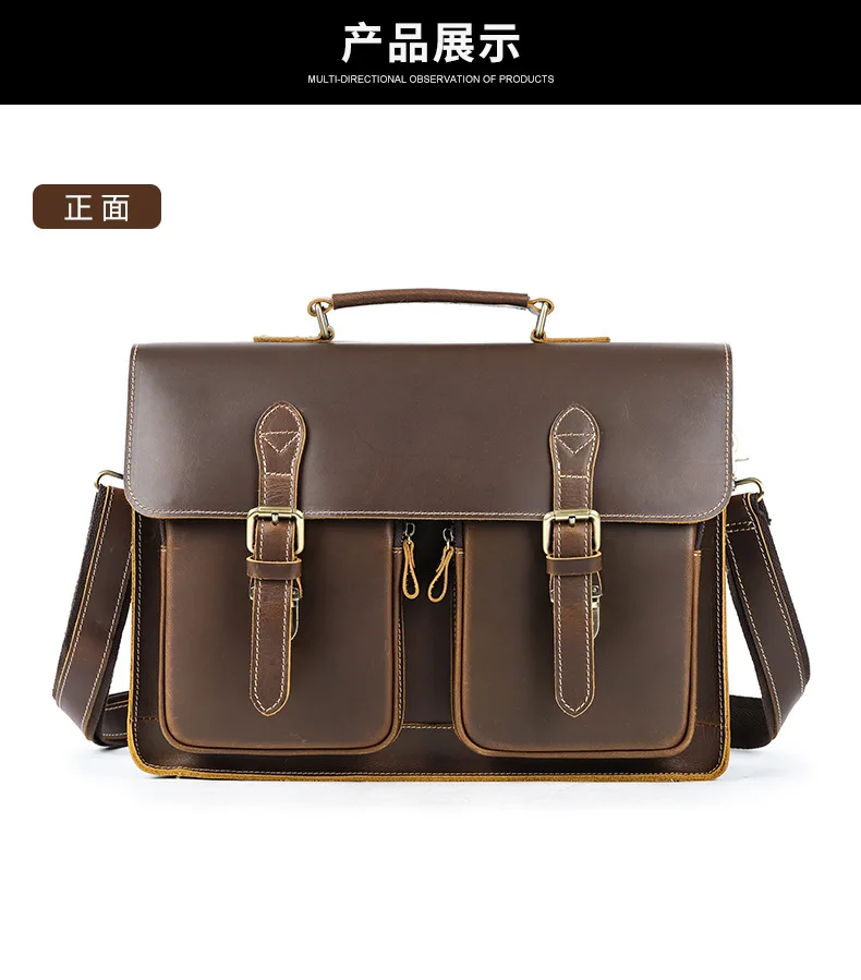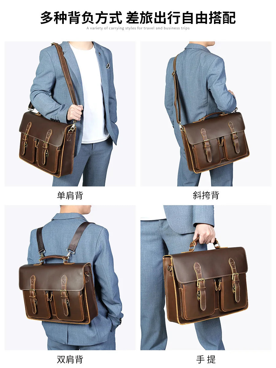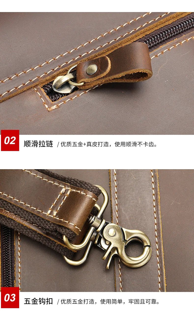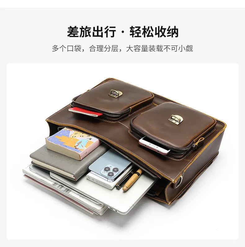 Vintage Handbags Men's Leather Notebook Bag Cowhide Travel Trolley Wheel Luggage Men's Messenger Bag Business Briefcases