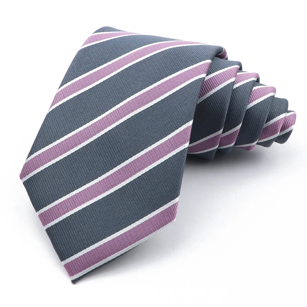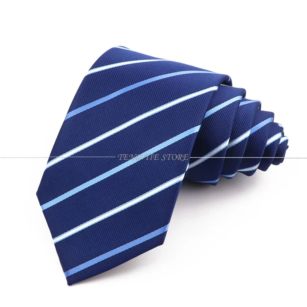 Vintage Striped Polyester Men's 8cm Tie Blue Gray Cravat Fashion Formal Office Suit Shirt Accessories Necktie Wedding Gift