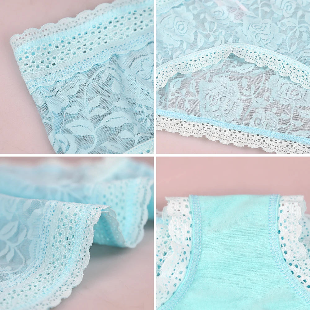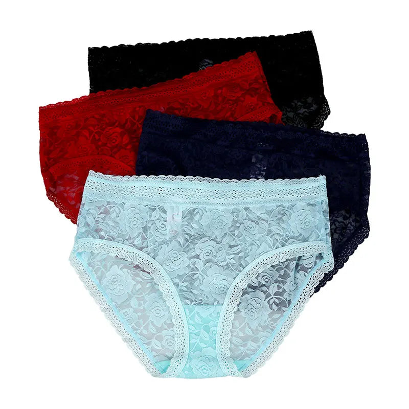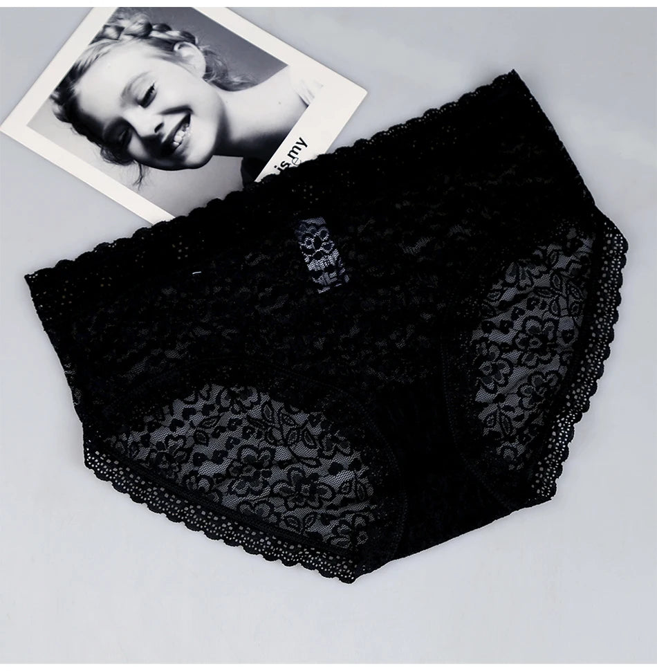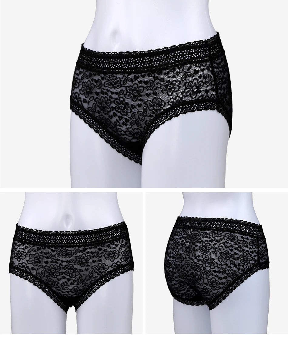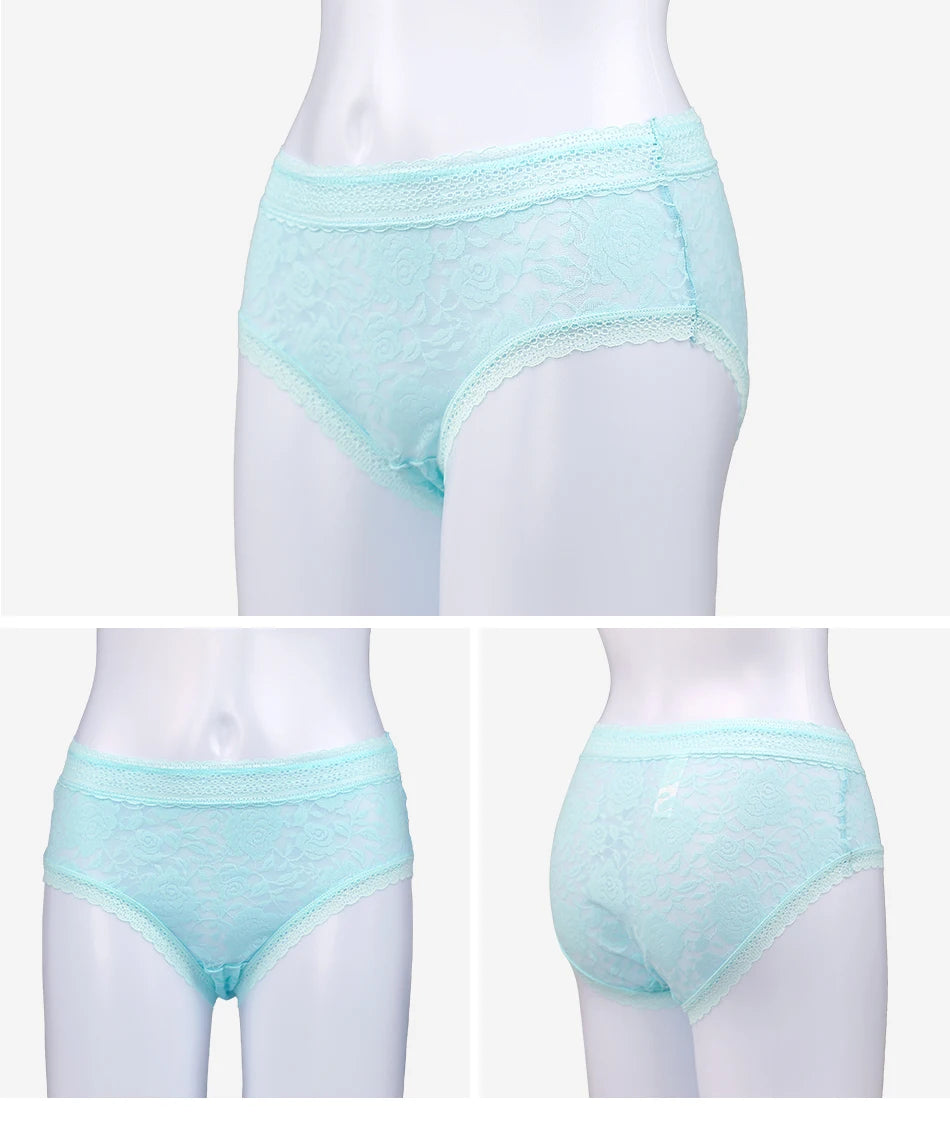 VOOKIIMO Women's Underwear Hi-cut Midi Sexy Hollow Lace Brief Knickers Hipster Comfy Panties Soft Lingerie