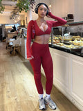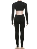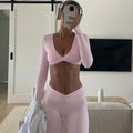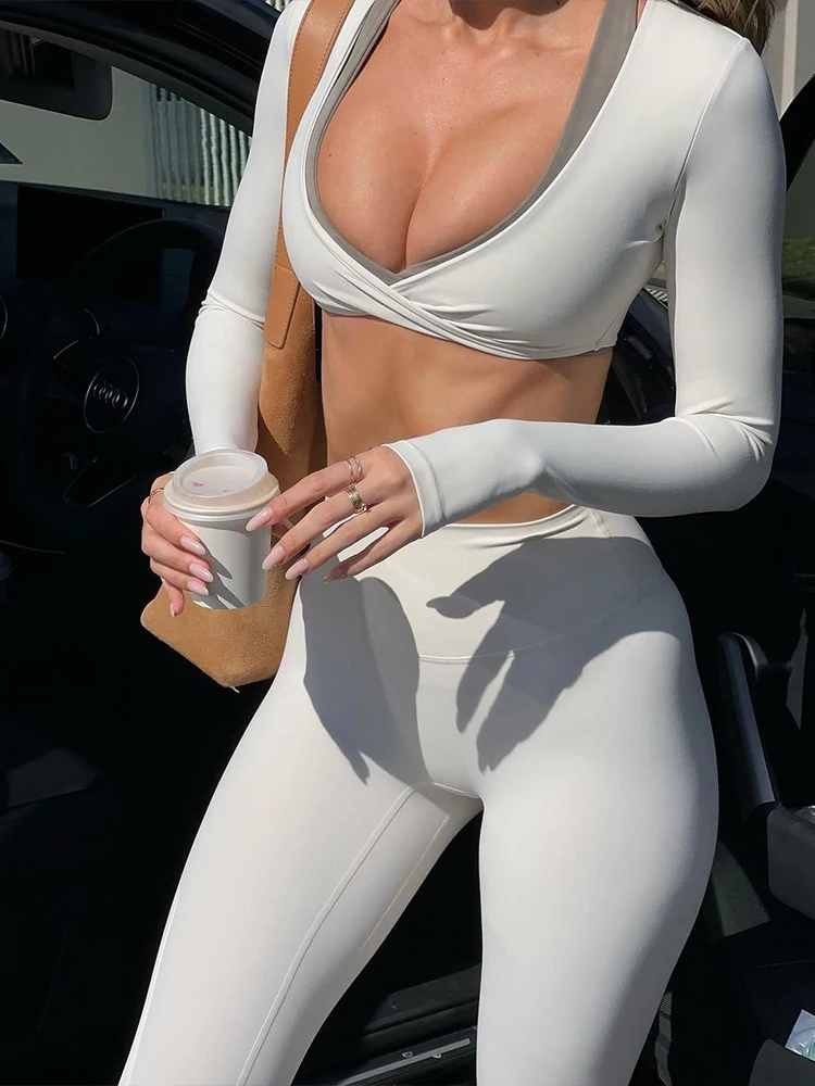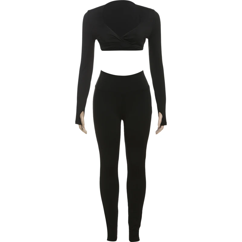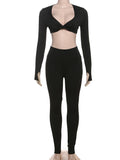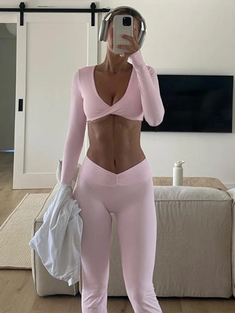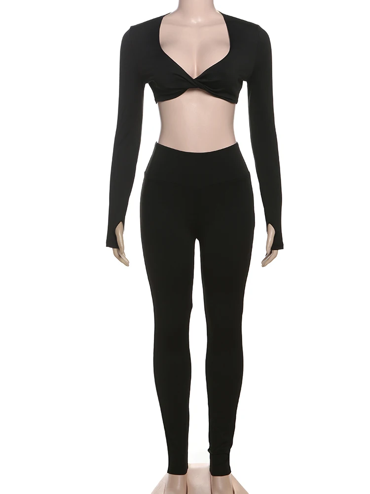 Whatiwear Sporty Casual 2 Piece Set Women Cross Knot V-Neck Crop Tops+Ruched Leggings Simple Matching Streetwear Classic Outfits
