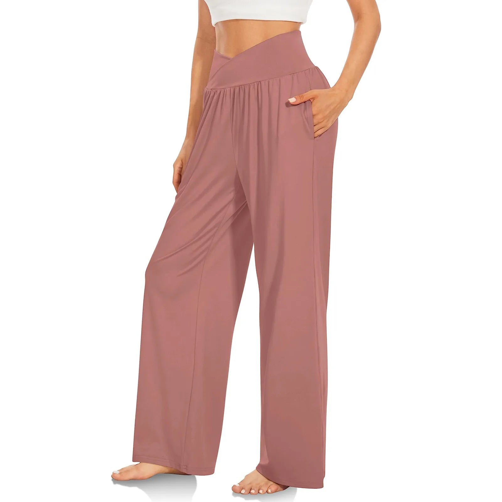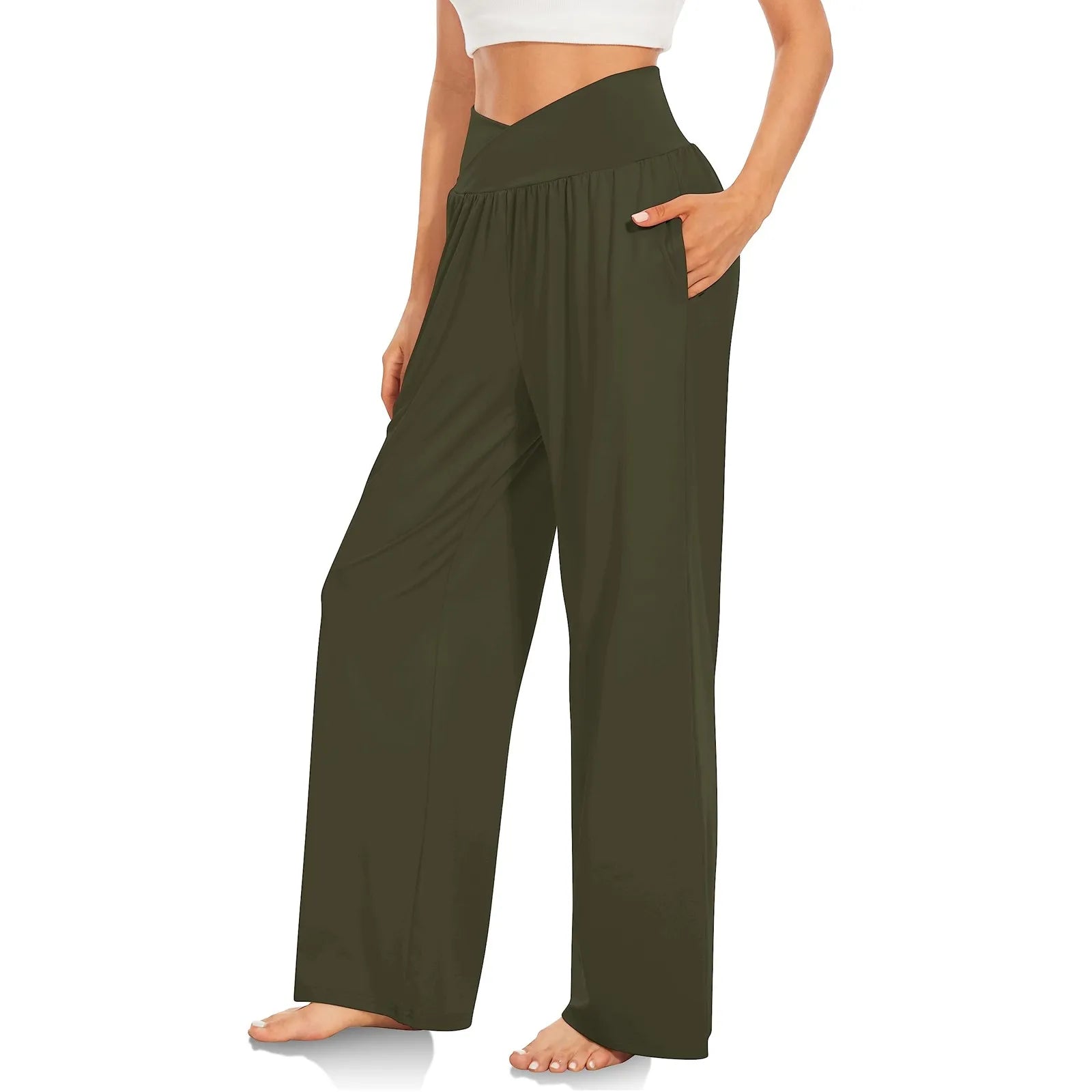 Women's High Waist Solid Color Casual Trousers Wide Leg Sports Pants With Pockets
