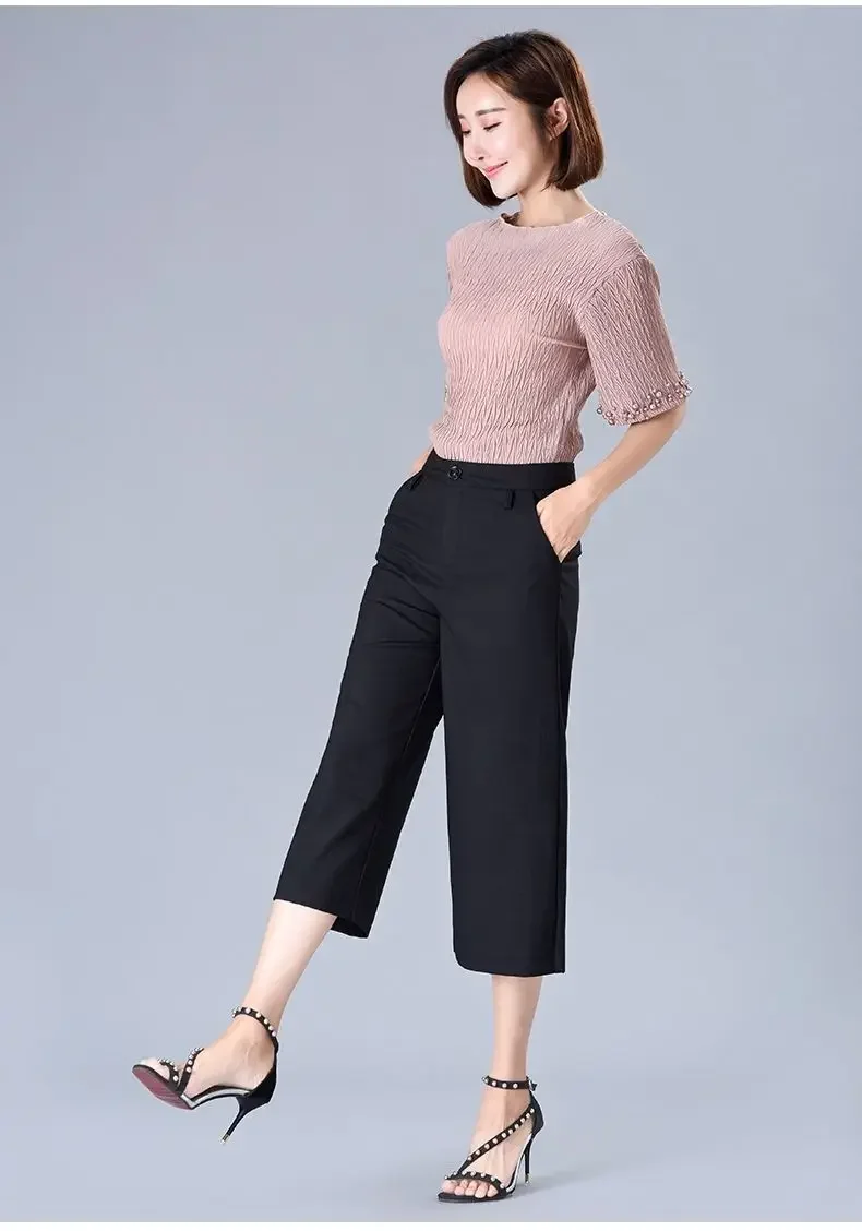 Wide-leg Pants for Women's Summer Thin Cropped Pants New Summer High-waist Korean Loose Drooping Cropped Pants