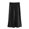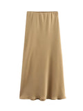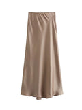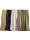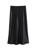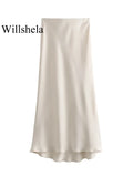 Willshela Women Fashion Satin Solid Pleated Midi Skirt Vintage Mid Elastic Waist Female Chic Lady Skirts