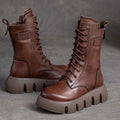 Lace Up Warm Snow Boots Retro: Lady Platform Bikerboots Women