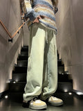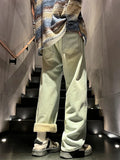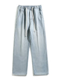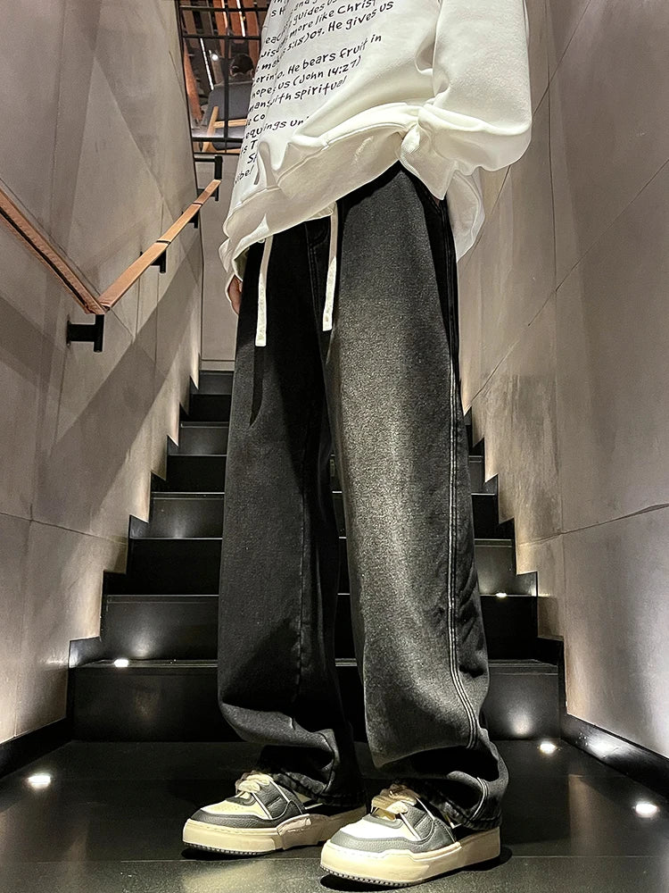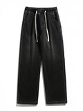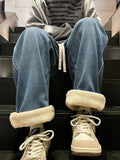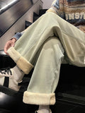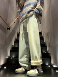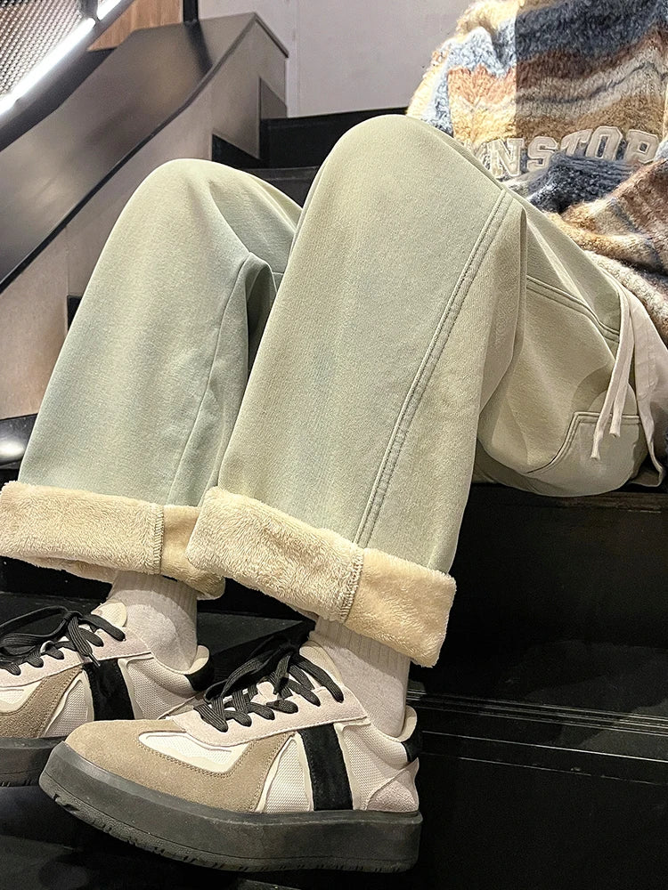 Winter Men's Jeans Korean Fashion Fleece Liner Thick Warm Straight Denim Pants Washed Cotton Retro Blue Wide Leg Jean Trousers
