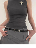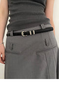 Woman's Fashionable Belts Black Simple Thin PU Belts Trousers Skirt Versatile Belts Student's Casual Belt