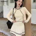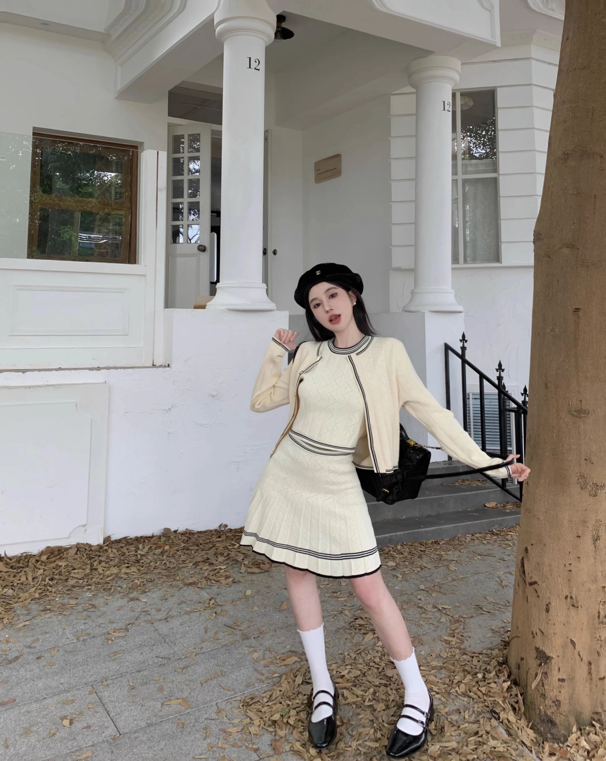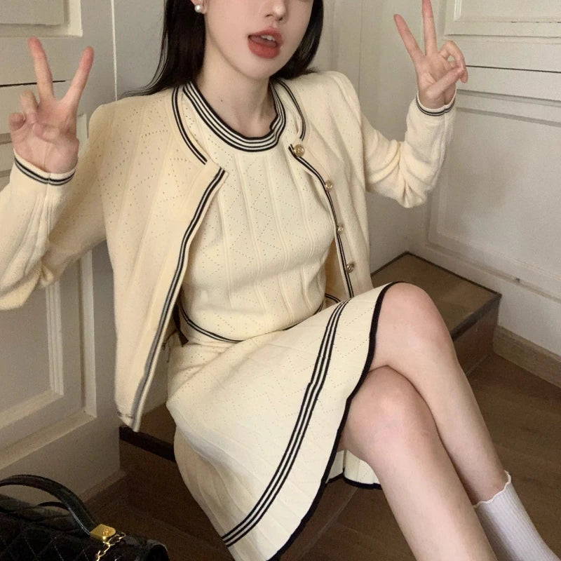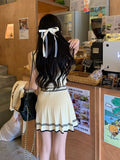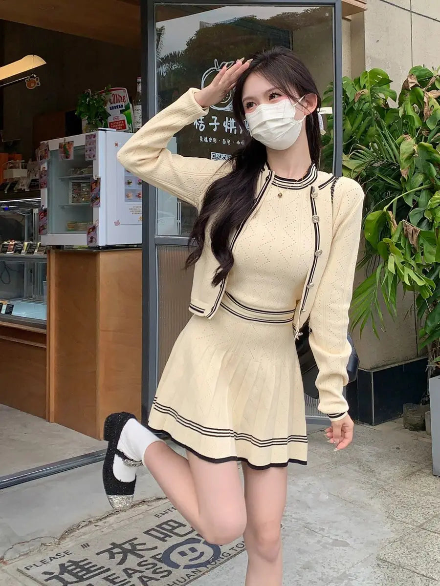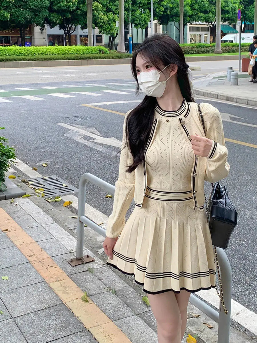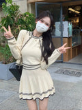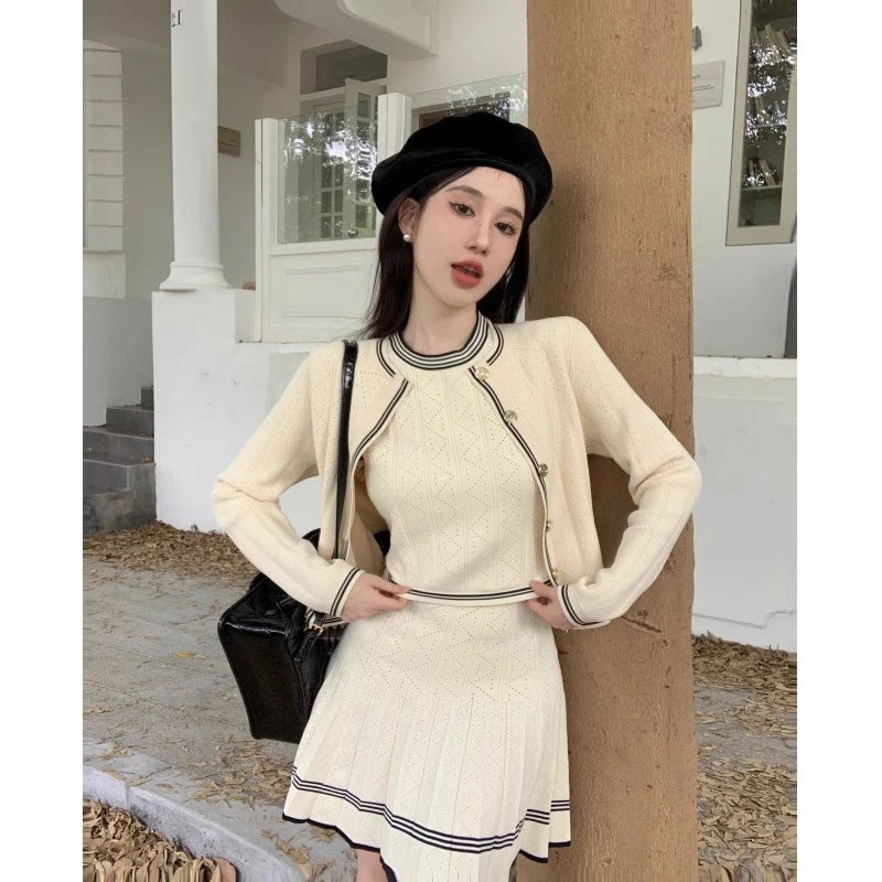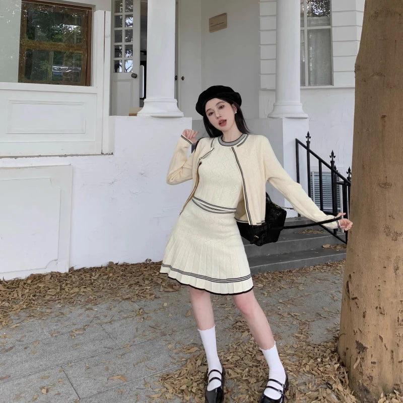 Women 3 Pieces Sets Knitted Tanks Button-up Cardigans High Waist Mini Pleated Skirts Streetwear Gentle Fashion Soft Elegant New