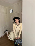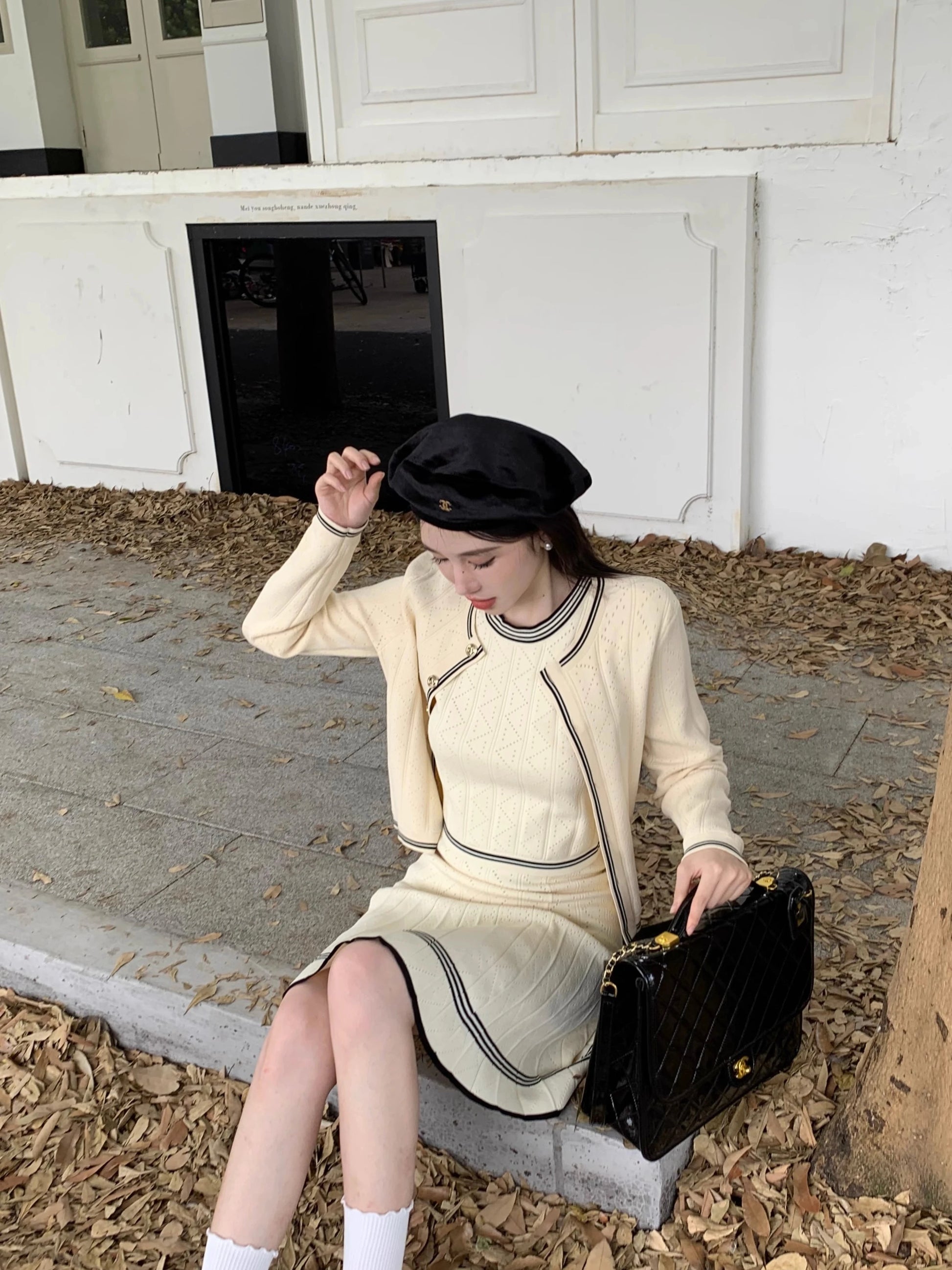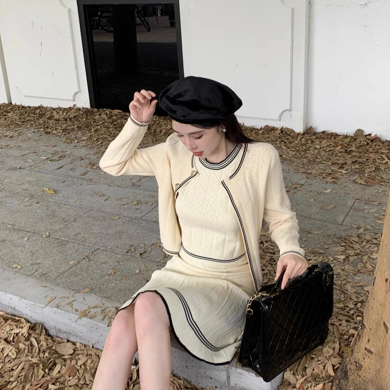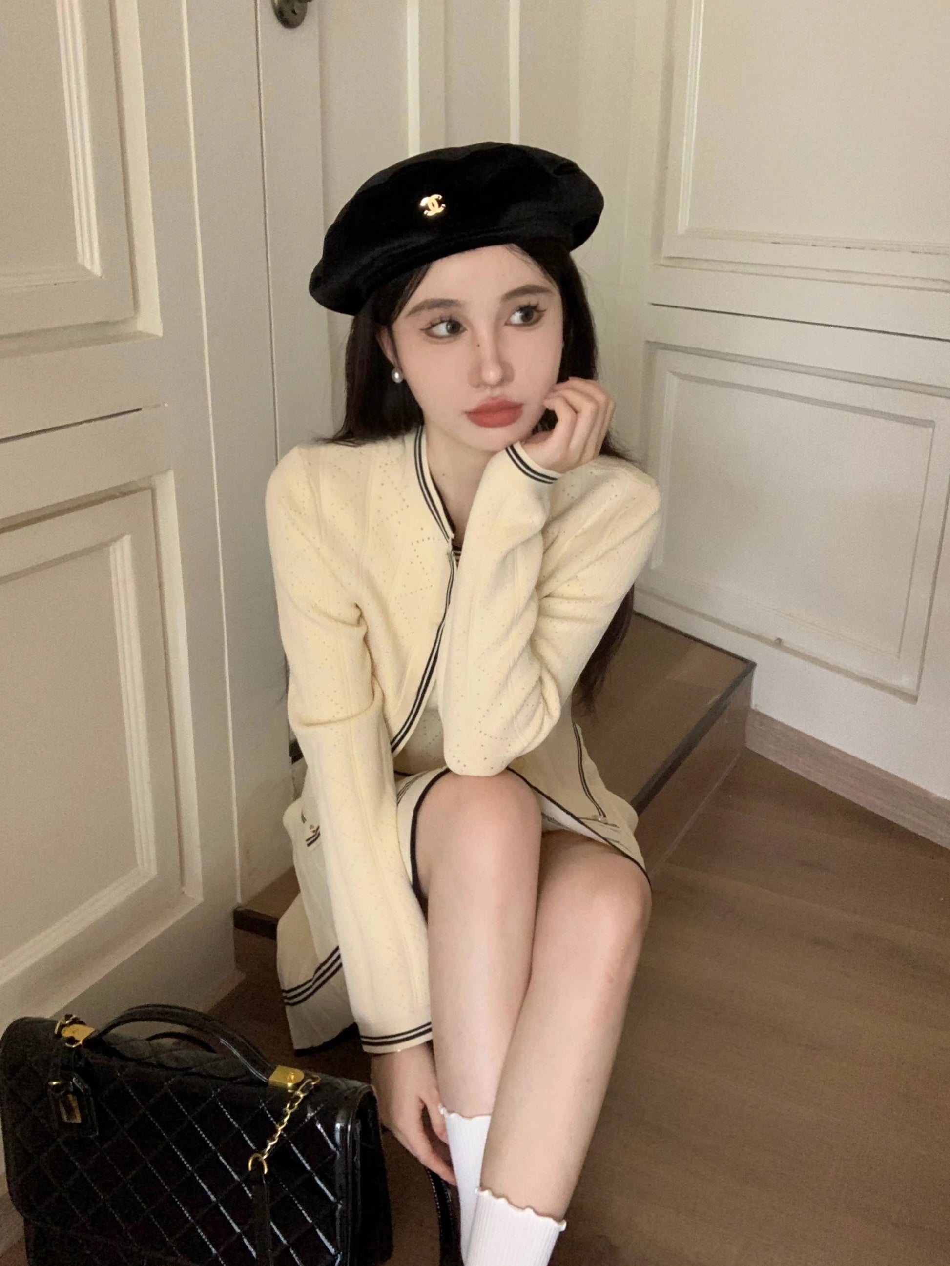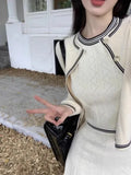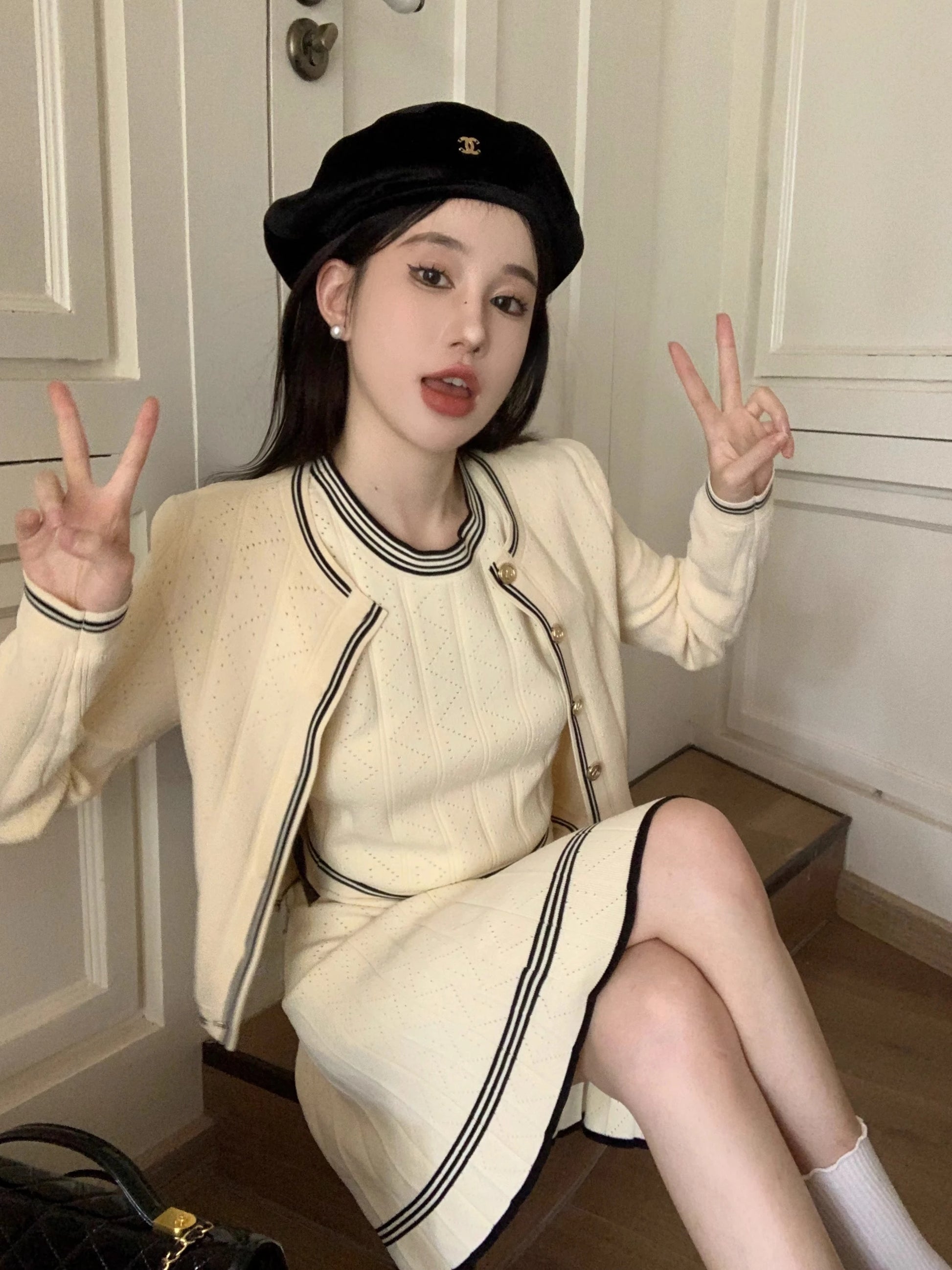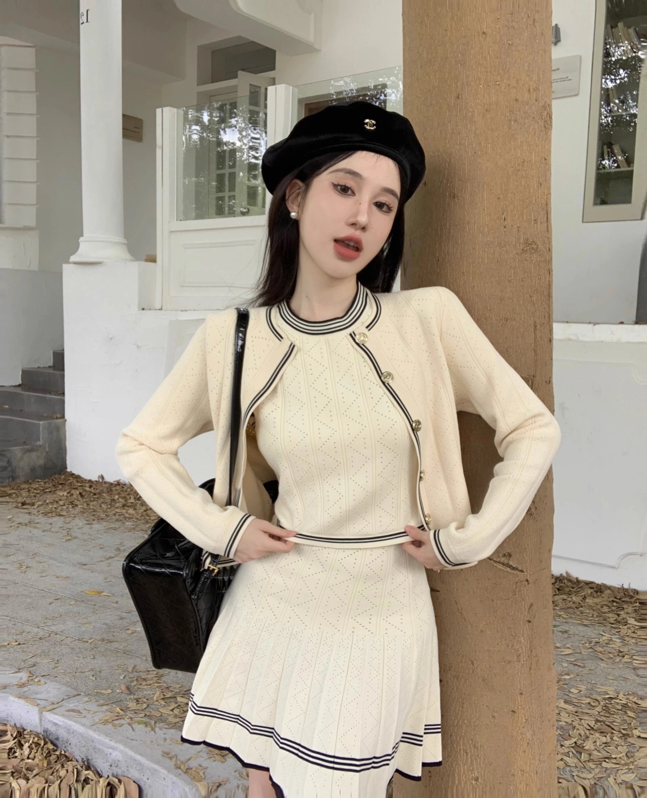 Women 3 Pieces Sets Knitted Tanks Button-up Cardigans High Waist Mini Pleated Skirts Streetwear Gentle Fashion Soft Elegant New