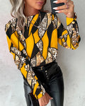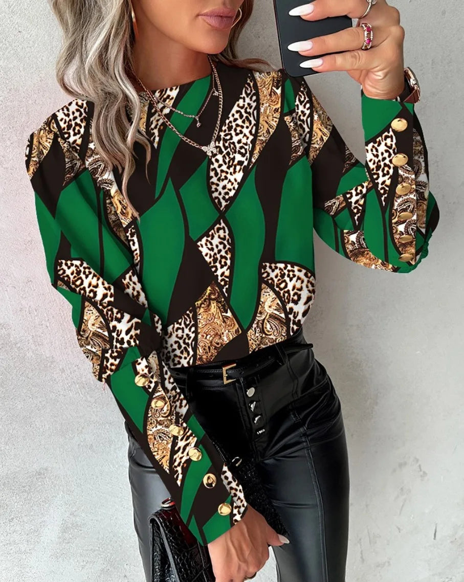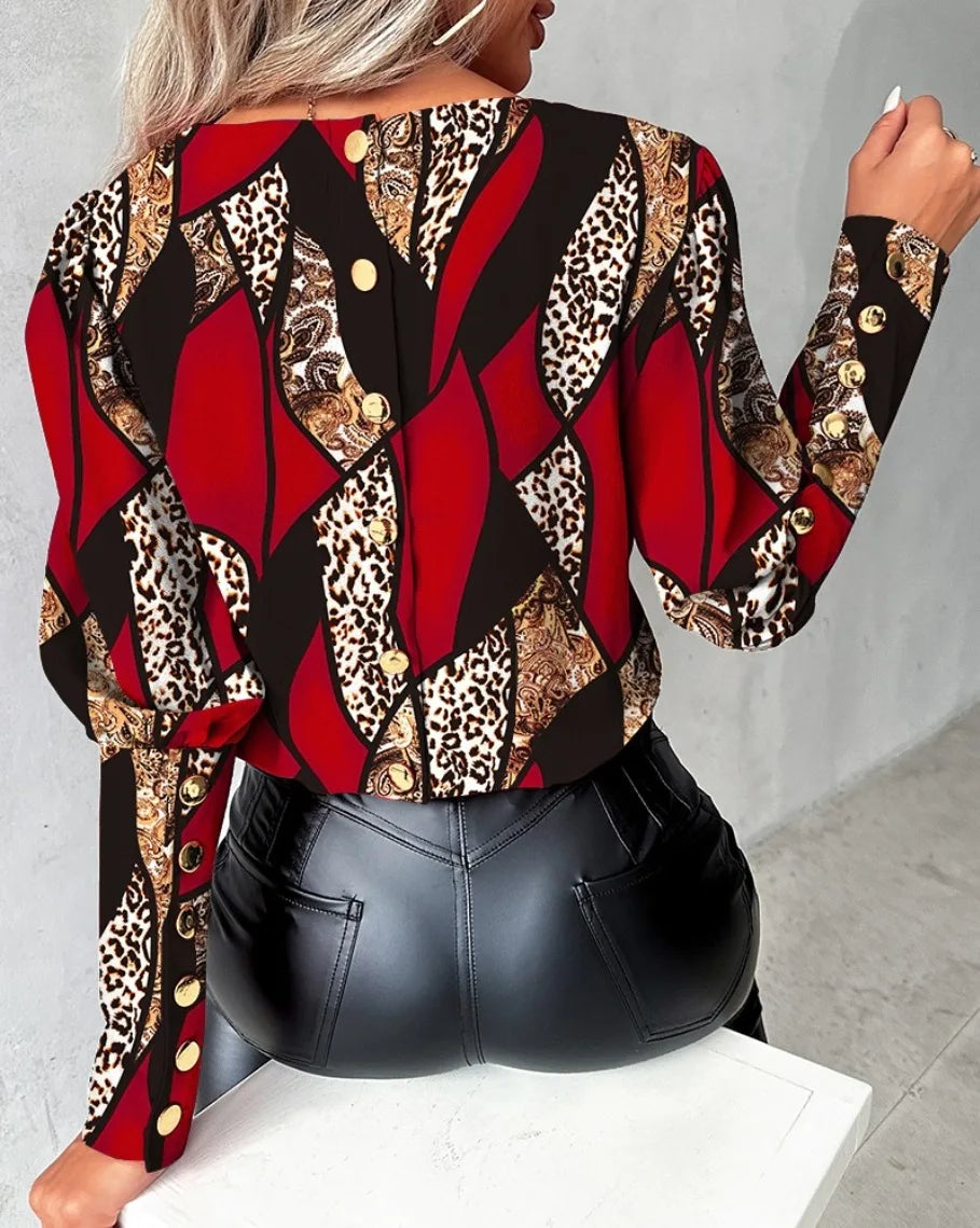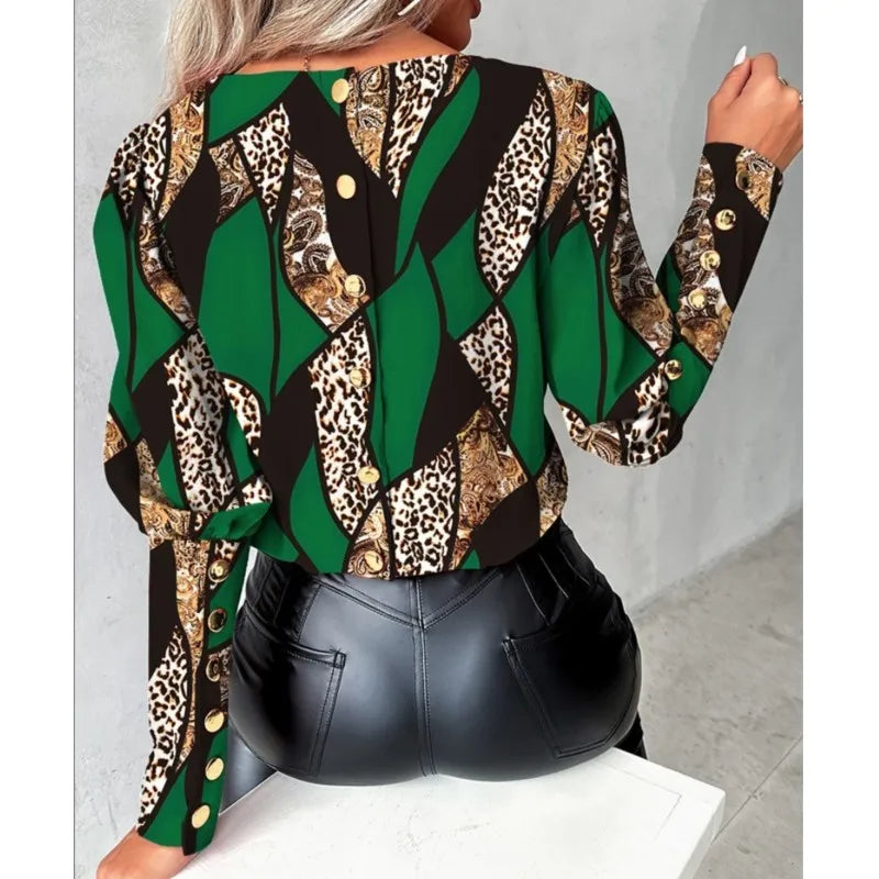 Women Blouse Fashion Print Long Sleeve O Neck Button Tops For Women 2025 Spring Autumn Elegant Office Lady Blouses And Shirts