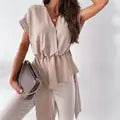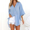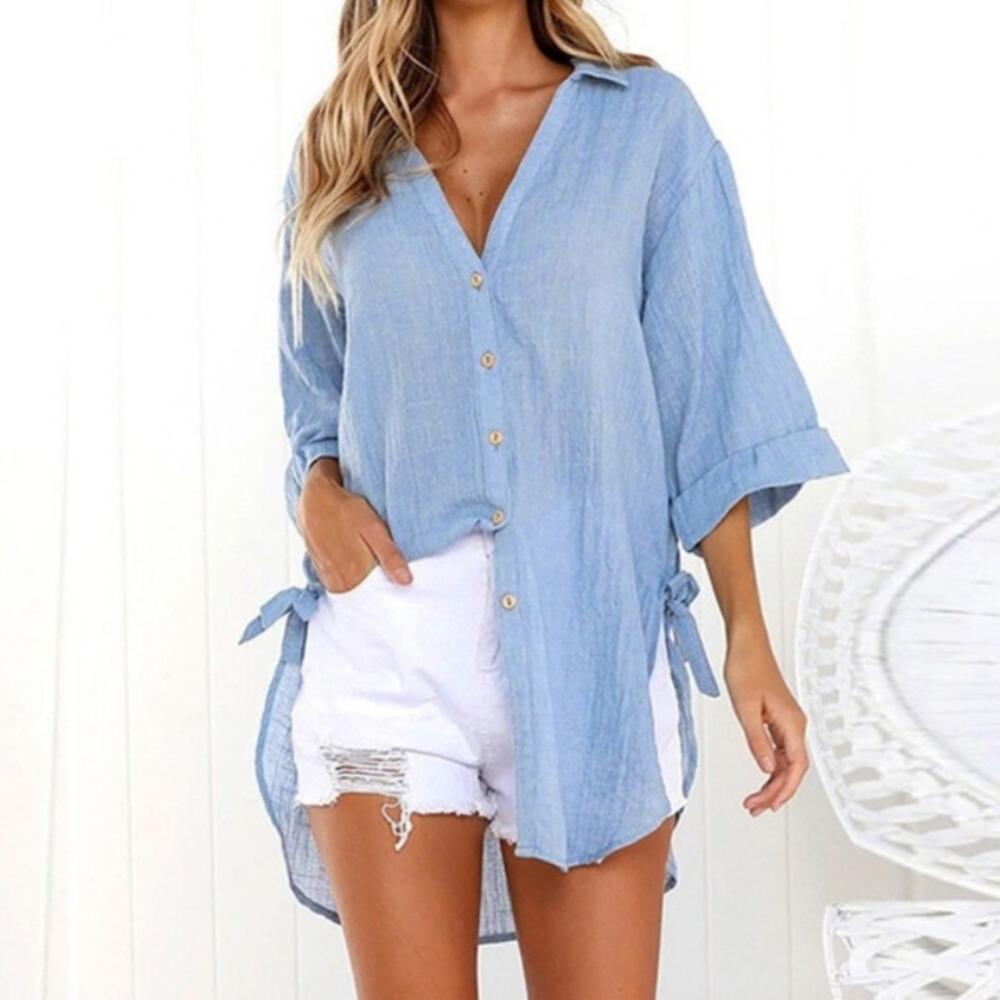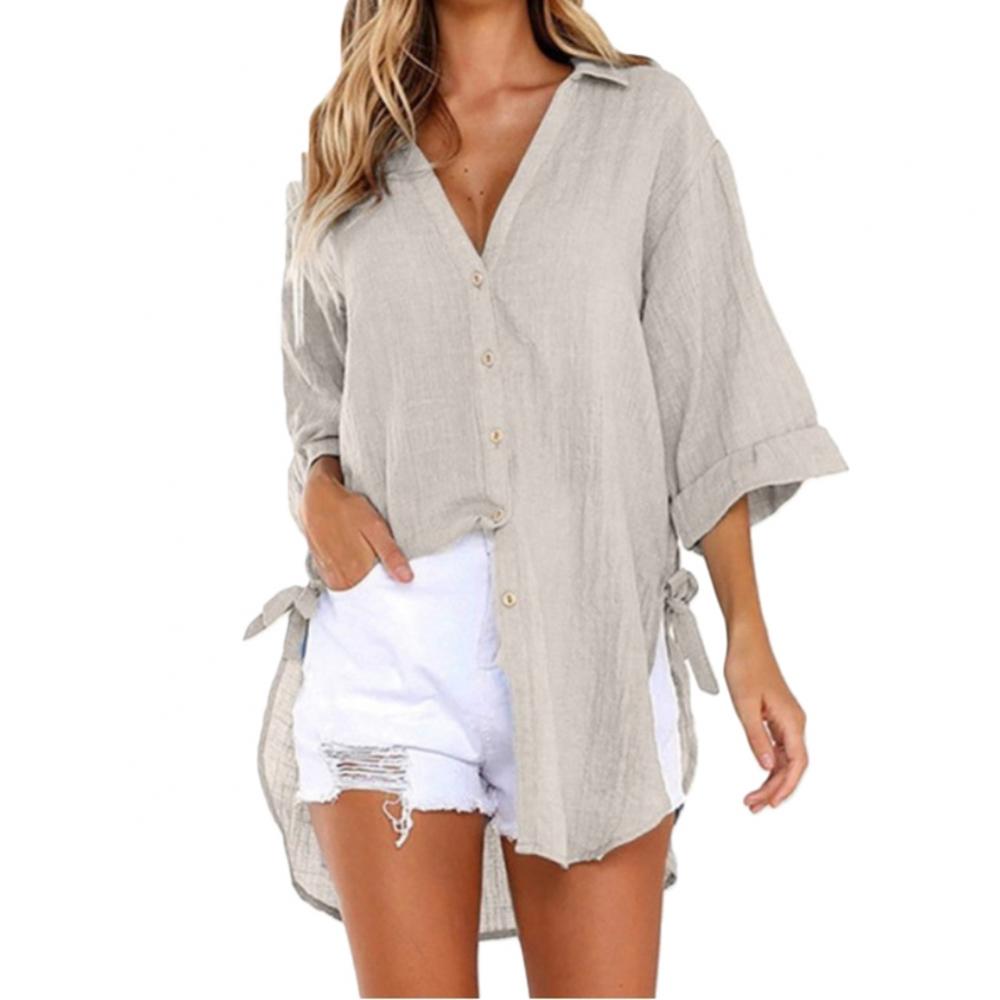 Women Blouses 2021 Summer Linen Shirts Women Loose Irregular Hem Belt Buttons Top Woman Turn Down Collar Shirt Roupas Femininas
