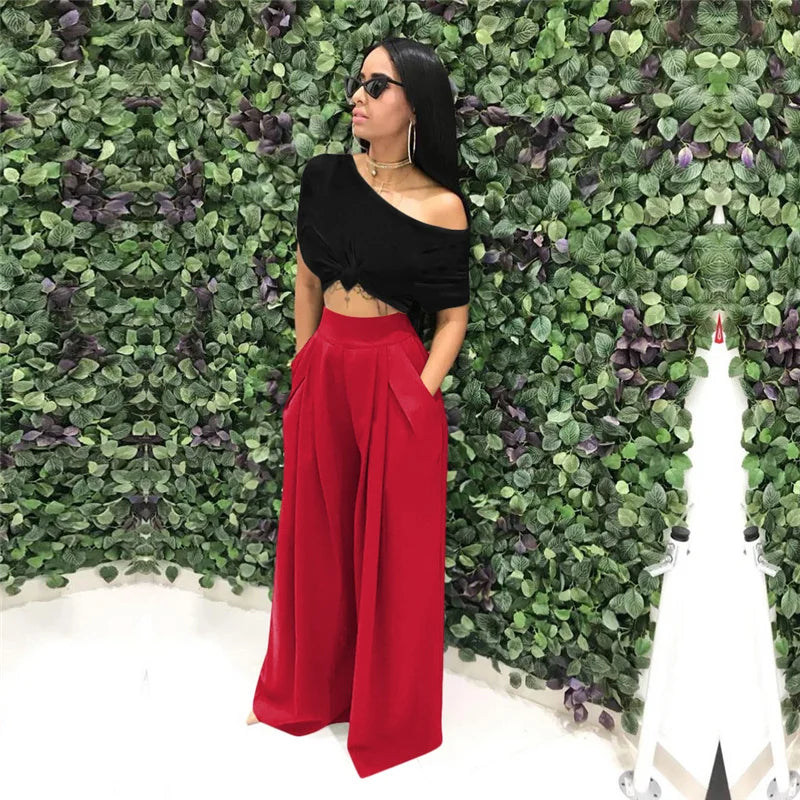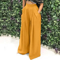 Women Casual Loose Palazzo Pants Autumn High Waisted Wide Leg Trousers Pleated Long Culottes Pants Elastic Waist Trouser Pockets