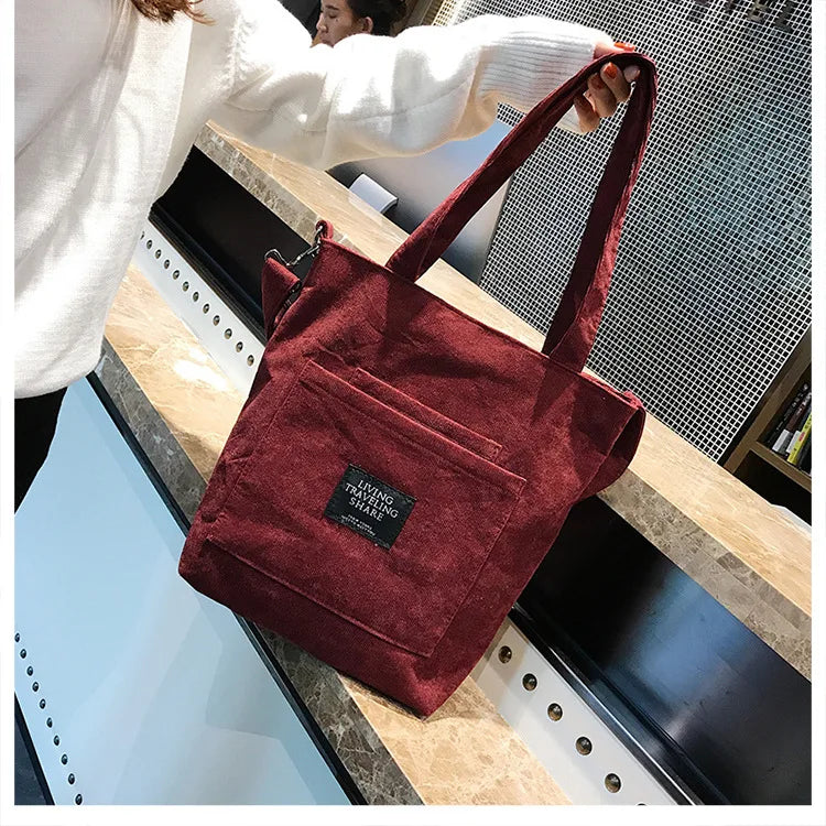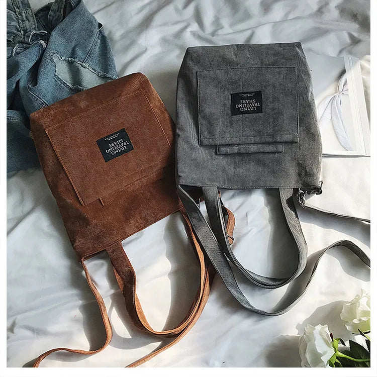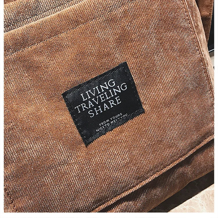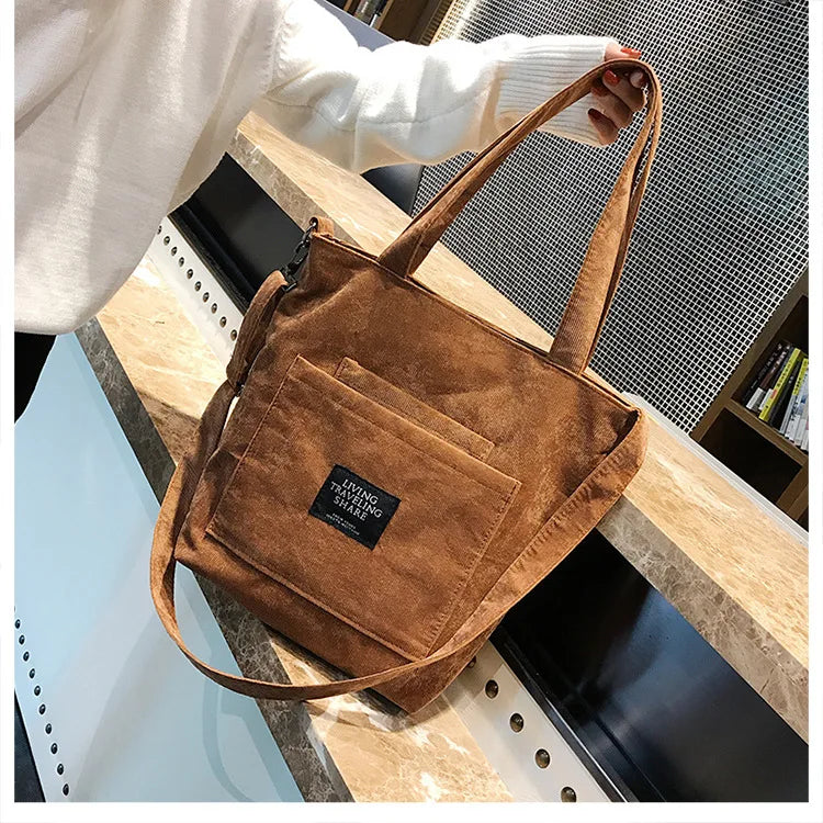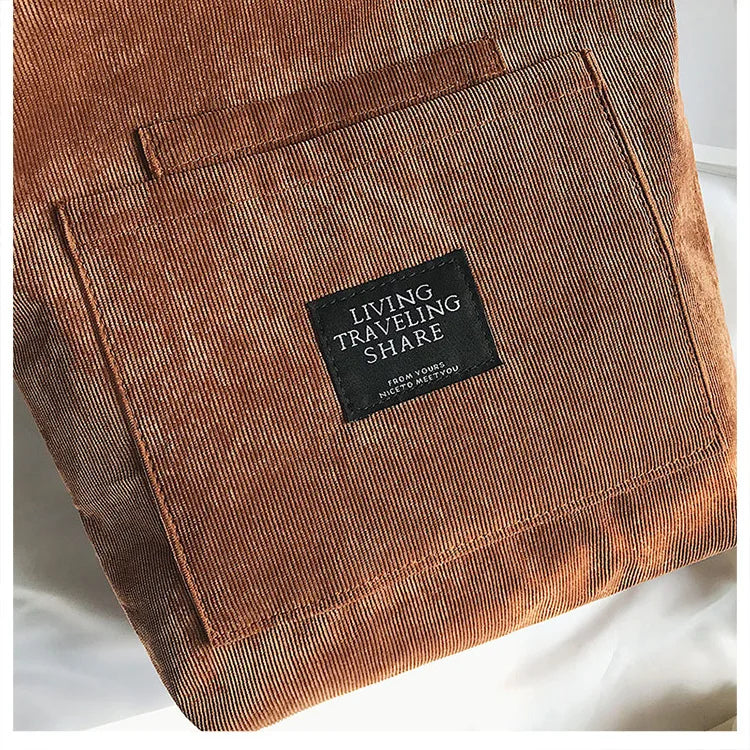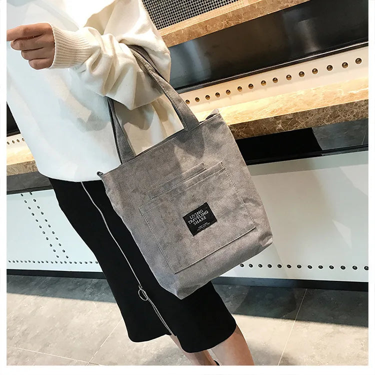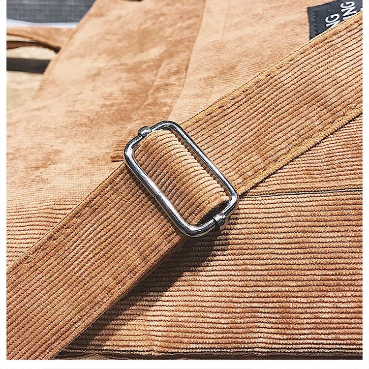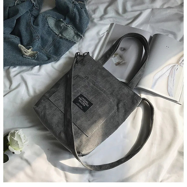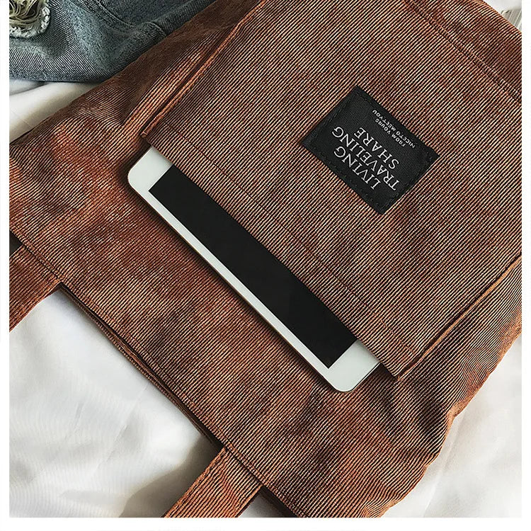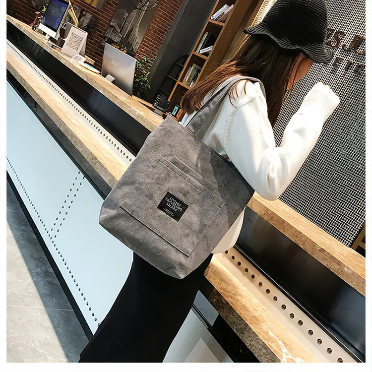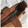 Women Corduroy Shoulder Bags Striped Cloth Fabric Zipper Handbag Casual Tote Canvas Crossbody Bag Cute Shopping Bag Ladies Purse