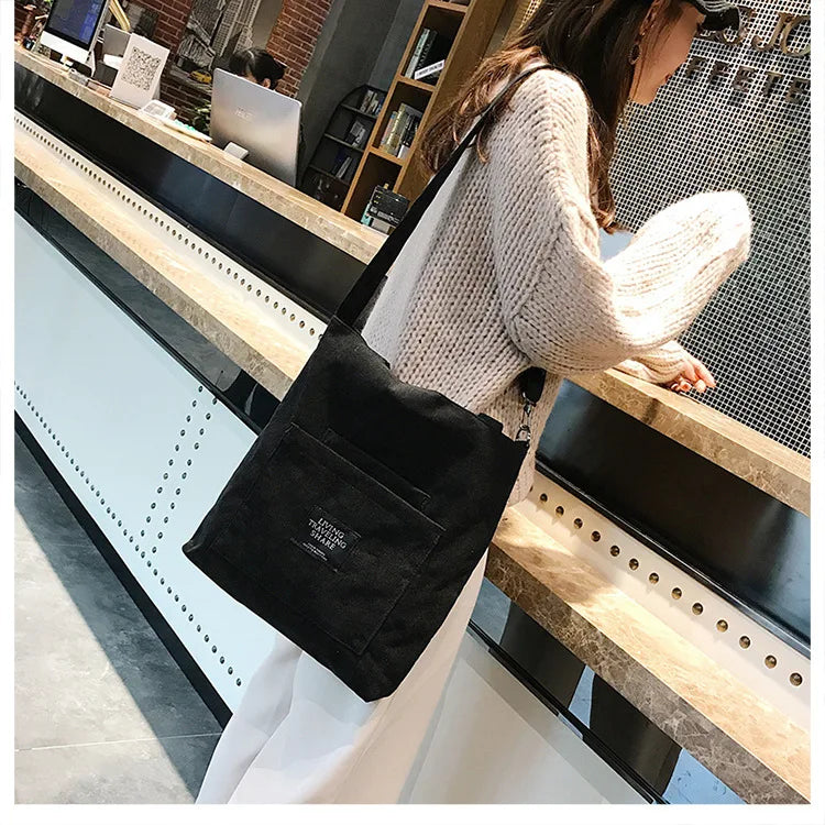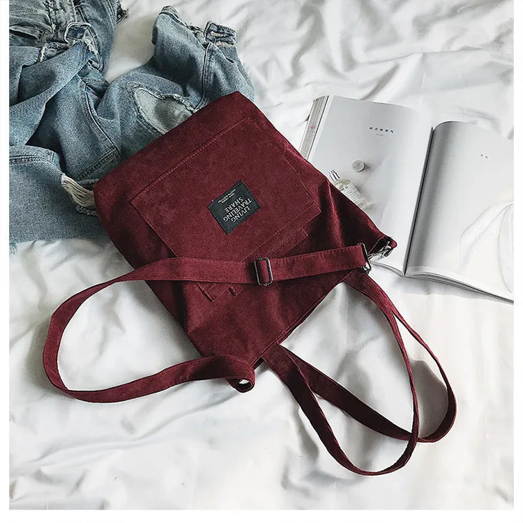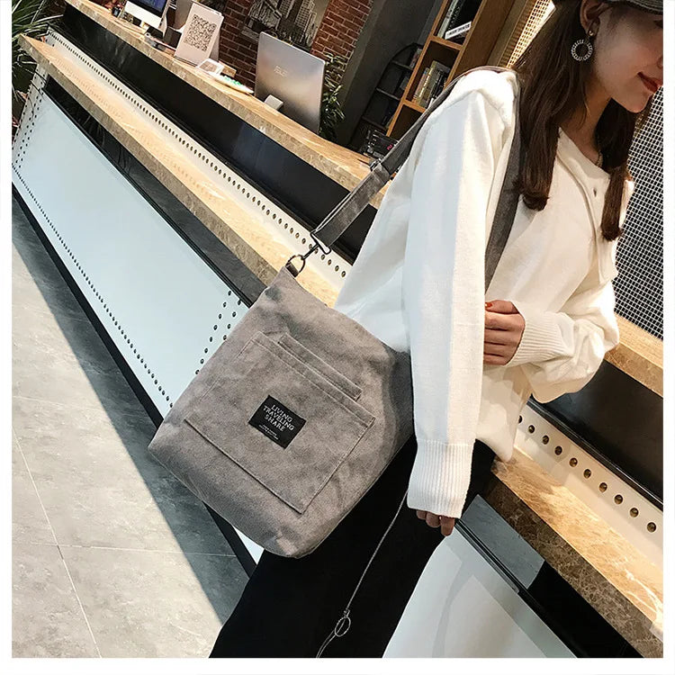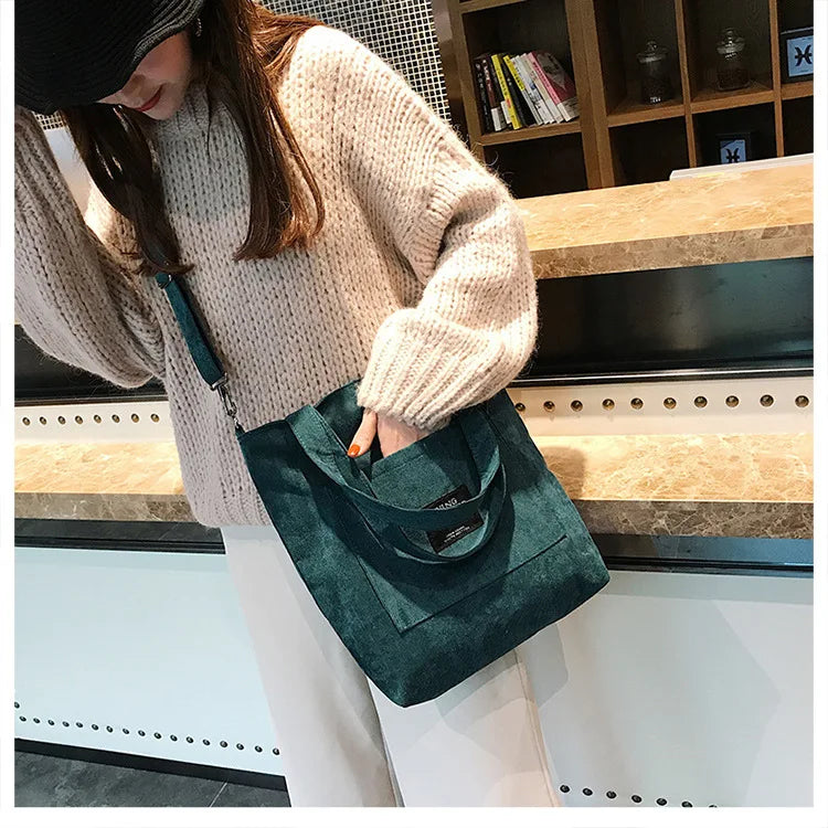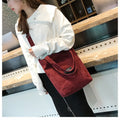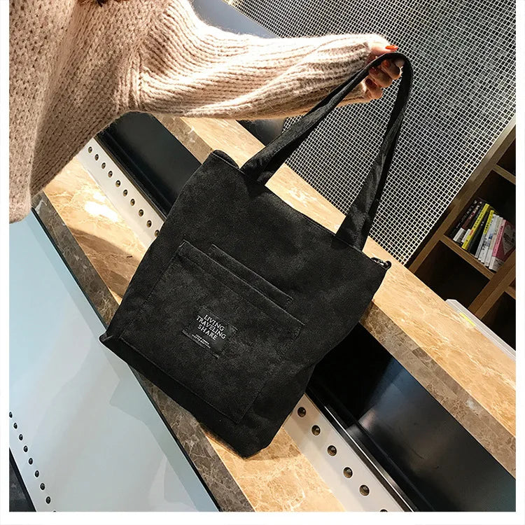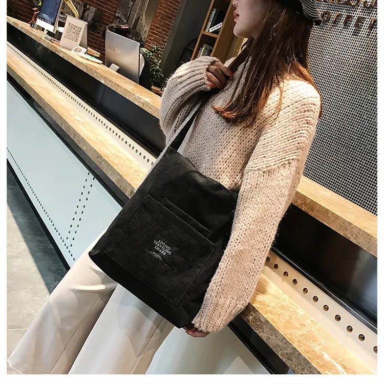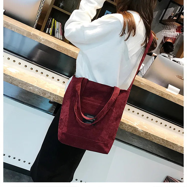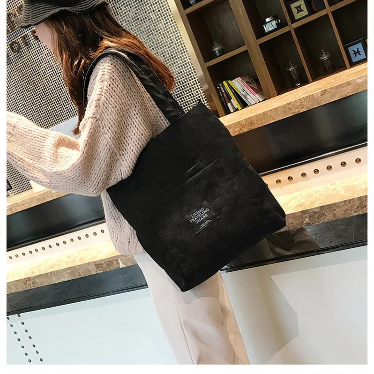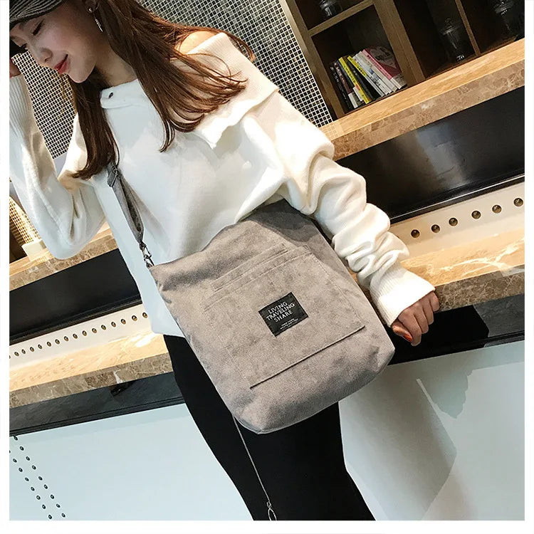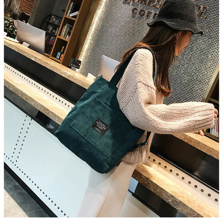 Women Corduroy Shoulder Bags Striped Cloth Fabric Zipper Handbag Casual Tote Canvas Crossbody Bag Cute Shopping Bag Ladies Purse