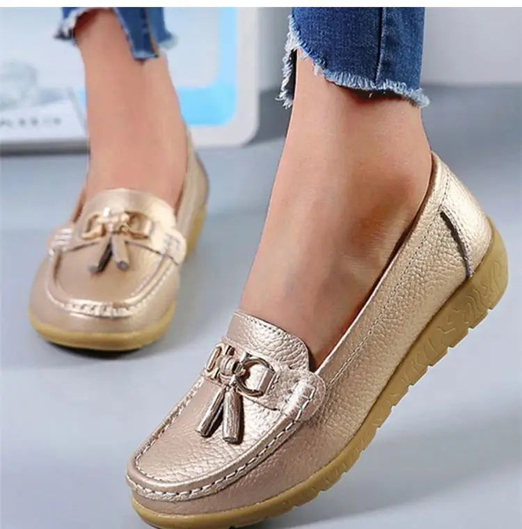 Women Flats Fashion Genuine Leather Wedge Casual Shoes Women Ballerina Nurse Shoes Moccasins Walking Shoes Woman Plus Size