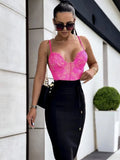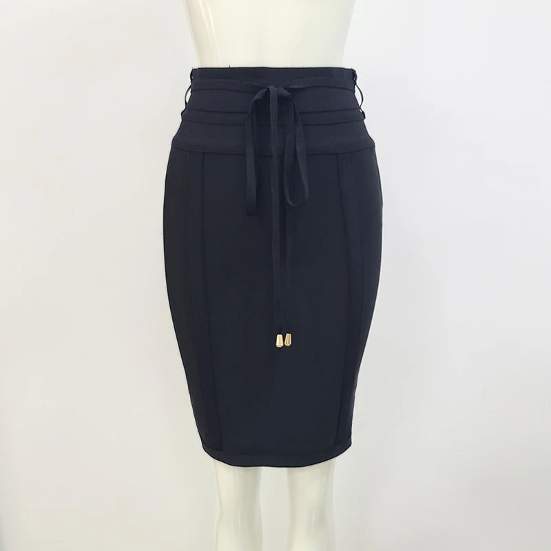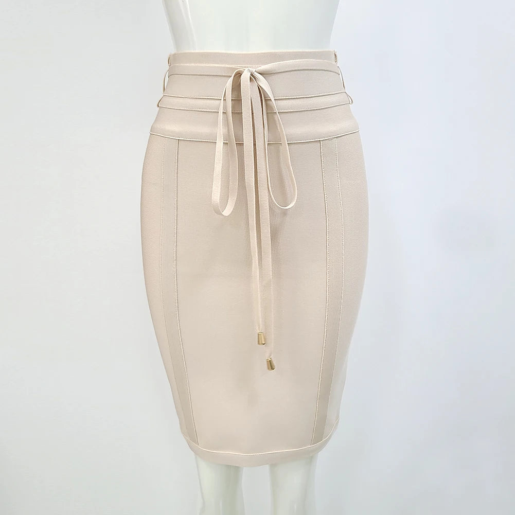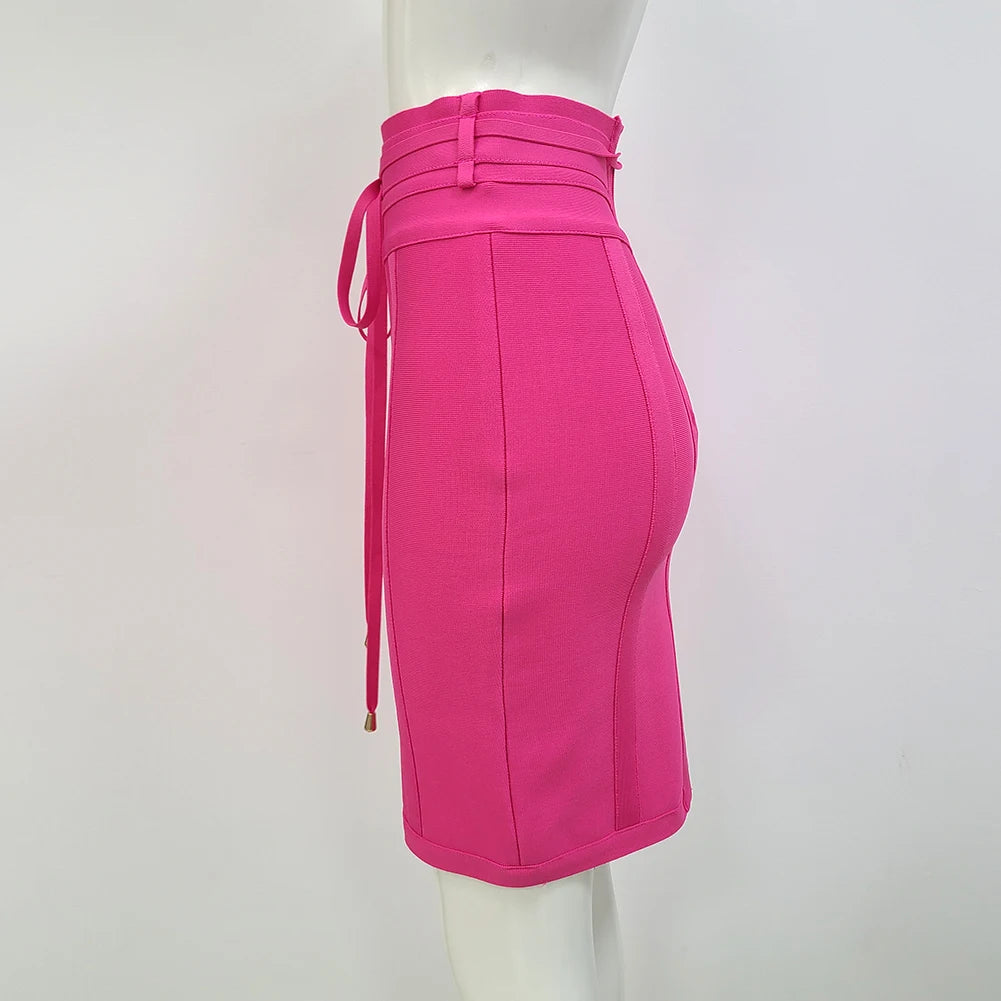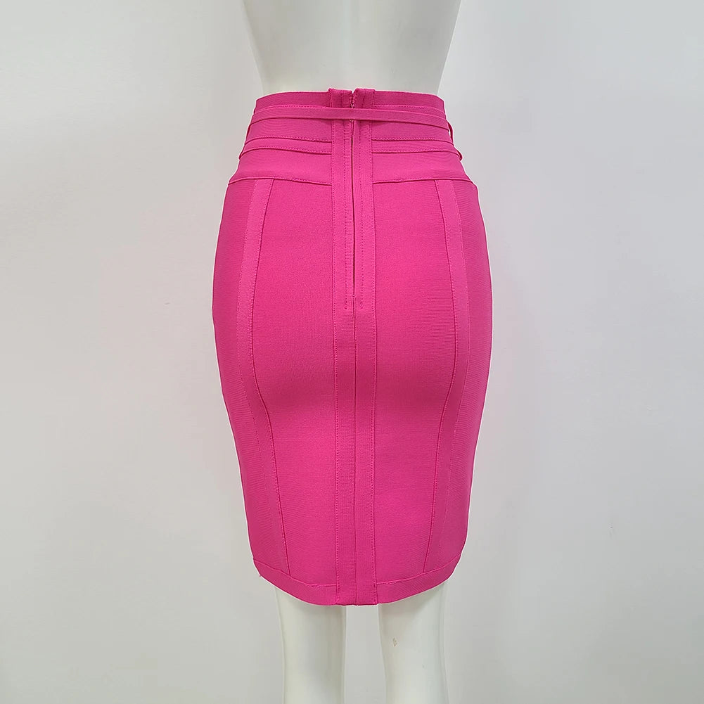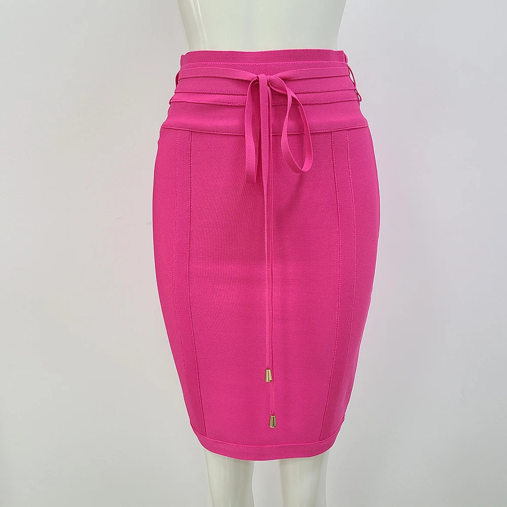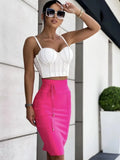 Women Hot Pink Black White Bodycon Bandage Skirt 2023 Designer High Waist High Street Party Club Pencil Skirt 55cm