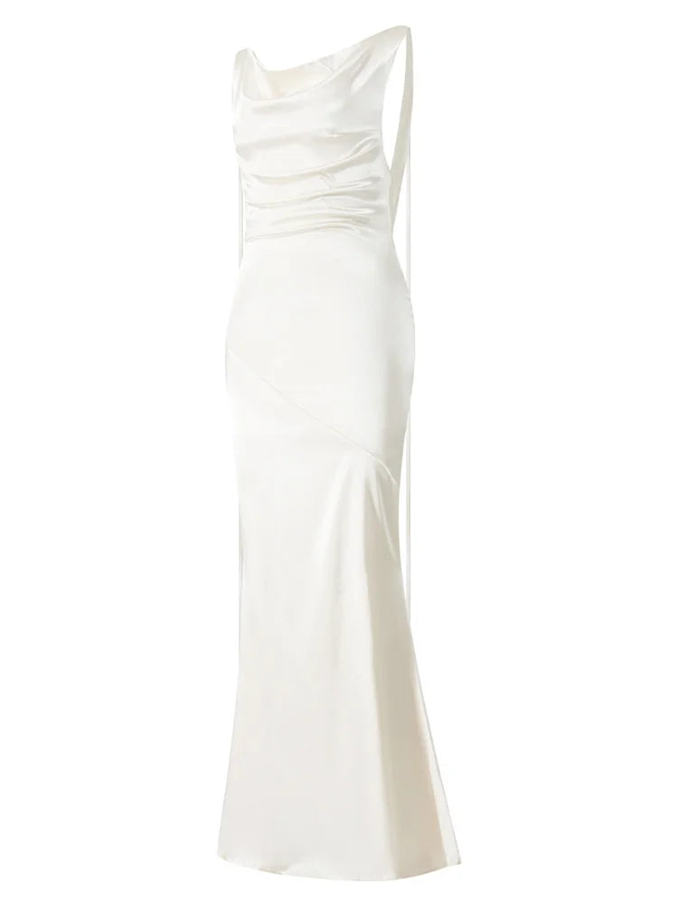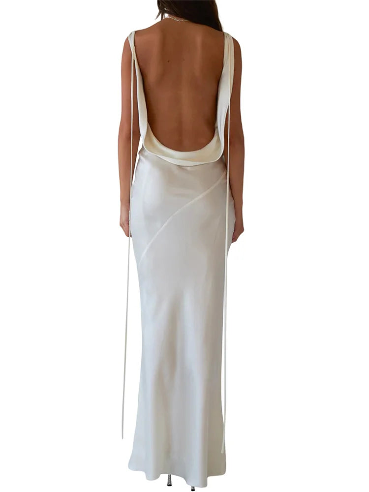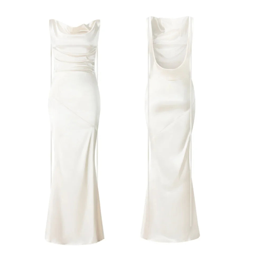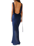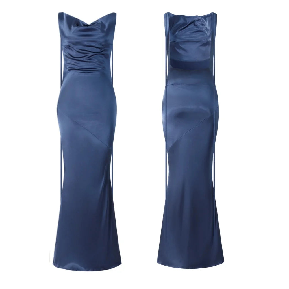 Women Long Dress, Sleeveless Draped Neck Backless Lacing Slim Fit Dress for Party Cocktail EveningOur sleeveless long dress can be matched with high heels, jewelry and handbags to make you more attractive, also is a perfect gift to your friends.